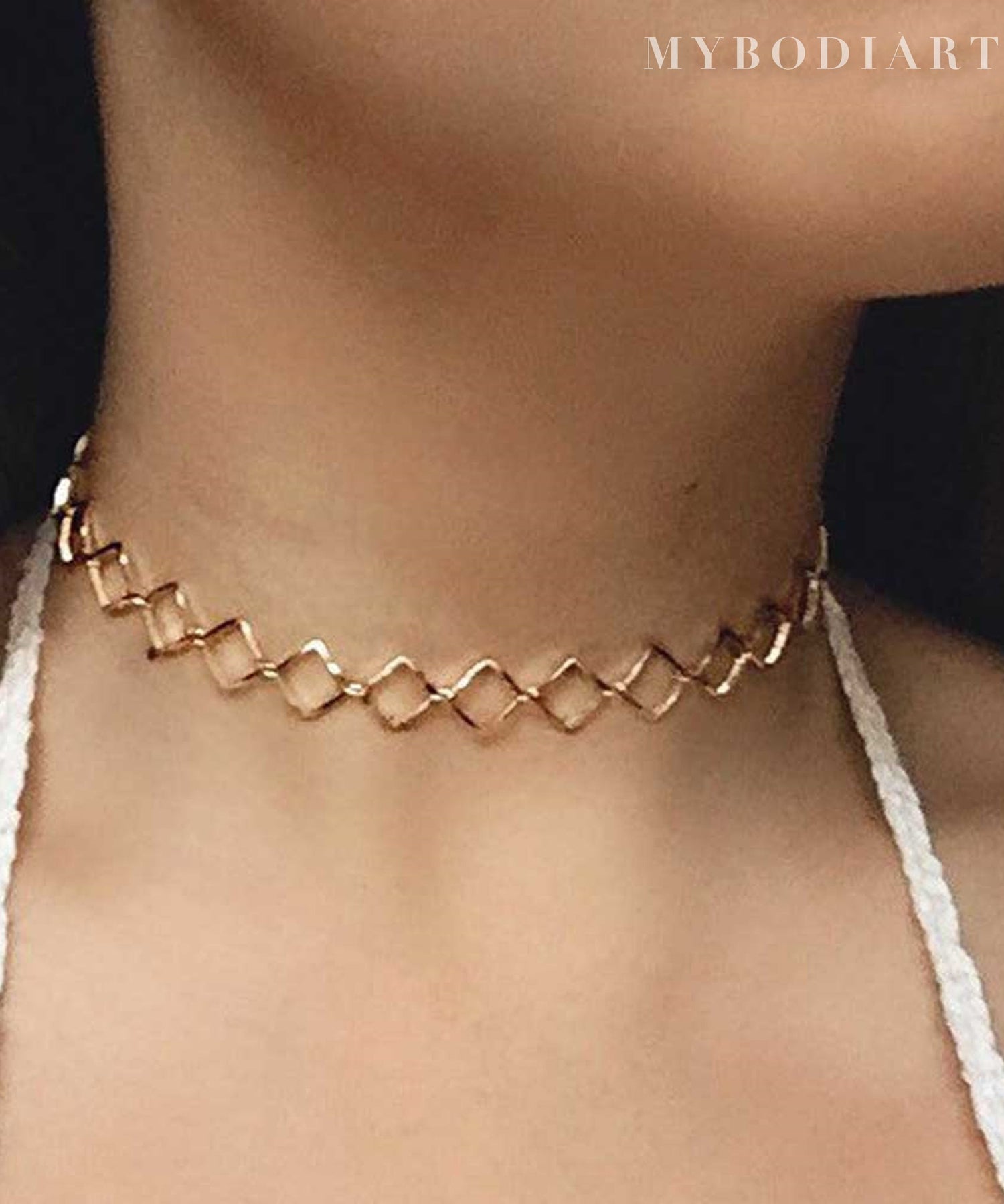 Hinako Geometric Shape Diamond Choker Necklace in Gold or Silver