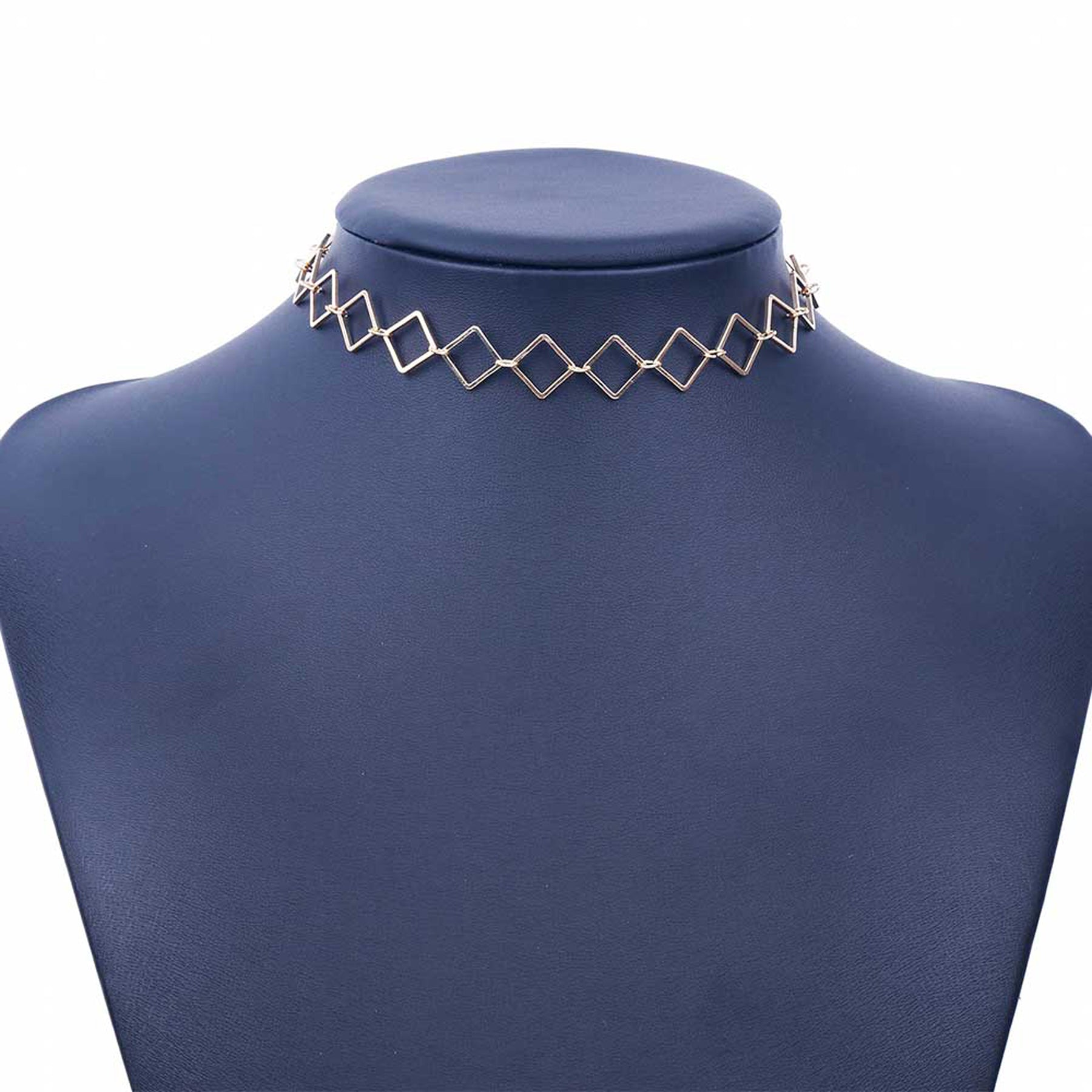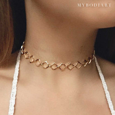 Quad Interlocking Squares Chain Choker Necklace