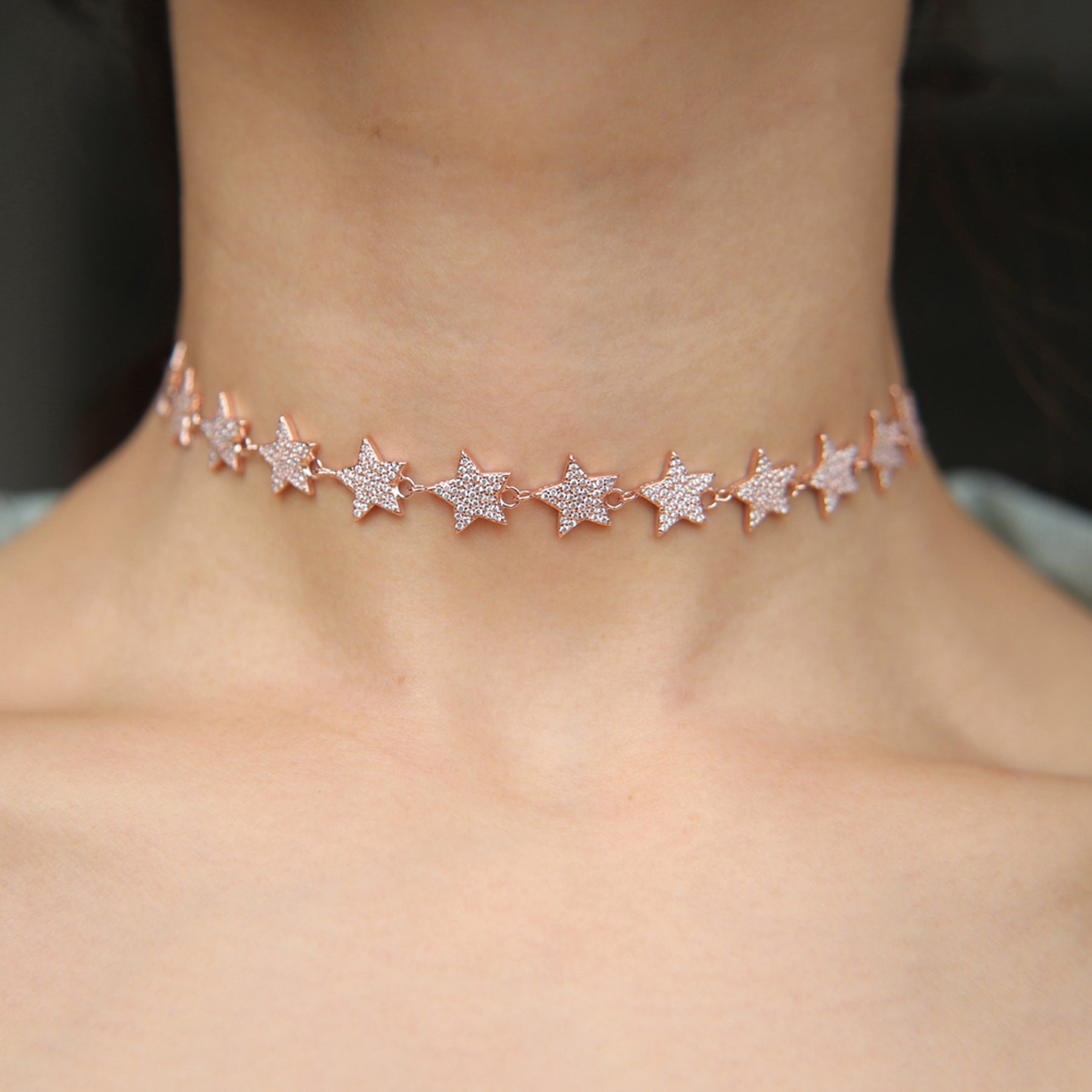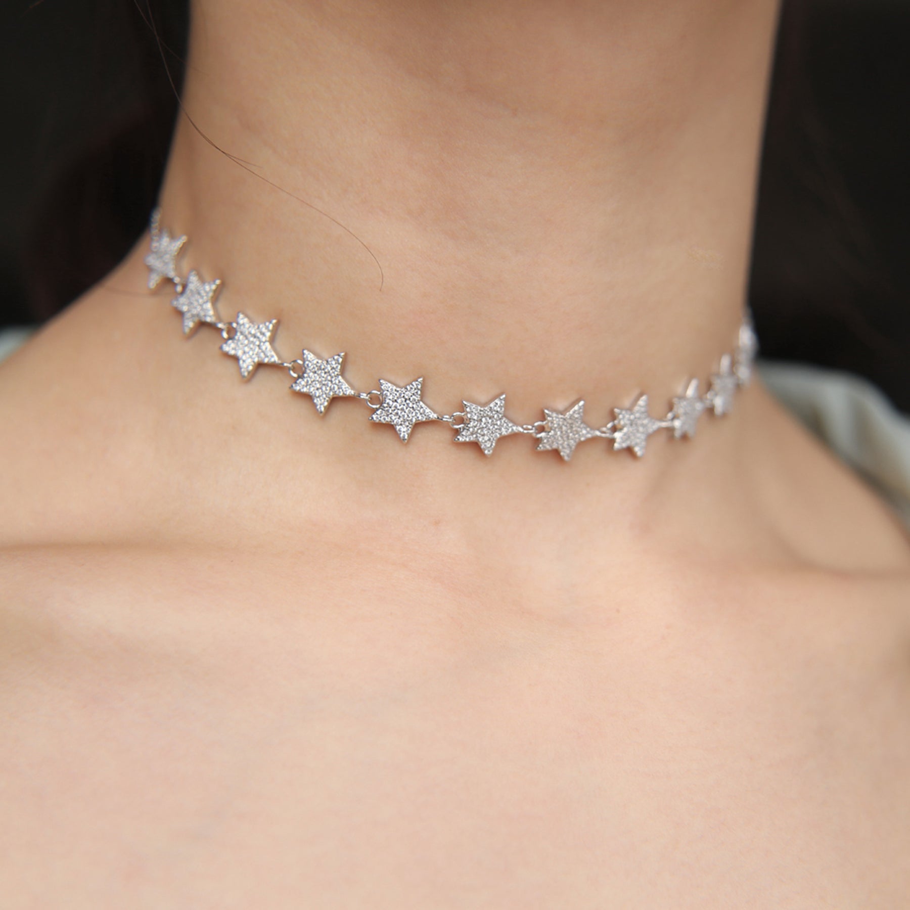 Galaxy Chunky Crystal Star Choker Statement Fashion Necklace