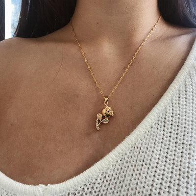 Miku Cute & Simple Floral Rose Pendant Necklace in Gold or Silver