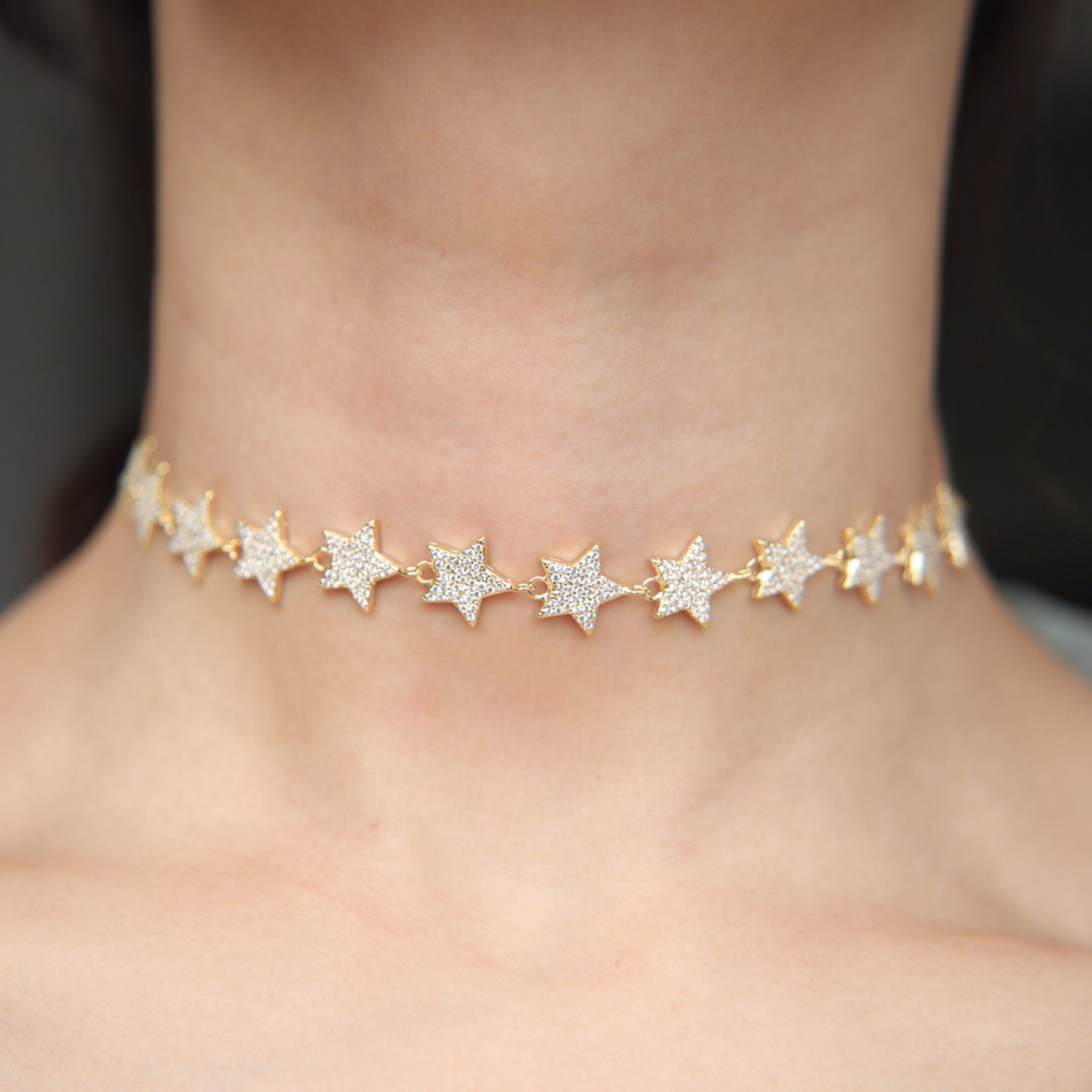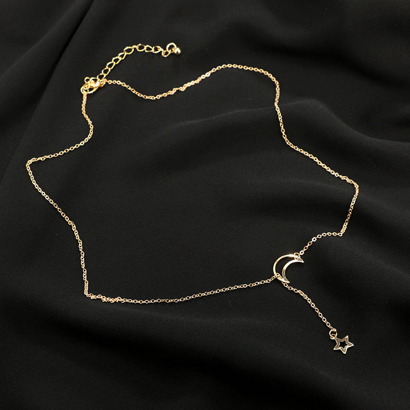 Estella Double Layered Star & Moon Chain Choker Necklace