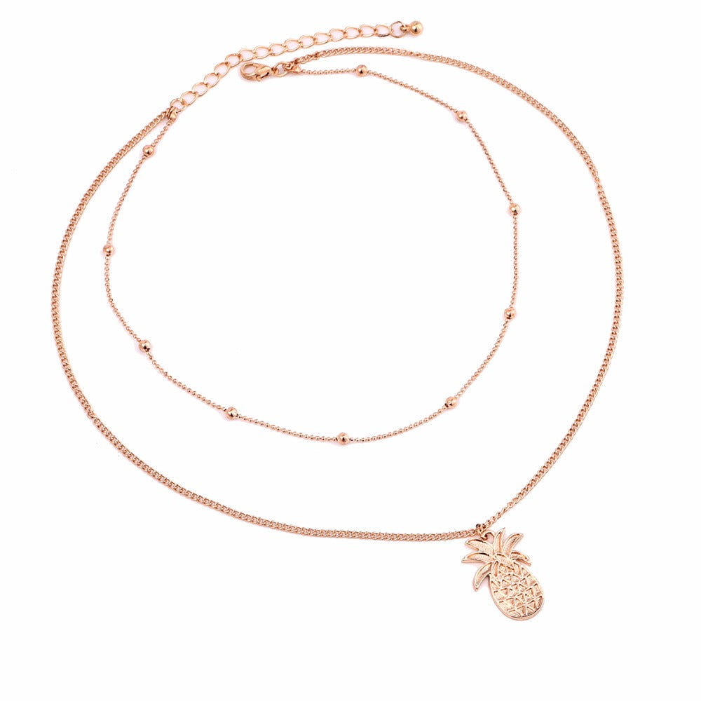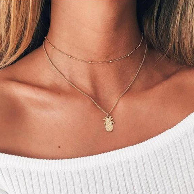 Ananita Double Layered Pineapple Choker Necklace in Gold