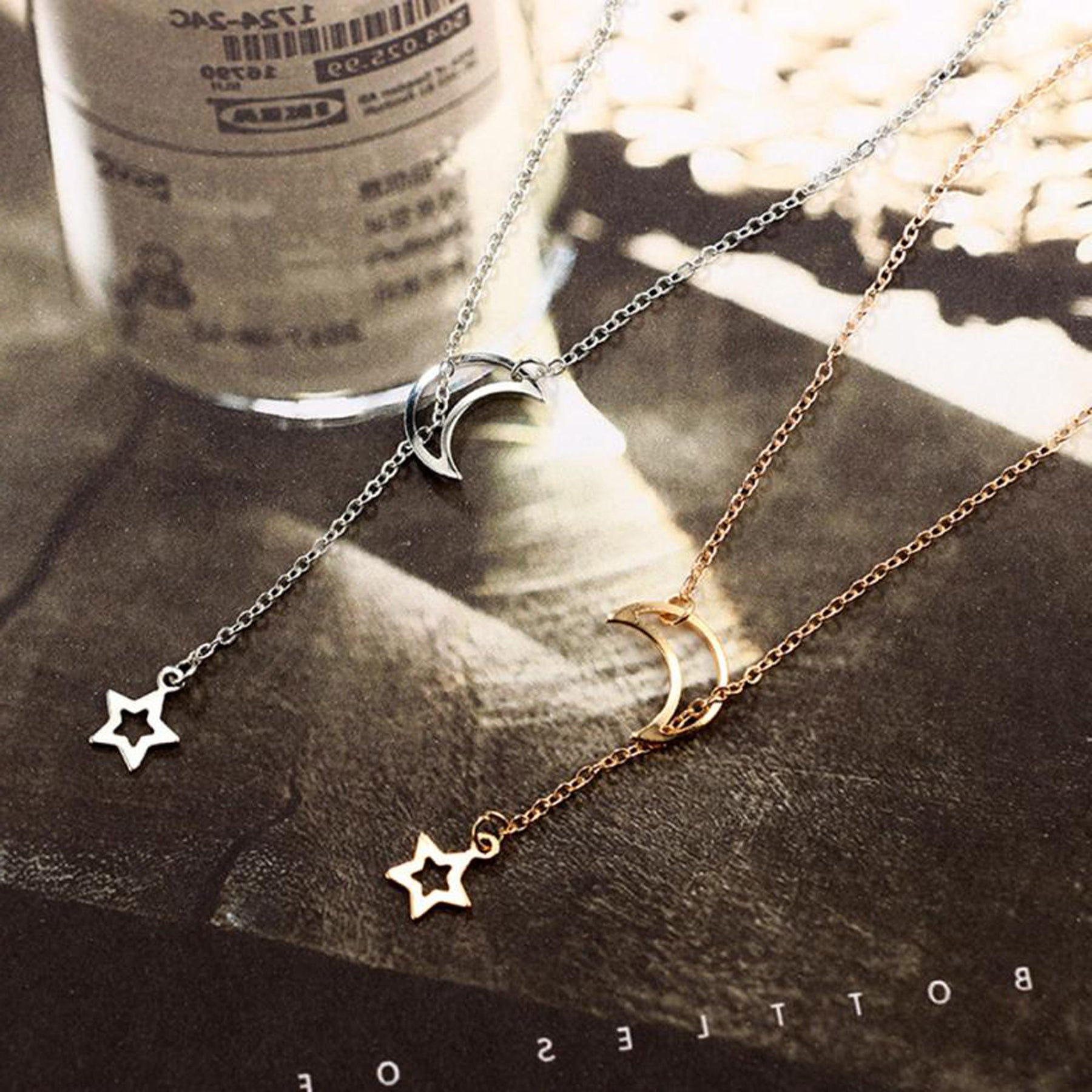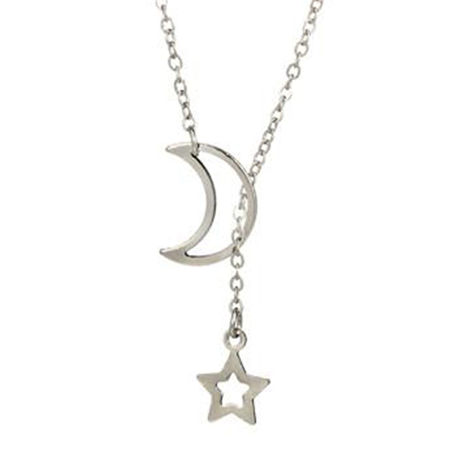 Kiyana Minimal Moon & Star Lariat Necklace in Silver or Gold