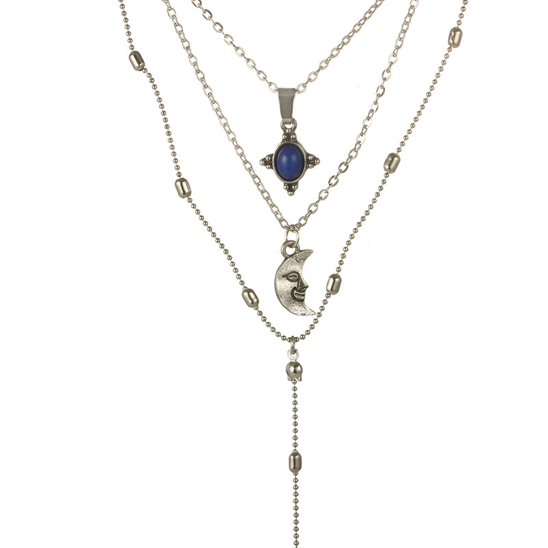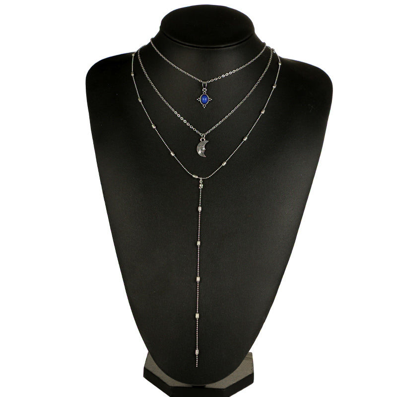 Maia Bohemian Moon Triple Layered Choker Necklace in Antiqued Silver