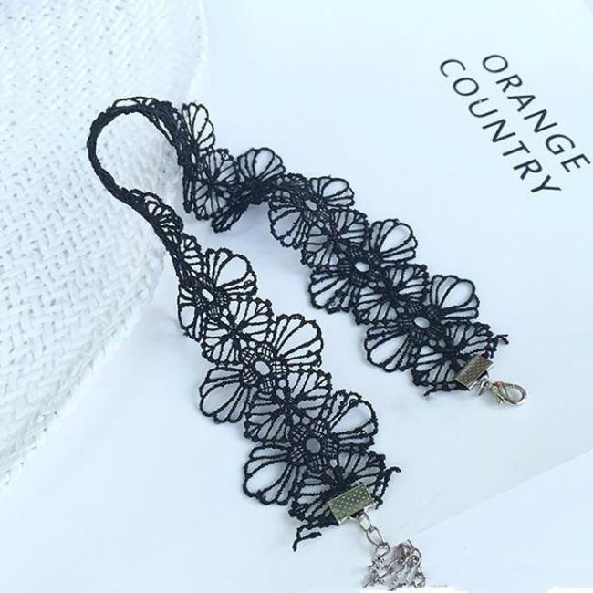 Gretchen Black Floral Lace Choker Set
