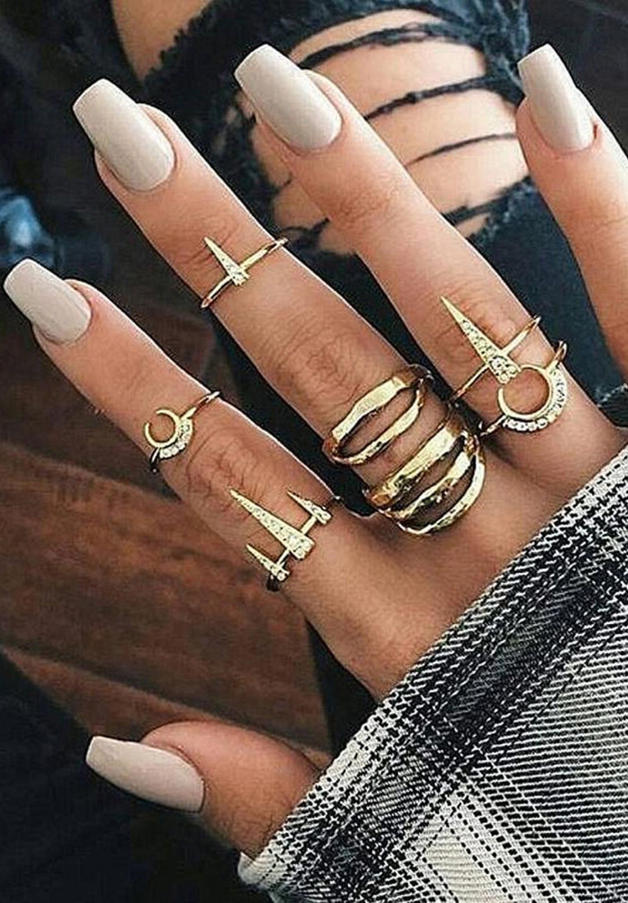 Noa Simple Stackable Minimal Round & Square Gold Ring Sets 9 Pieces