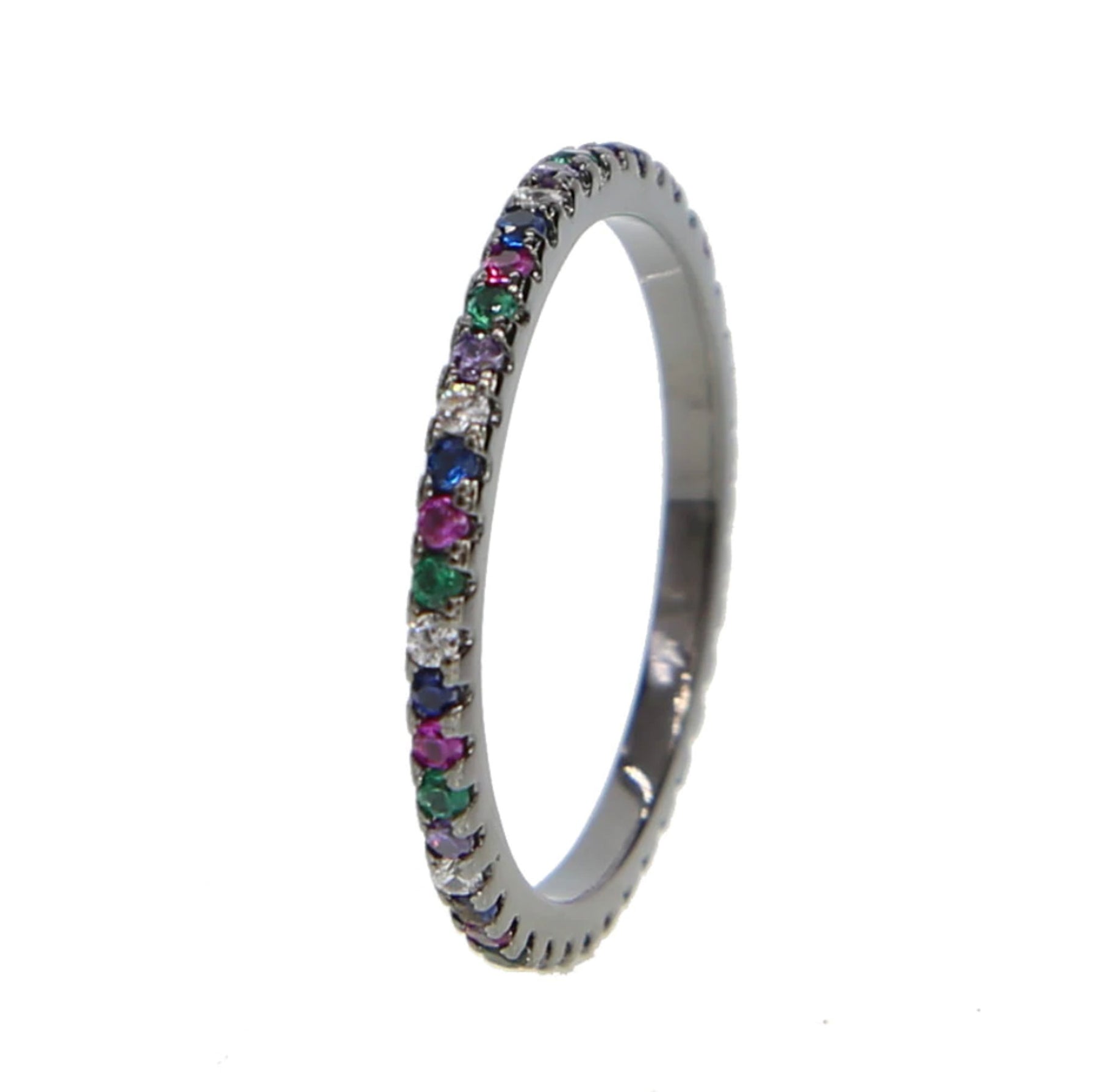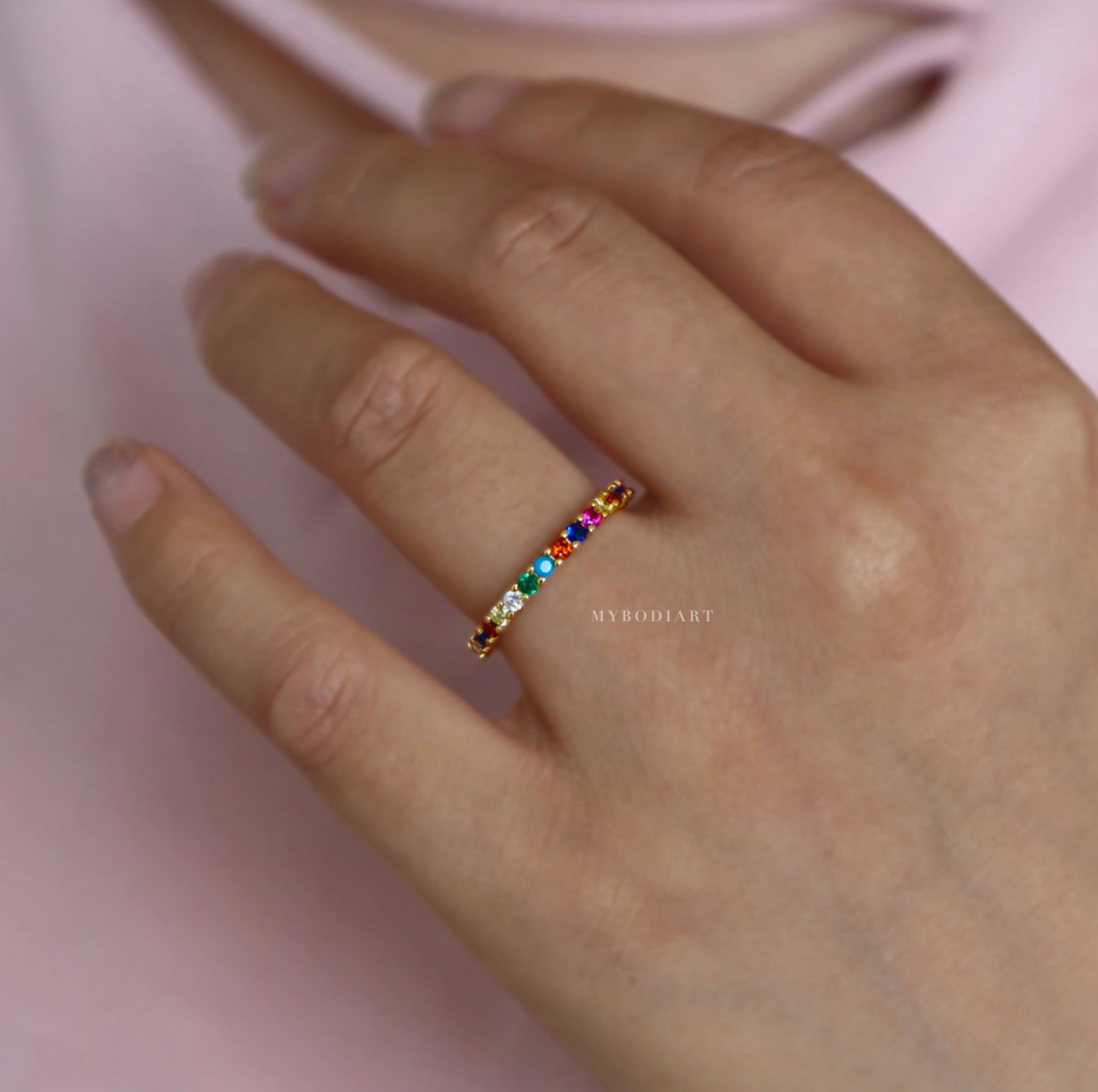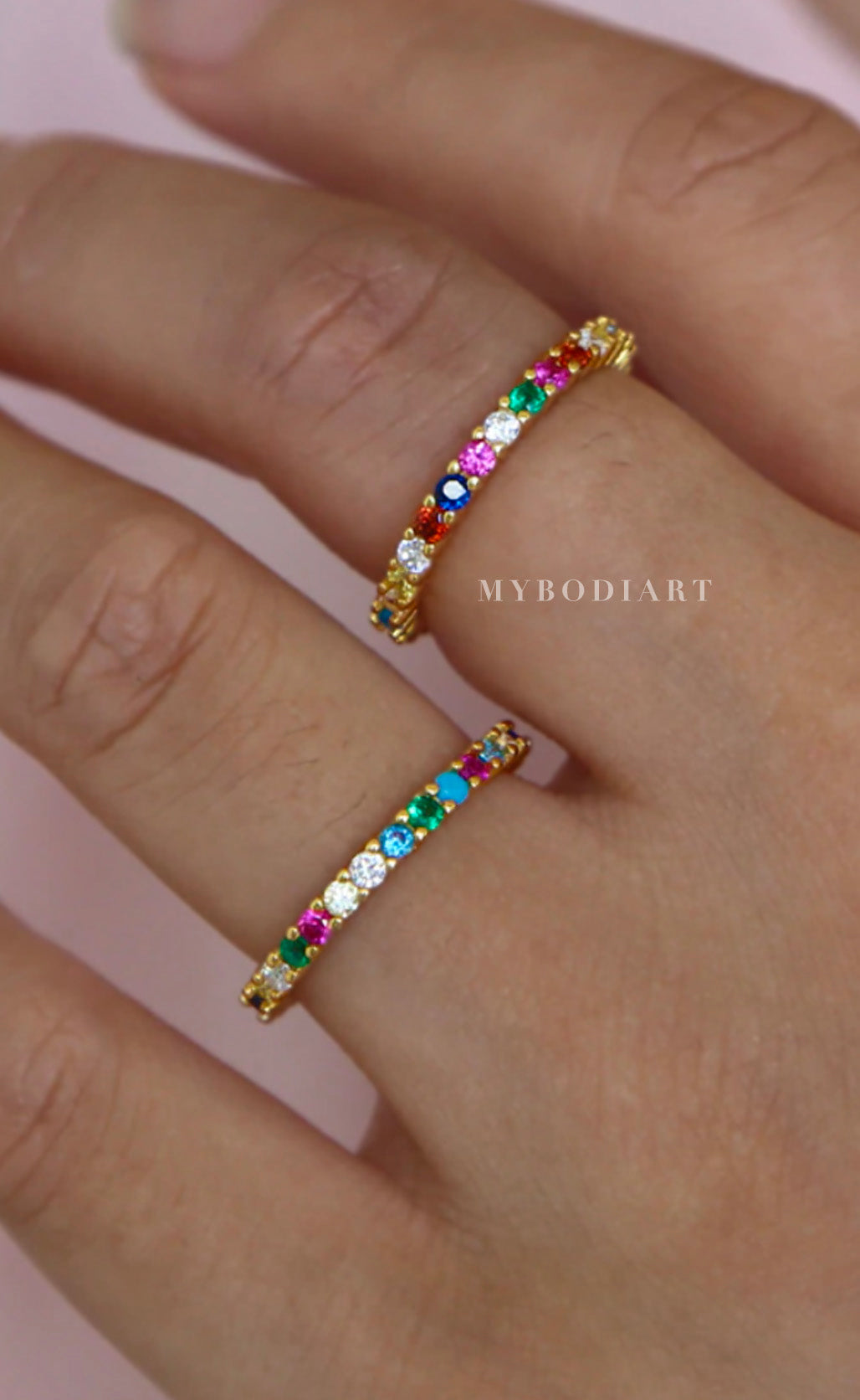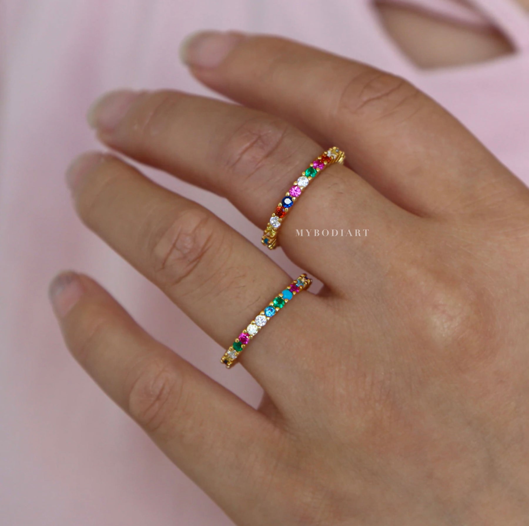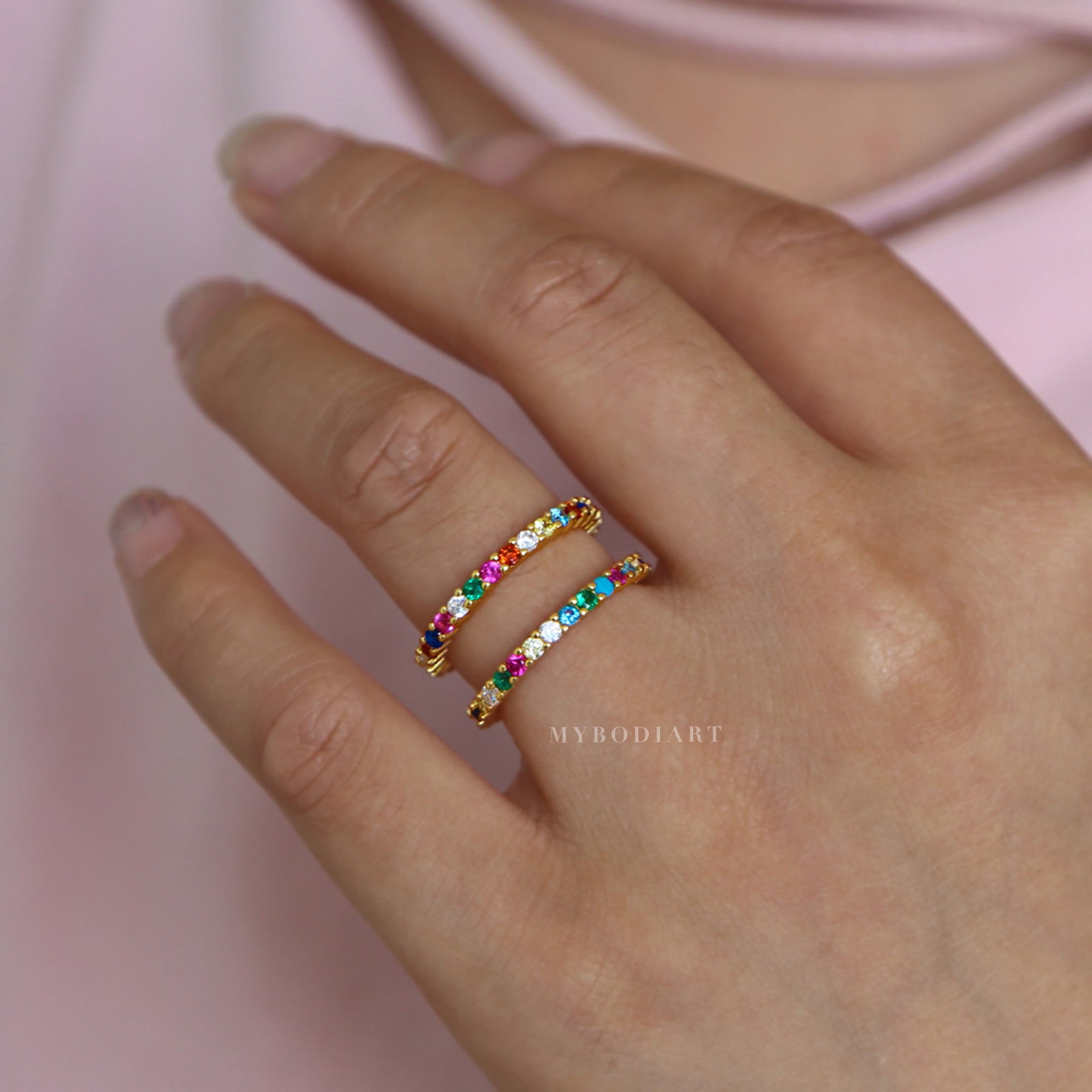 Shimmer Dainty Colored Rainbow Crystal Gemstone Pave Stackable Rings