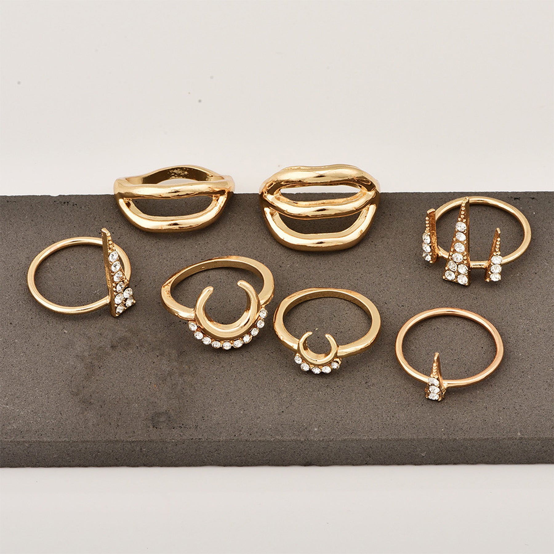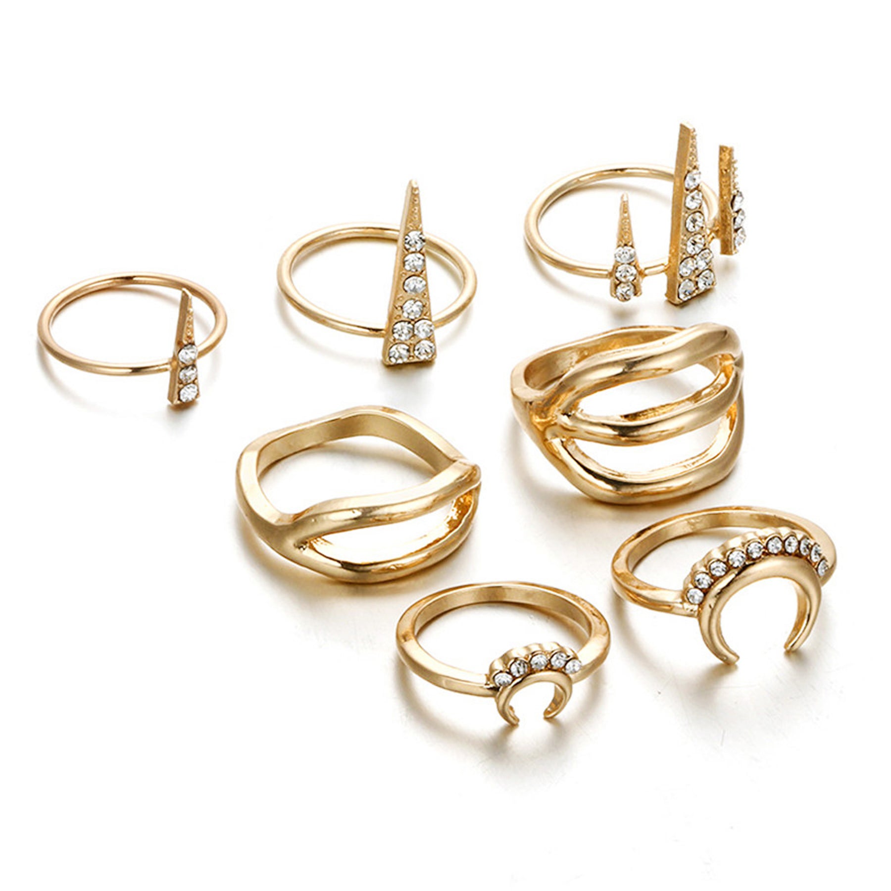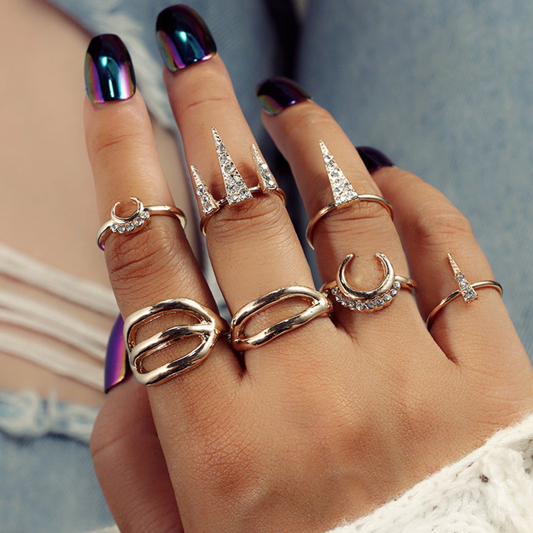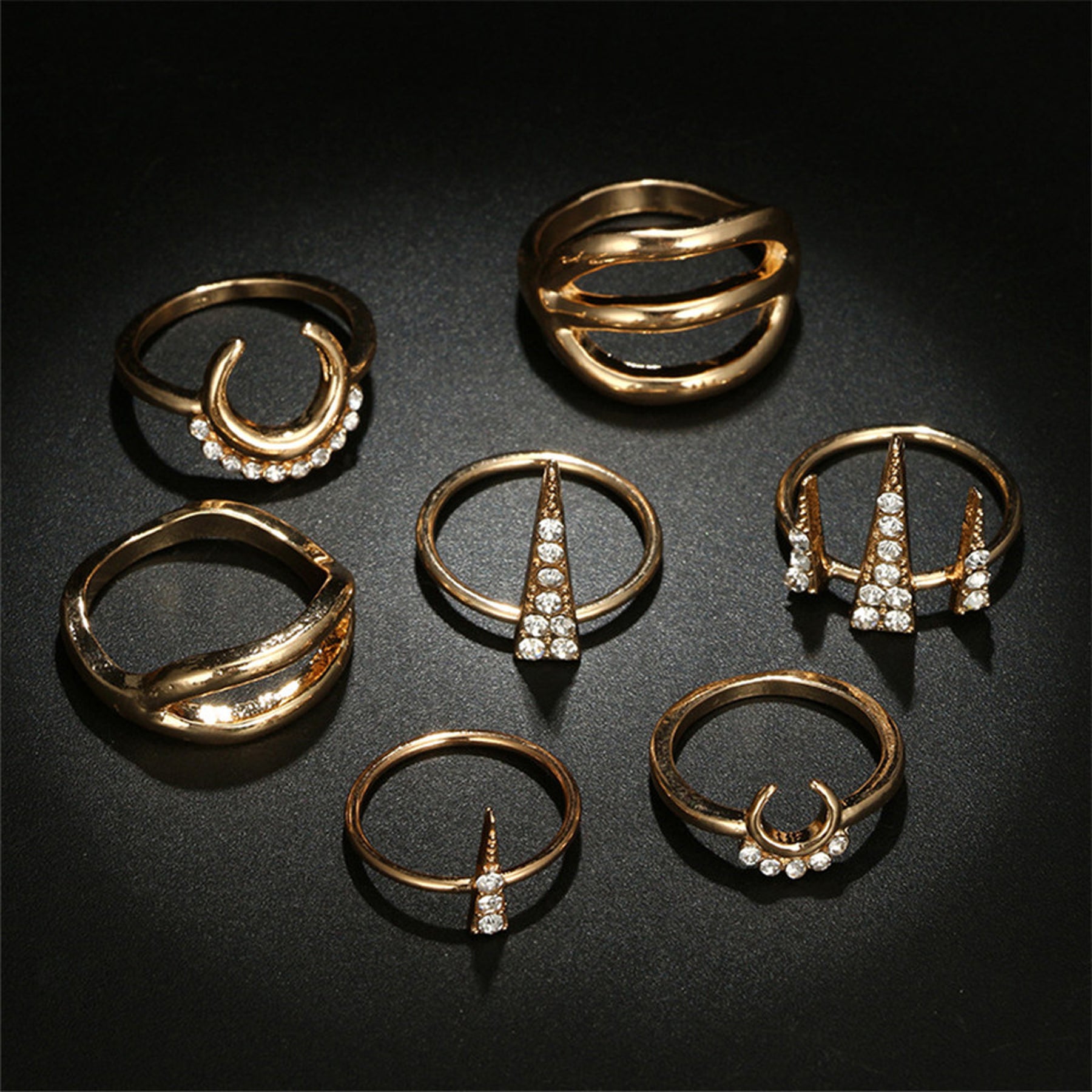 Gabrielle Boho Gypsy Arrow Midi Rings Moon Ring Set in Gold 7 Pieces
