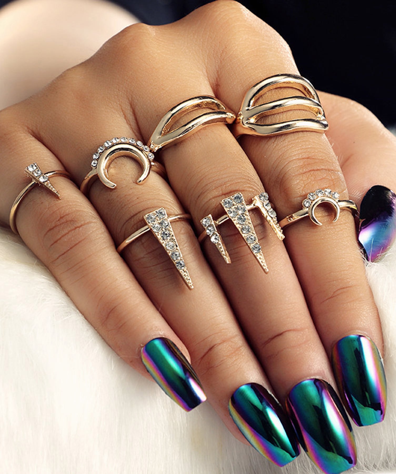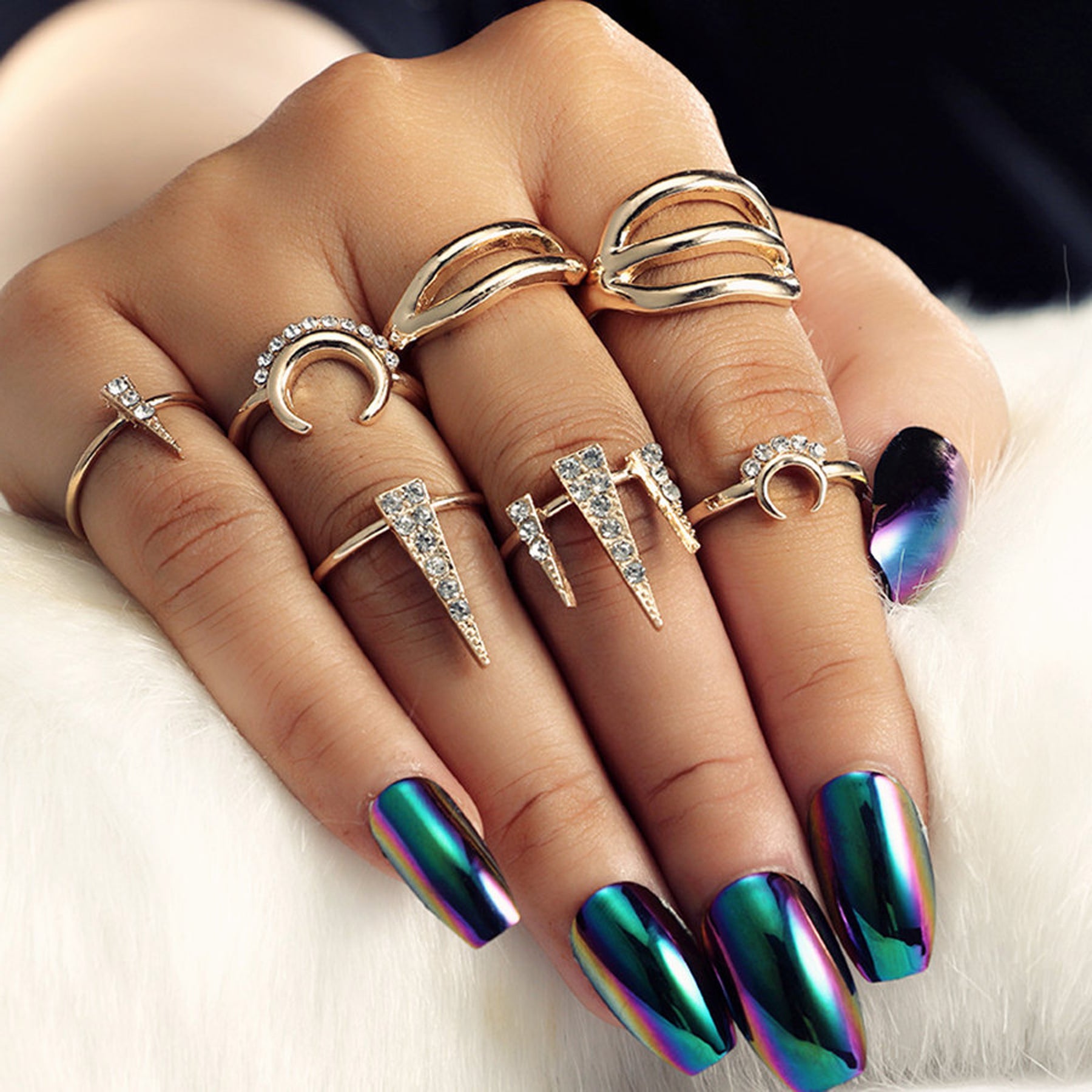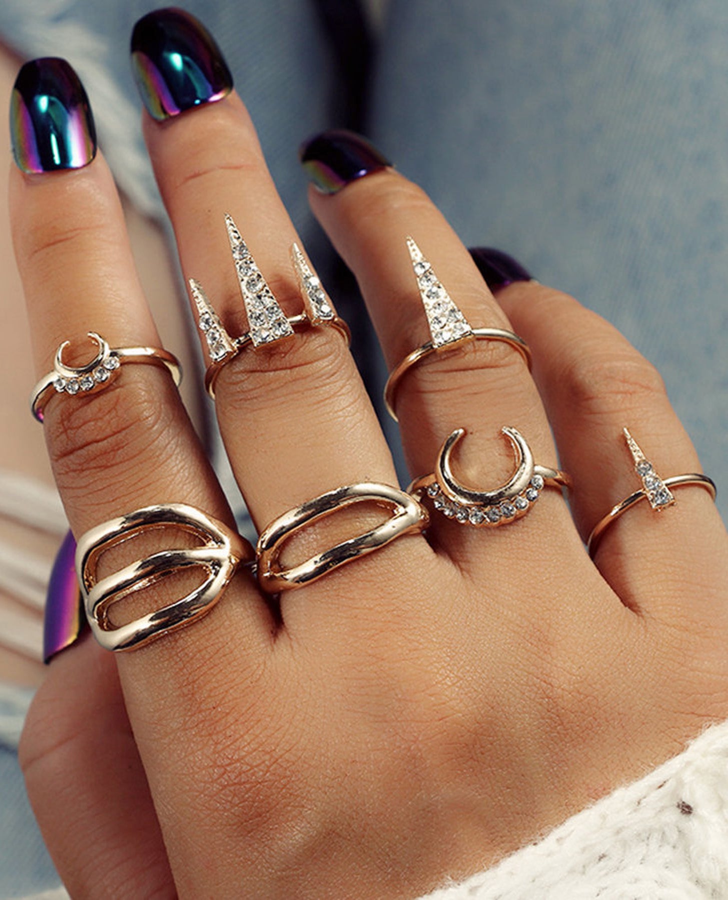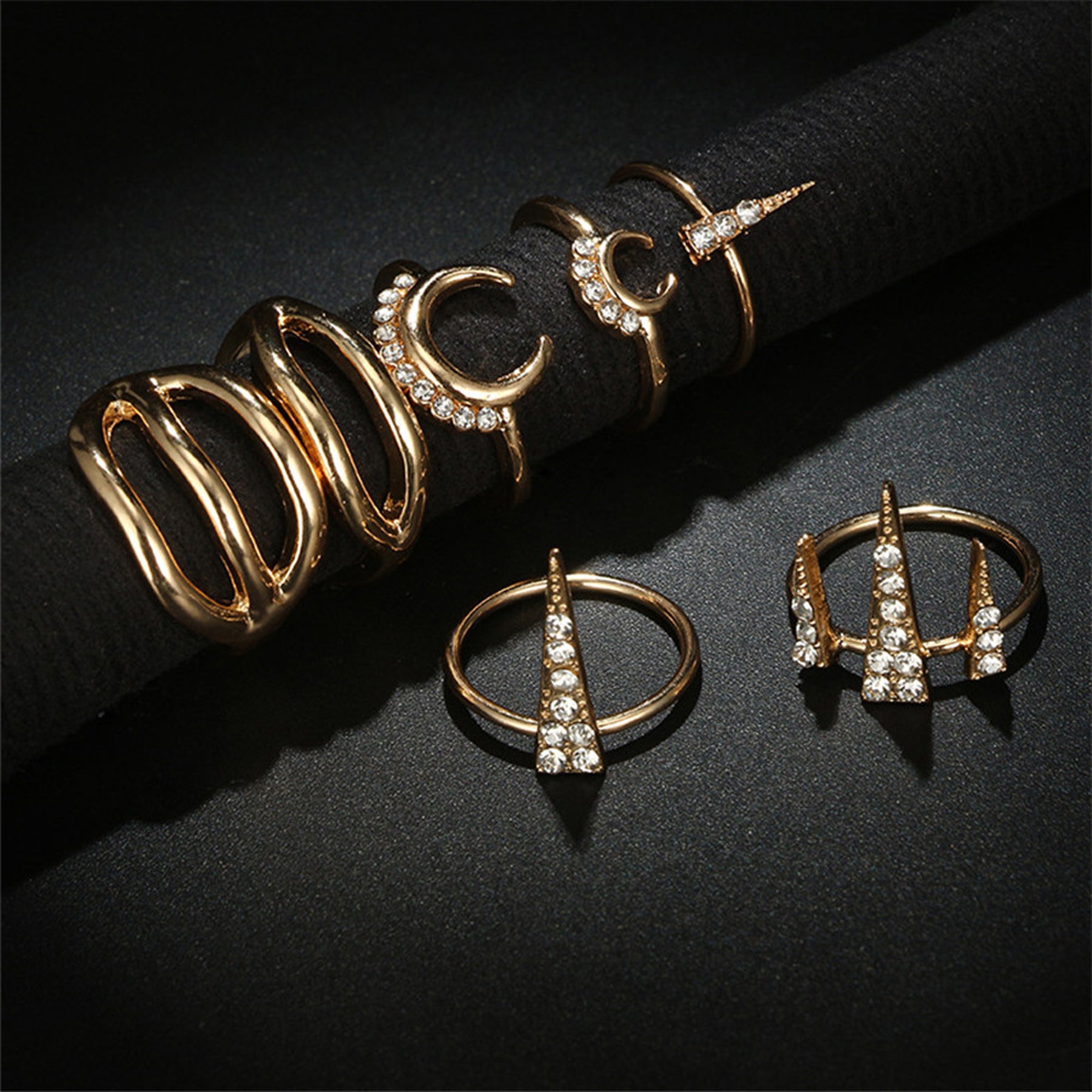 Gabrielle Boho Gypsy Arrow Midi Rings Moon Ring Set in Gold 7 Pieces