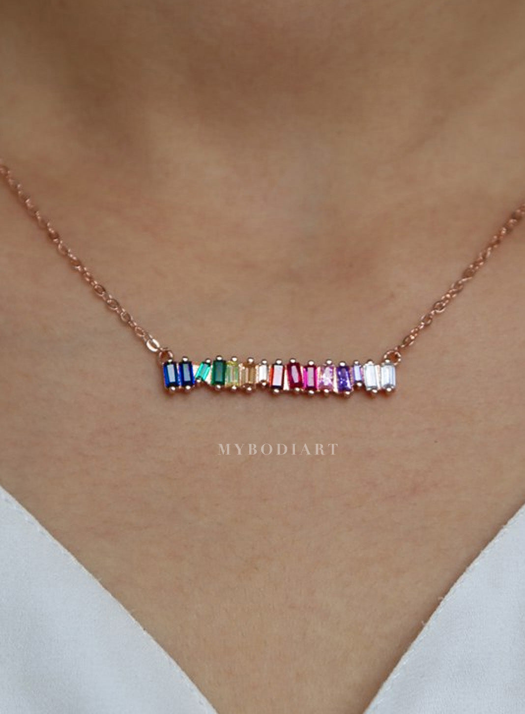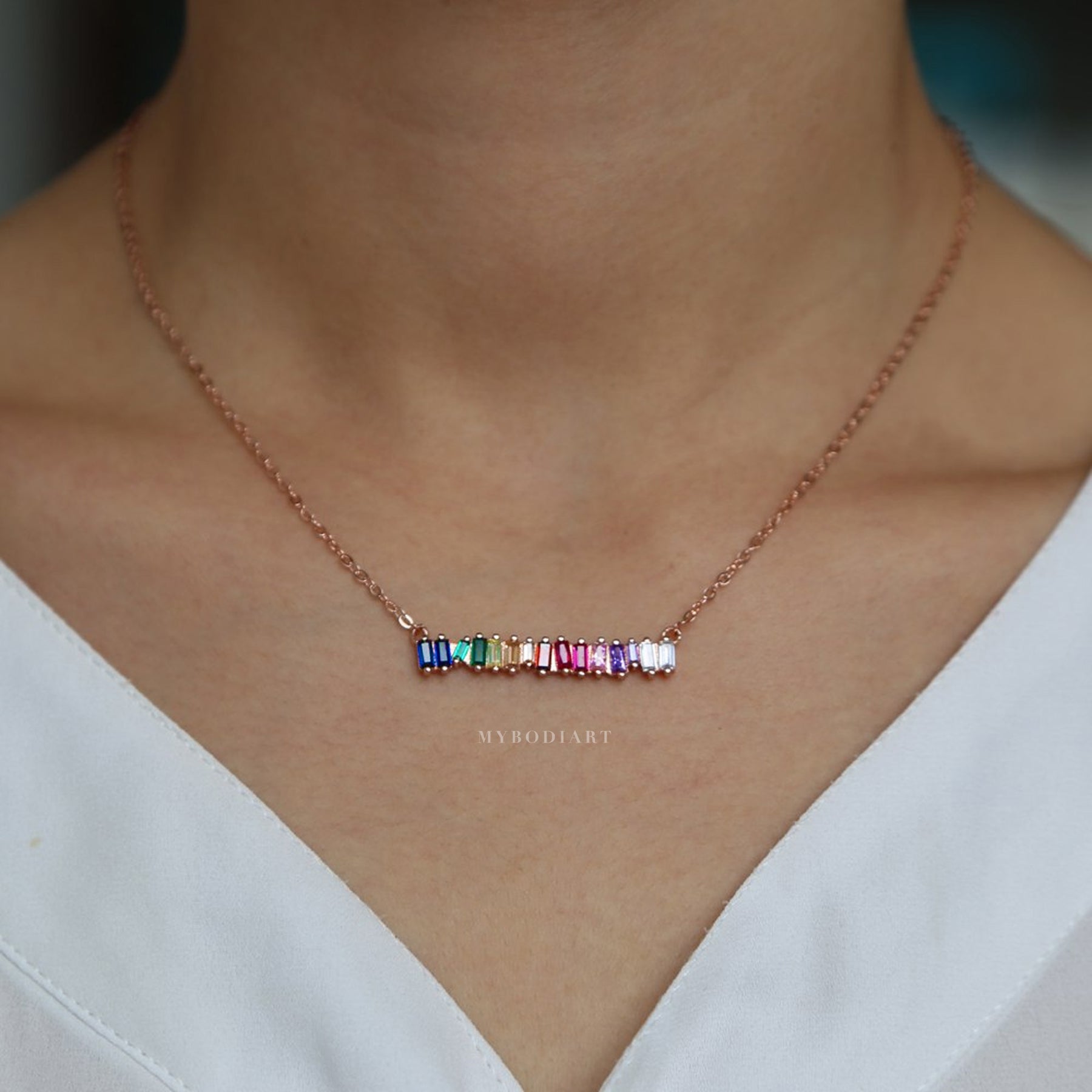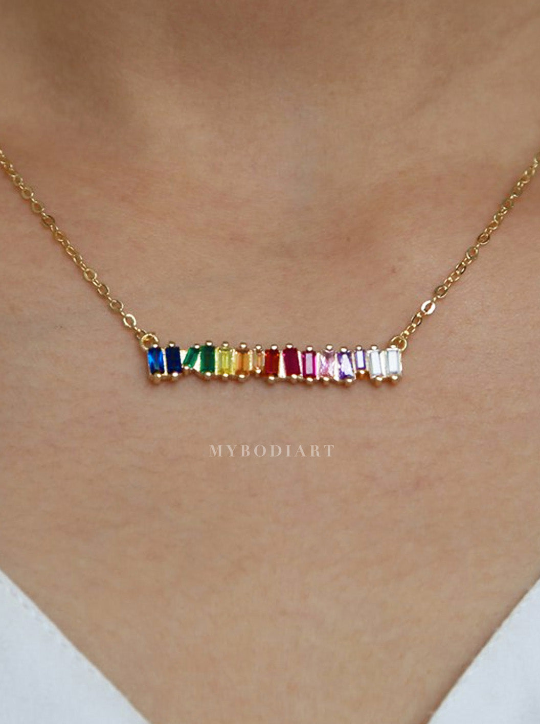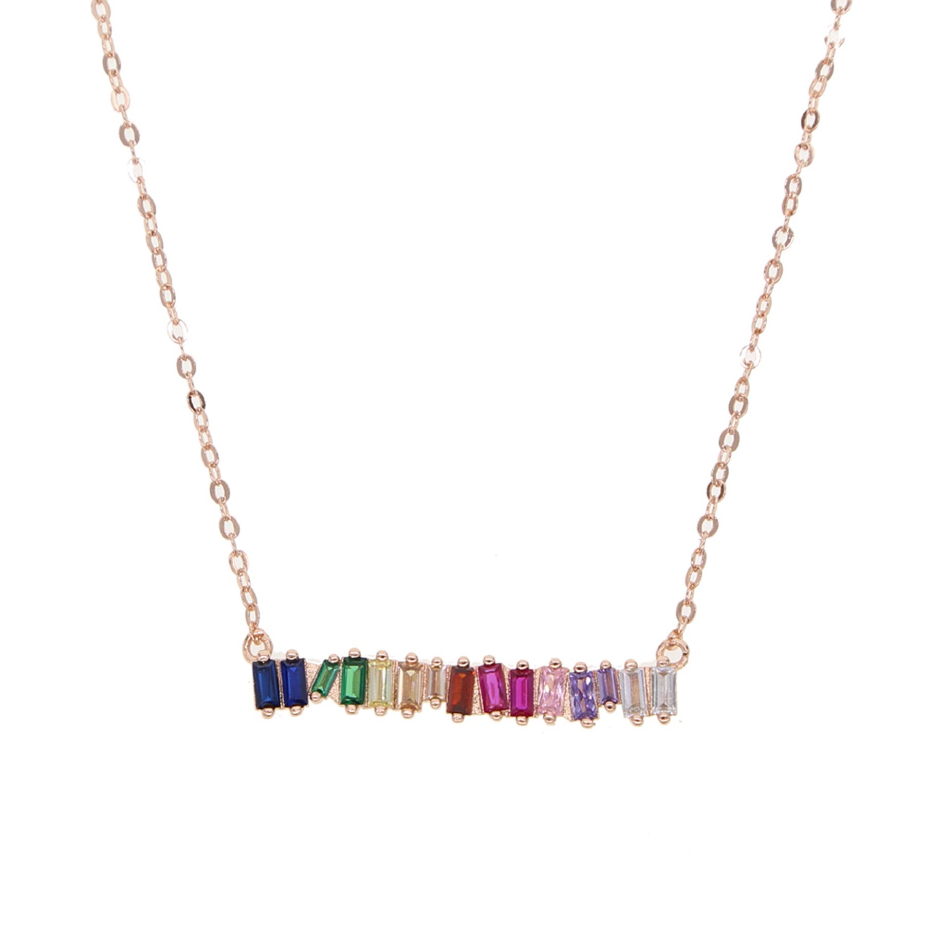 Giddy Colored Rainbow Gemstone Crystal Pave Pendant Chain Necklace