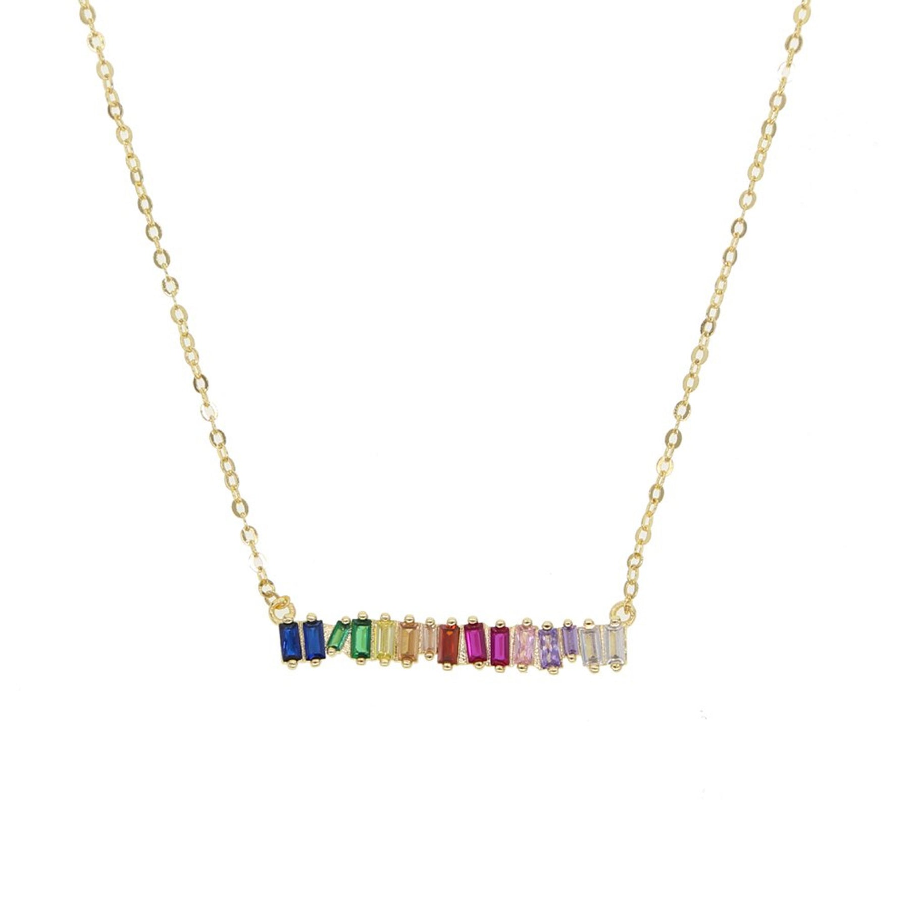 Jolly Rainbow Jagged Crystal Rectangle Pendant Chain Necklace in Gold