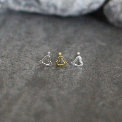 Regular price $18.99 USD20G Solid Dainty Hollow Heart Nose Ring Stud in Silver or Gold 0.925 Sterling Silver