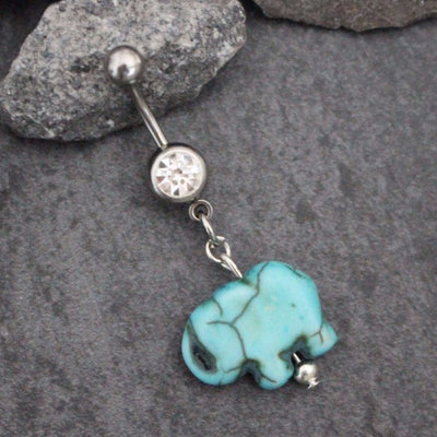 Belly Button Rings Elephant, Belly Bar, Belly Ring, Navel Piercing, Gold Navel Ring, Navel Jewelry, Turquoise Bohemian Boho Traditional