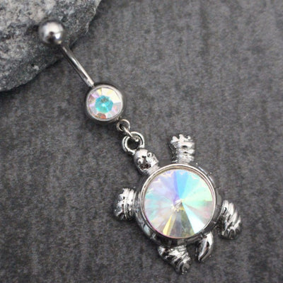Opal Aurora Borealis Crystal Turtle 14G Belly Button Rings