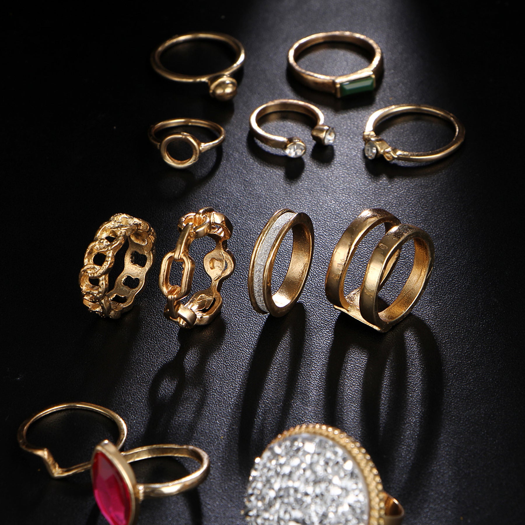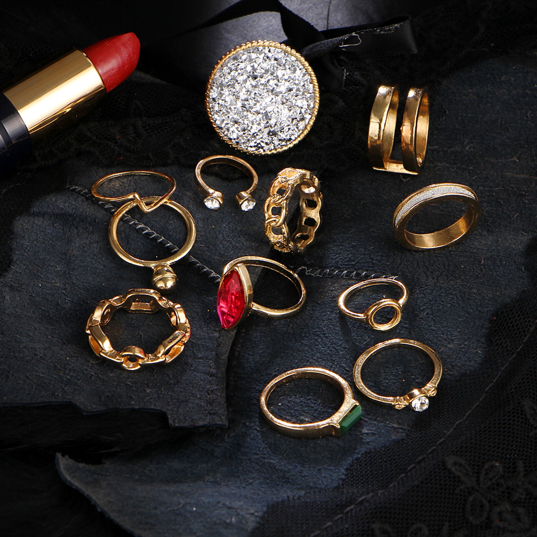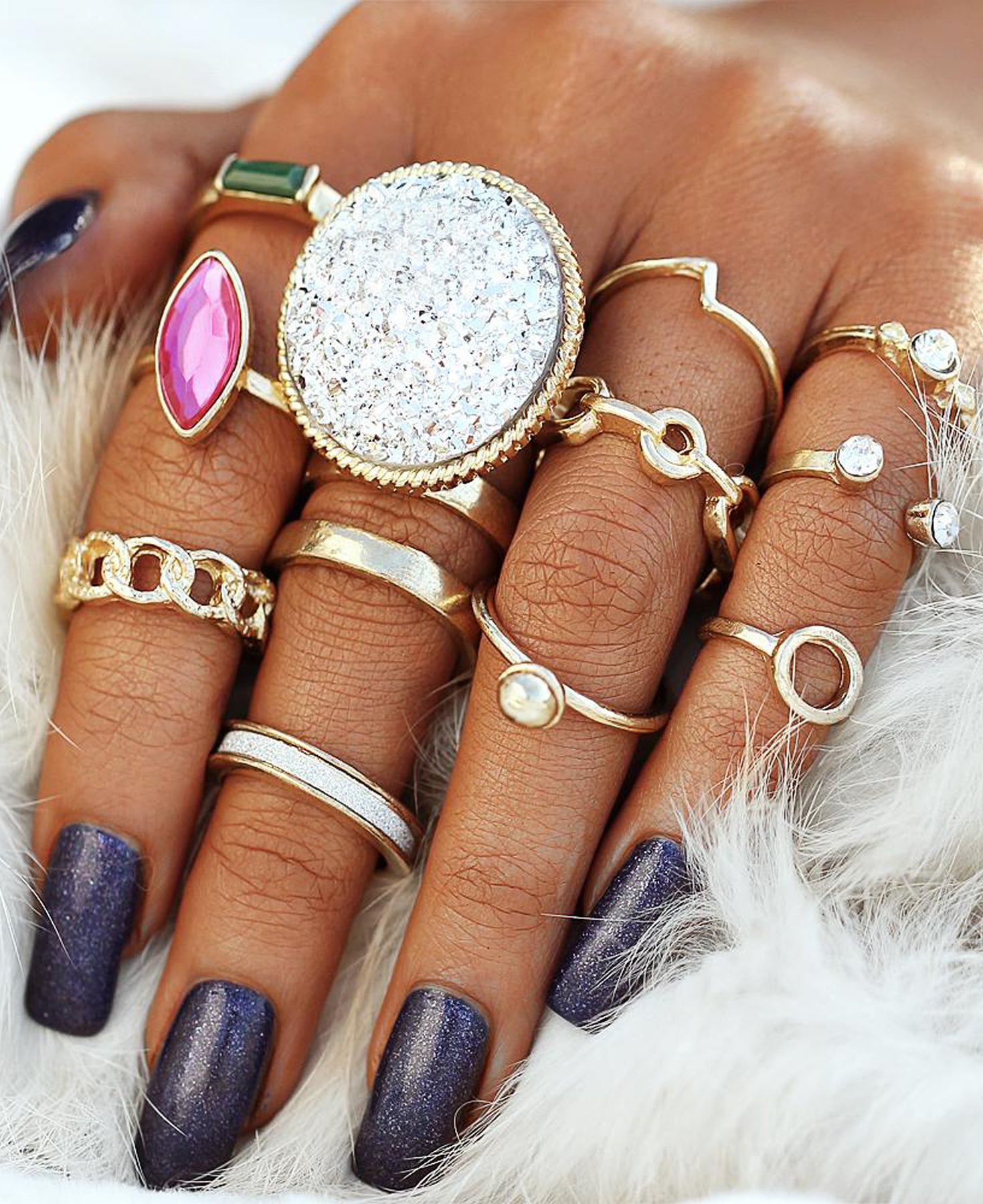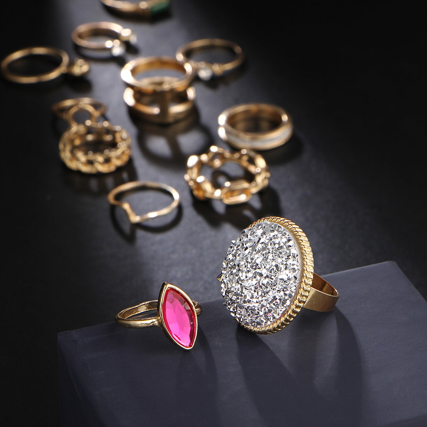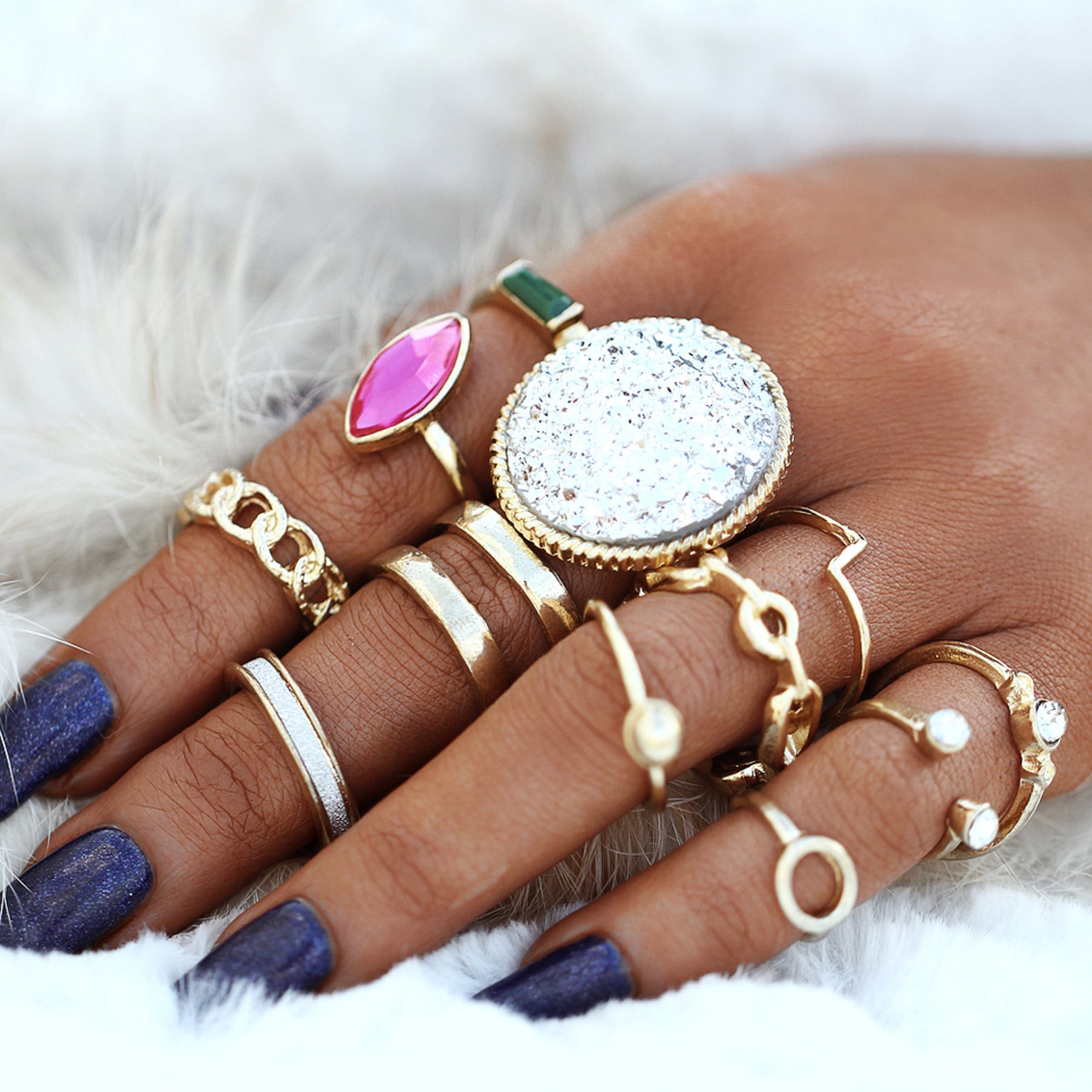 Naomi Chunky Crystal Fashion Statement Rings Set 12 Pieces