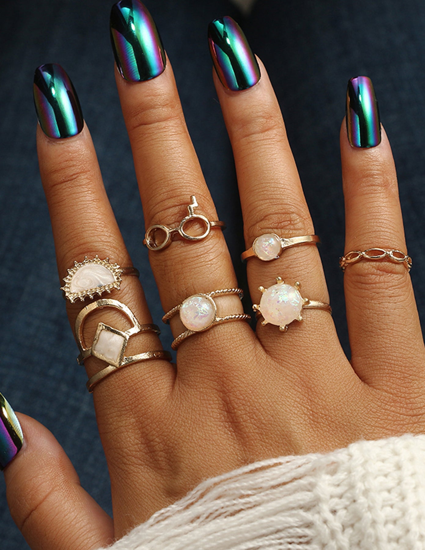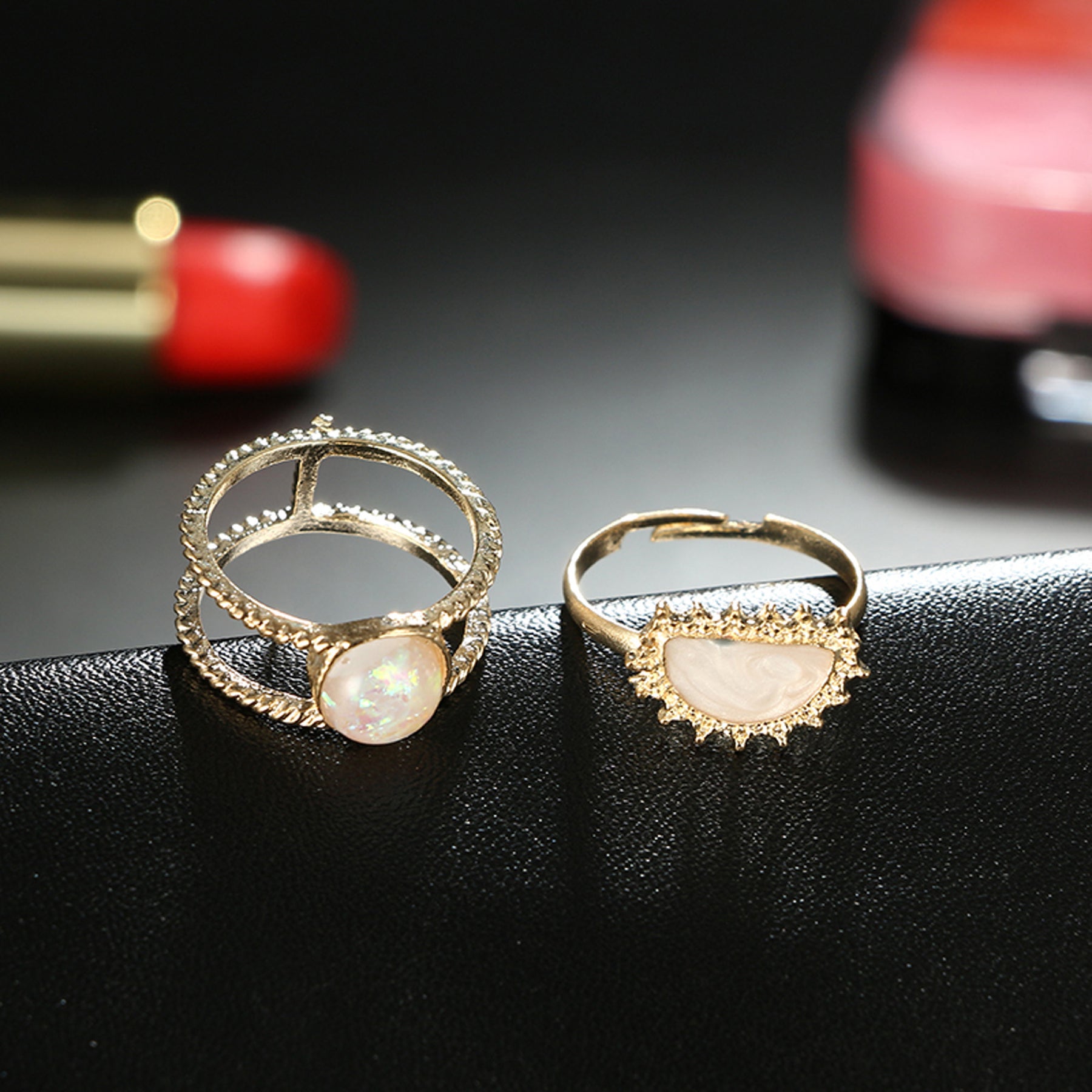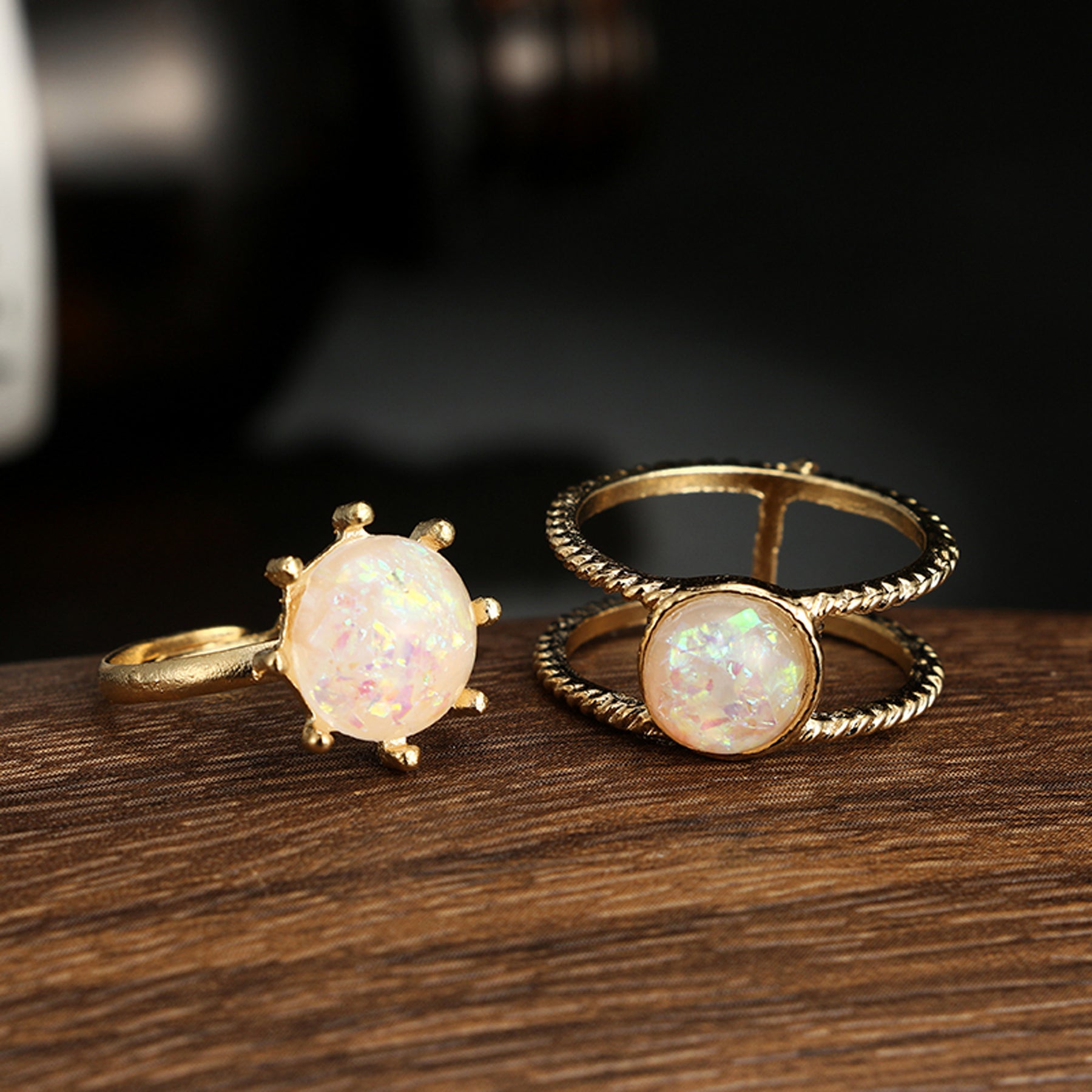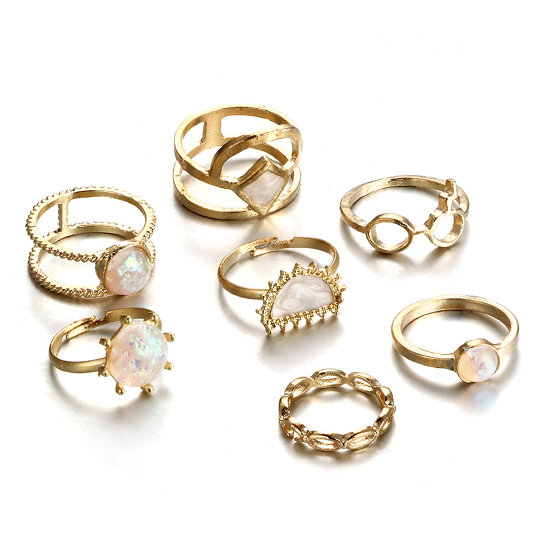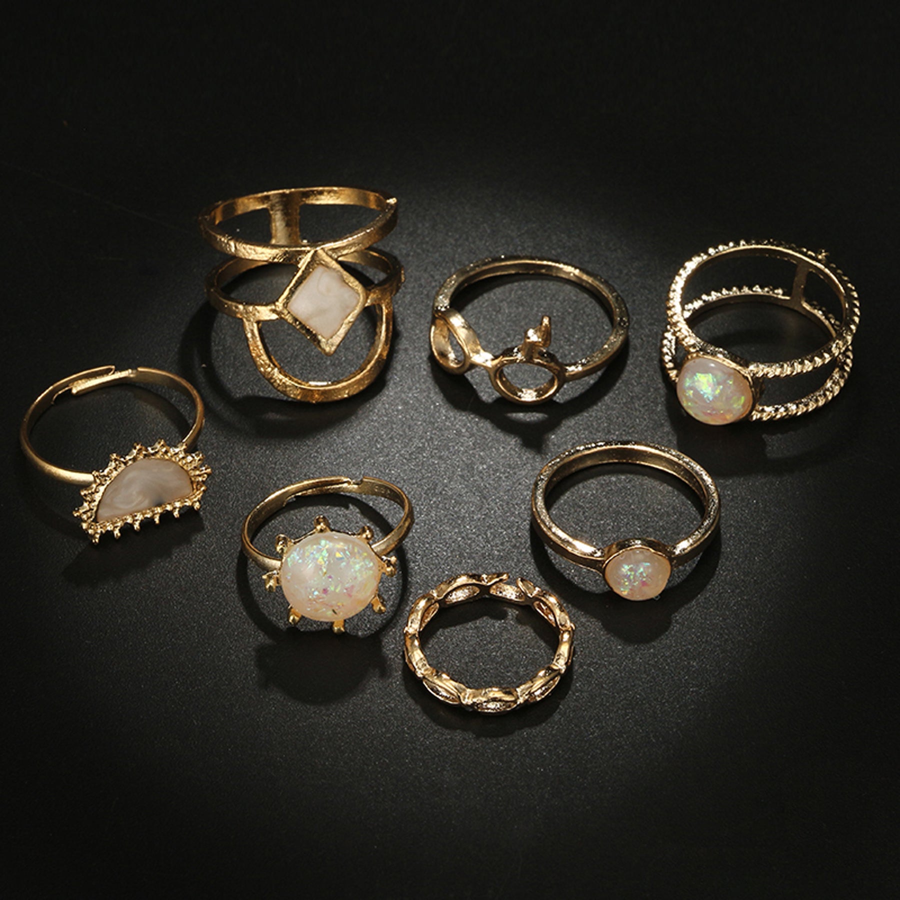 Goldie Boho Chunky Opal Sun Stackable Rings Set in Gold 7 Pieces