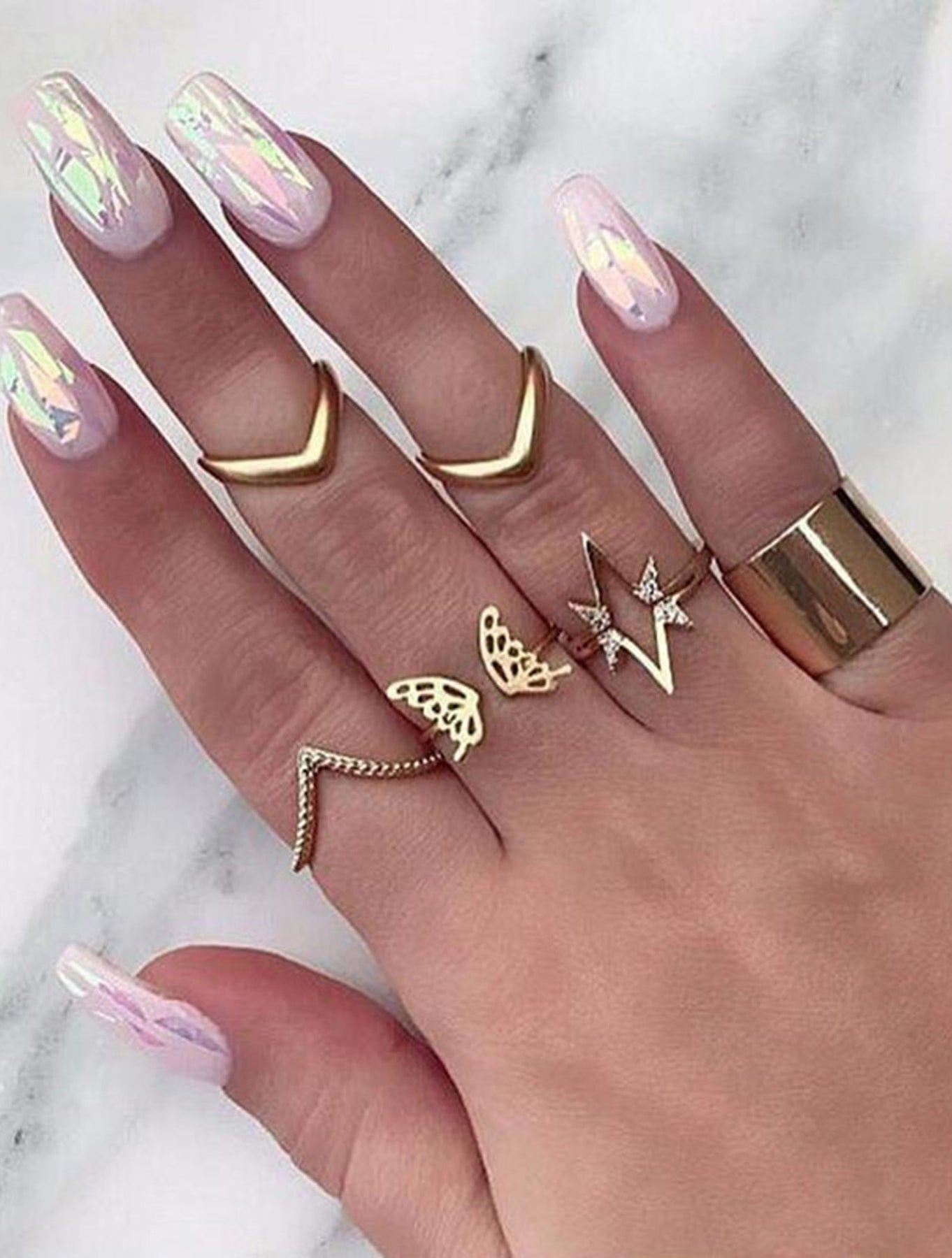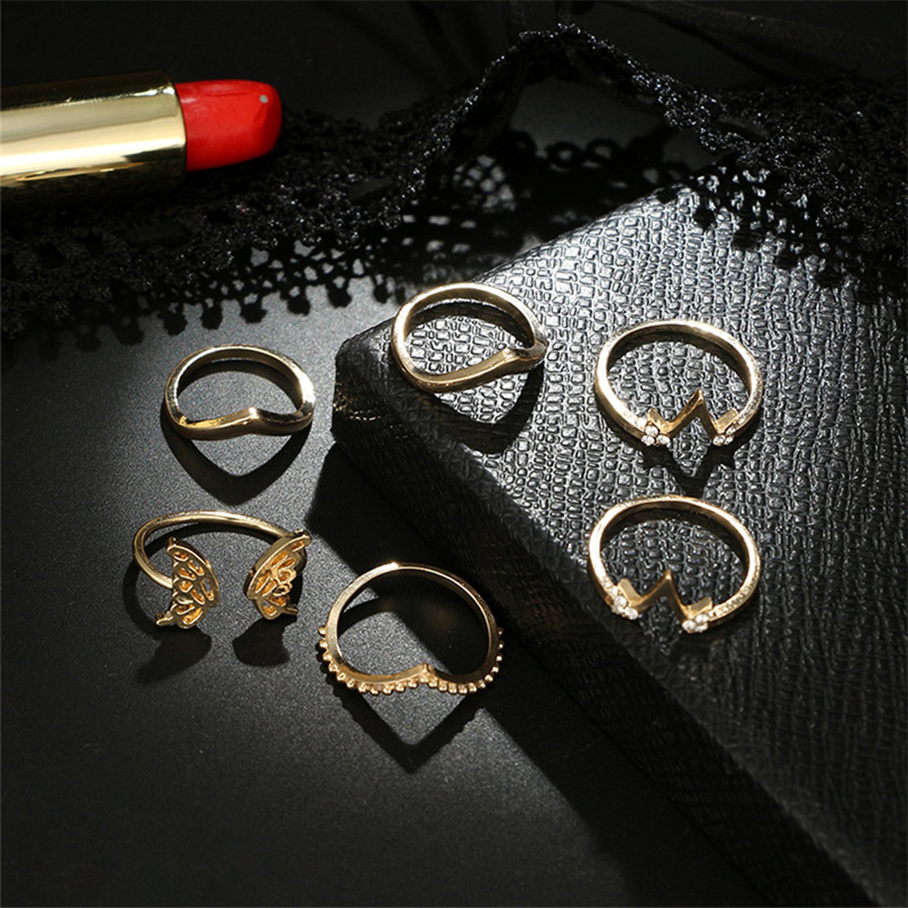 Faye Cute Unique Stackable Gold Butterfly Statement 7 Piece Ring Set