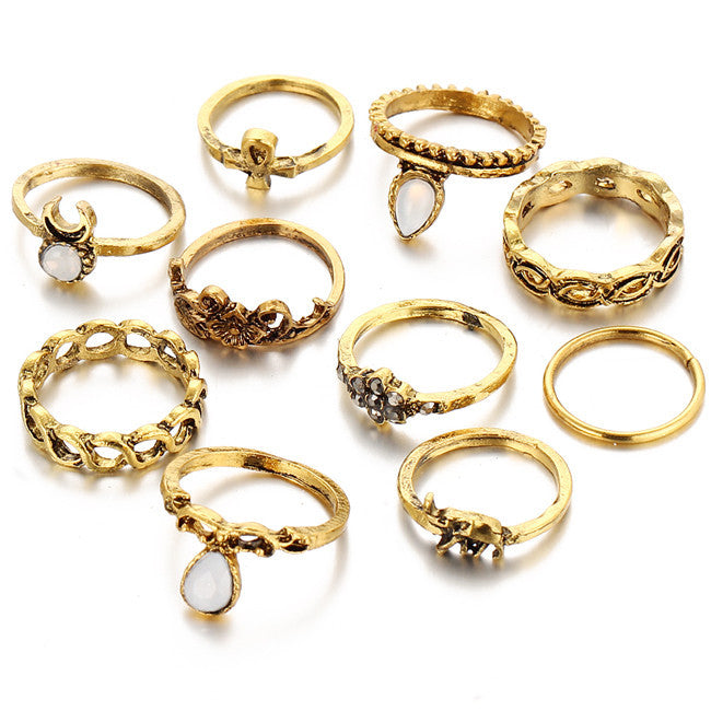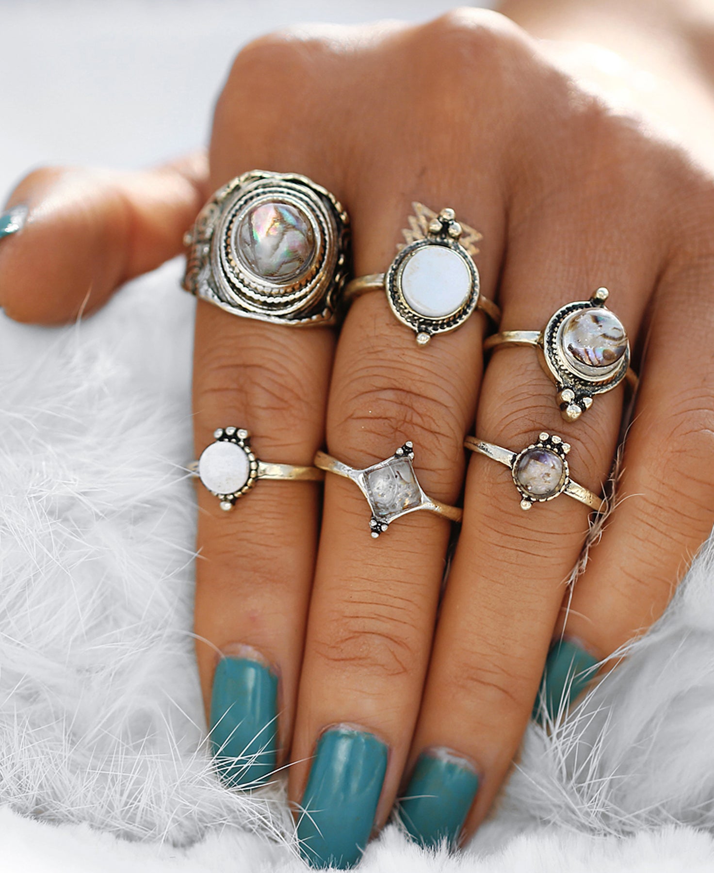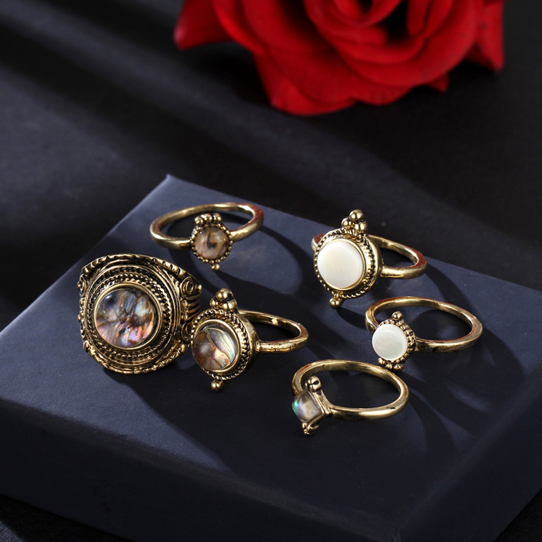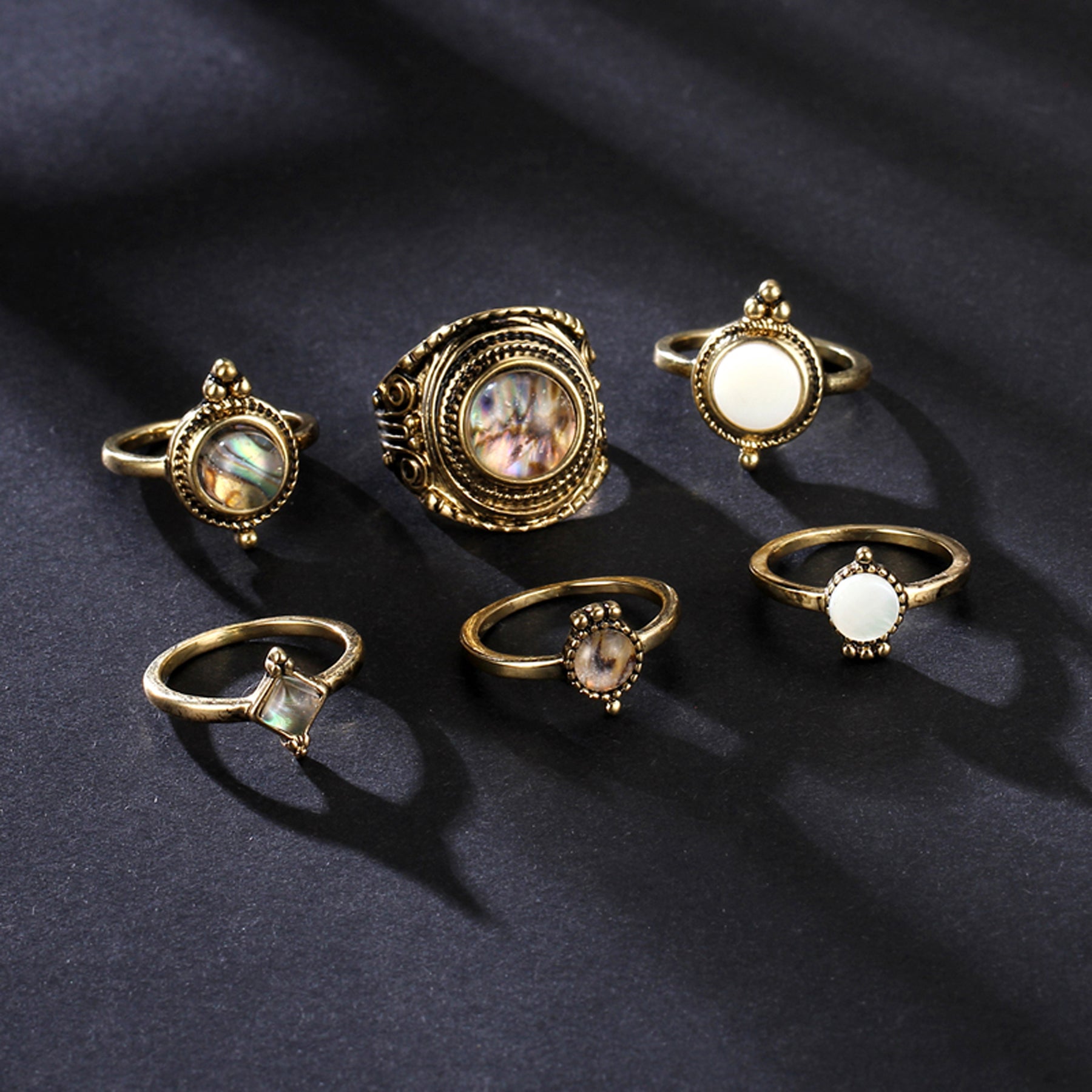 Arya Boho Antiqued Gold Opal Shell Statement Midi Ring & Rings Set 6 Pieces