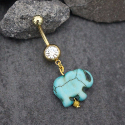 Belly Button Rings Elephant, Belly Bar, Belly Ring, Navel Piercing, Gold Navel Ring, Navel Jewelry, Turquoise Bohemian Boho Traditional