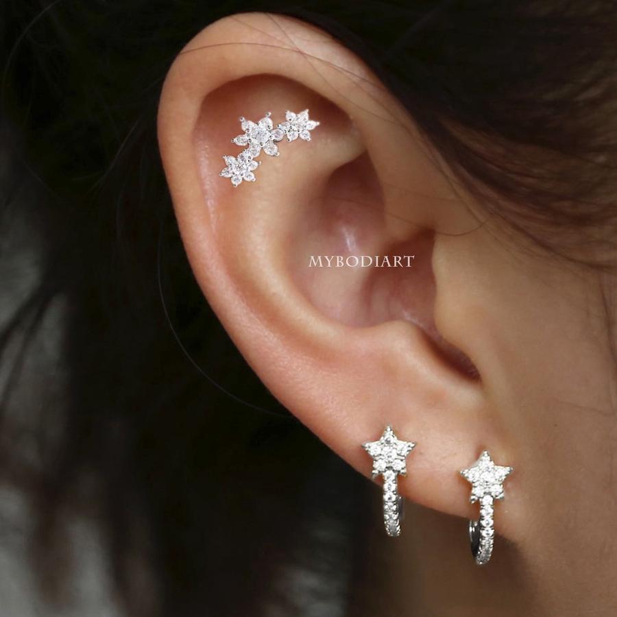 A limited-edition holiday set of 3 bestselling rook earrings from MyBodiArt.