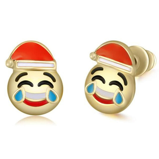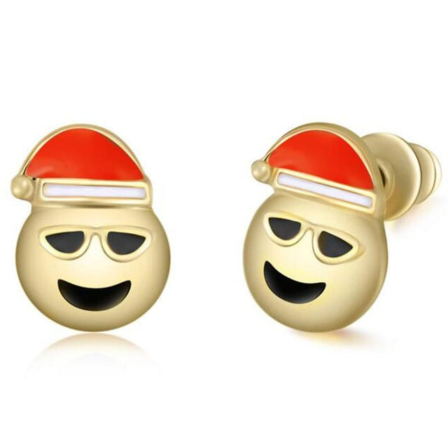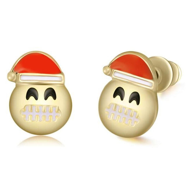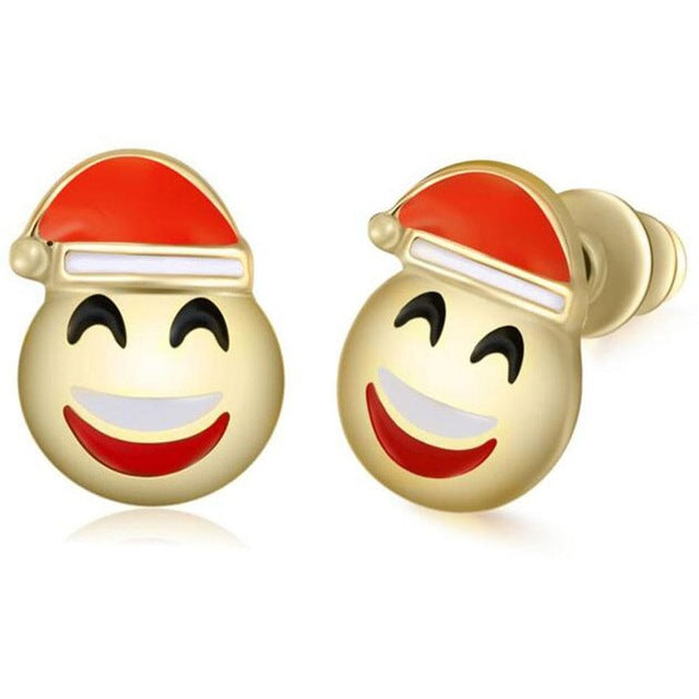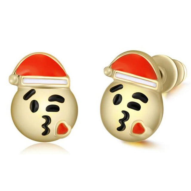 Nickii Heart Eyes Emoji Santa Claus Stud Earrings in Gold