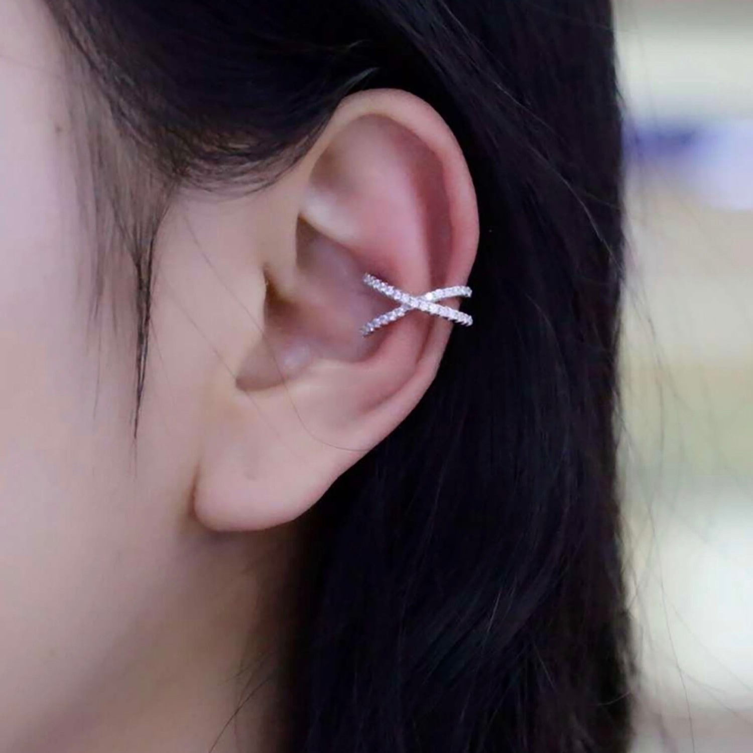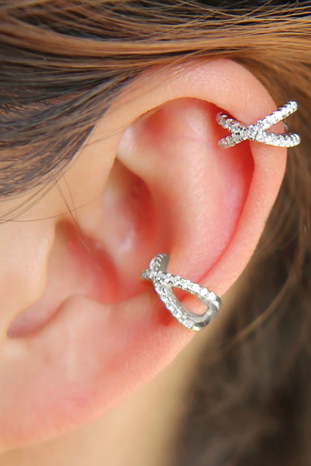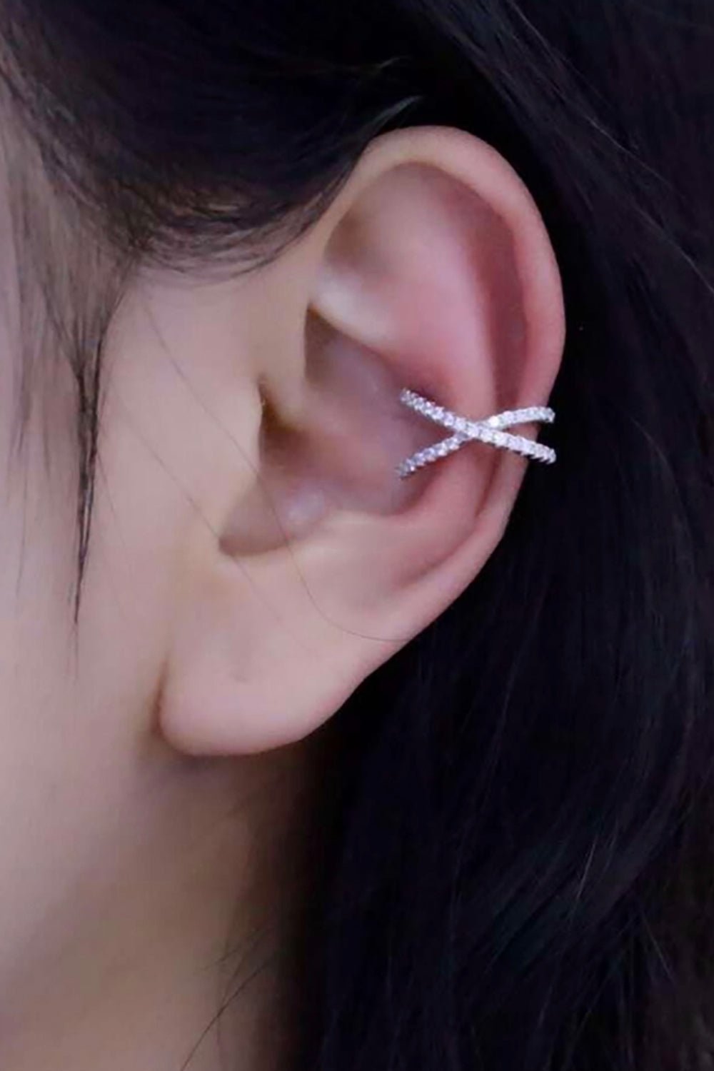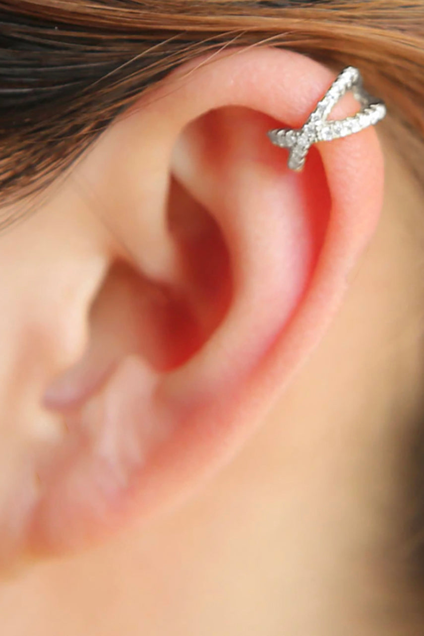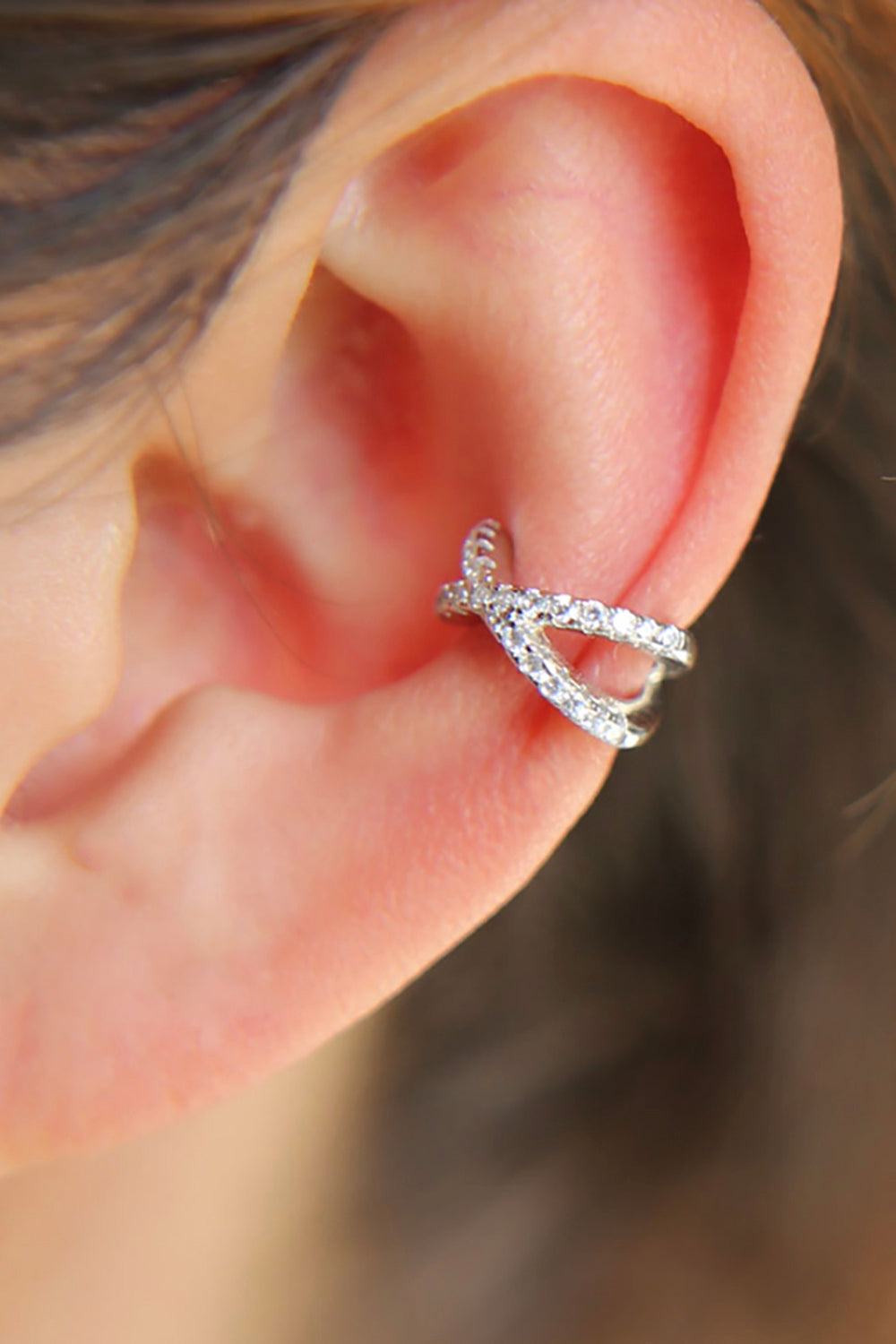 Bibi Crystal Criss Cross Silver Ear Cuff Earring