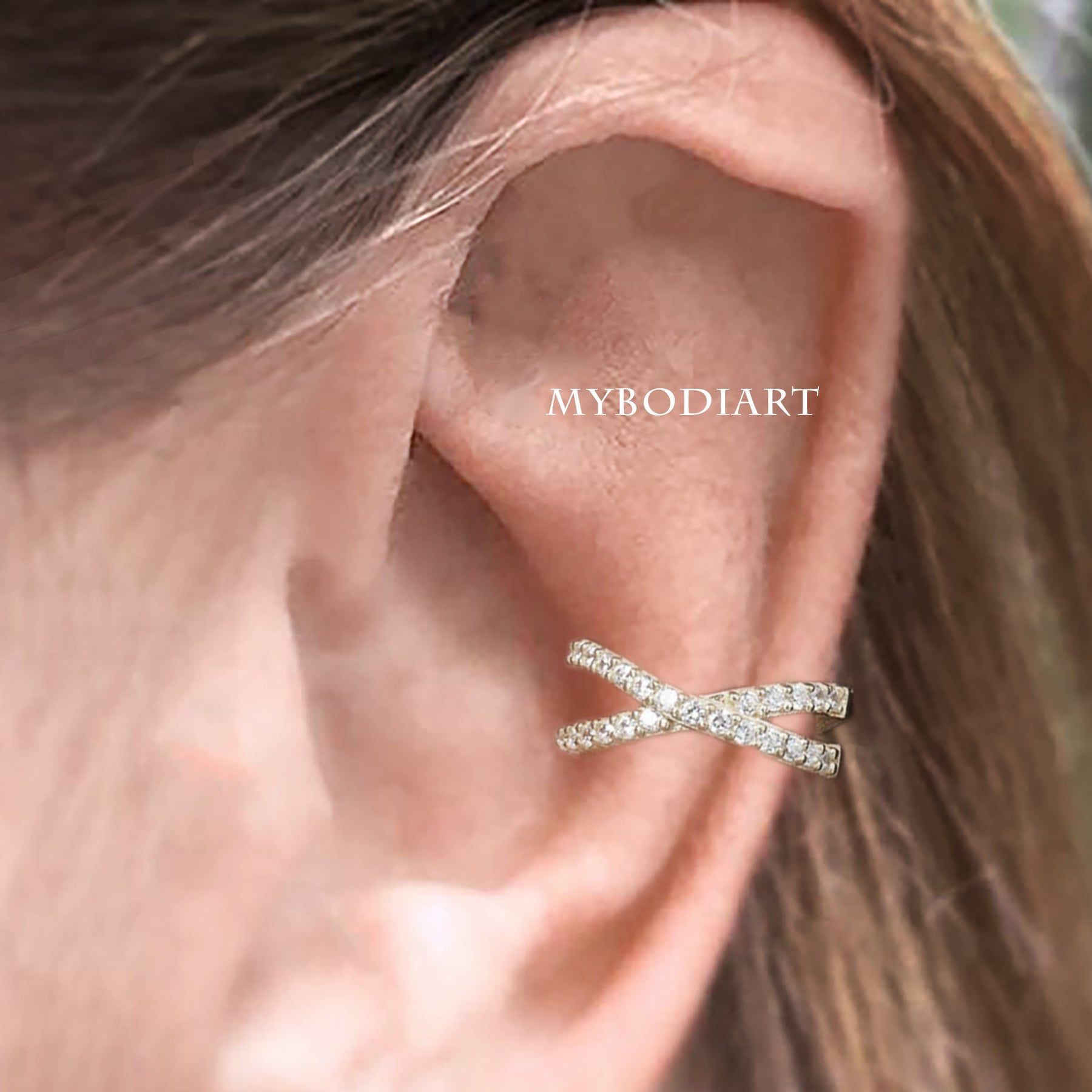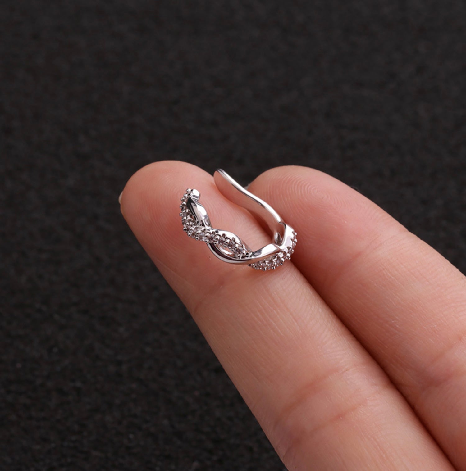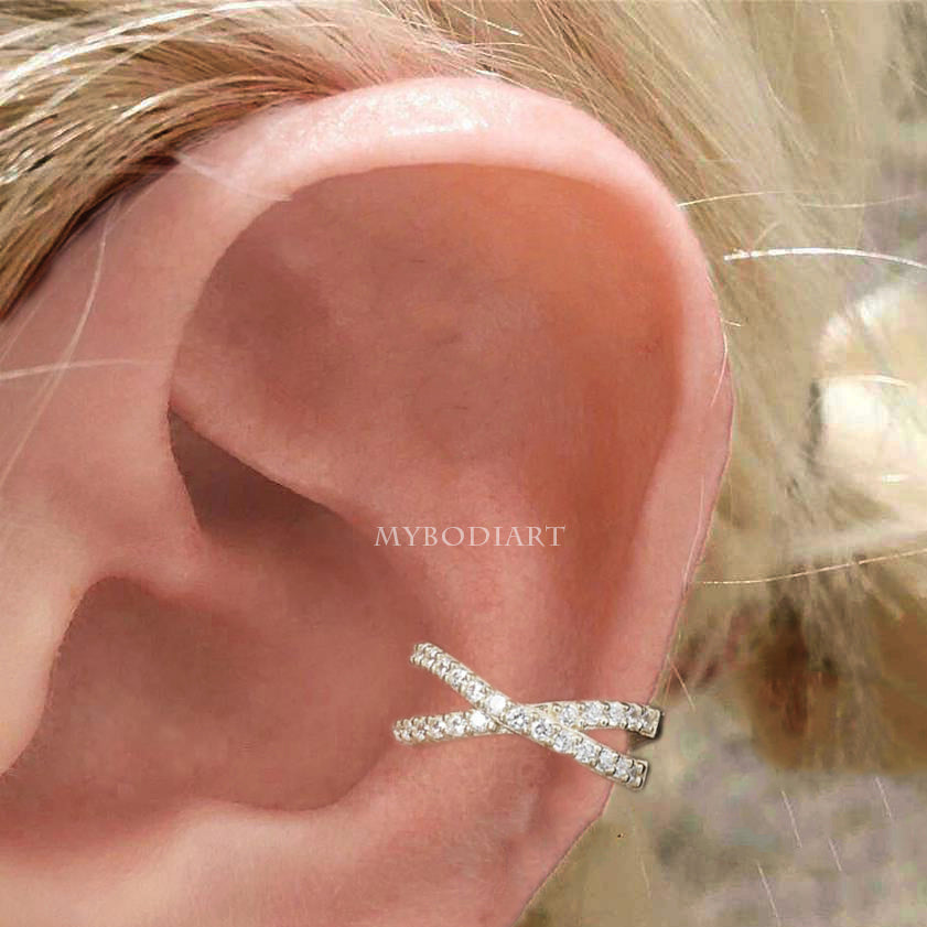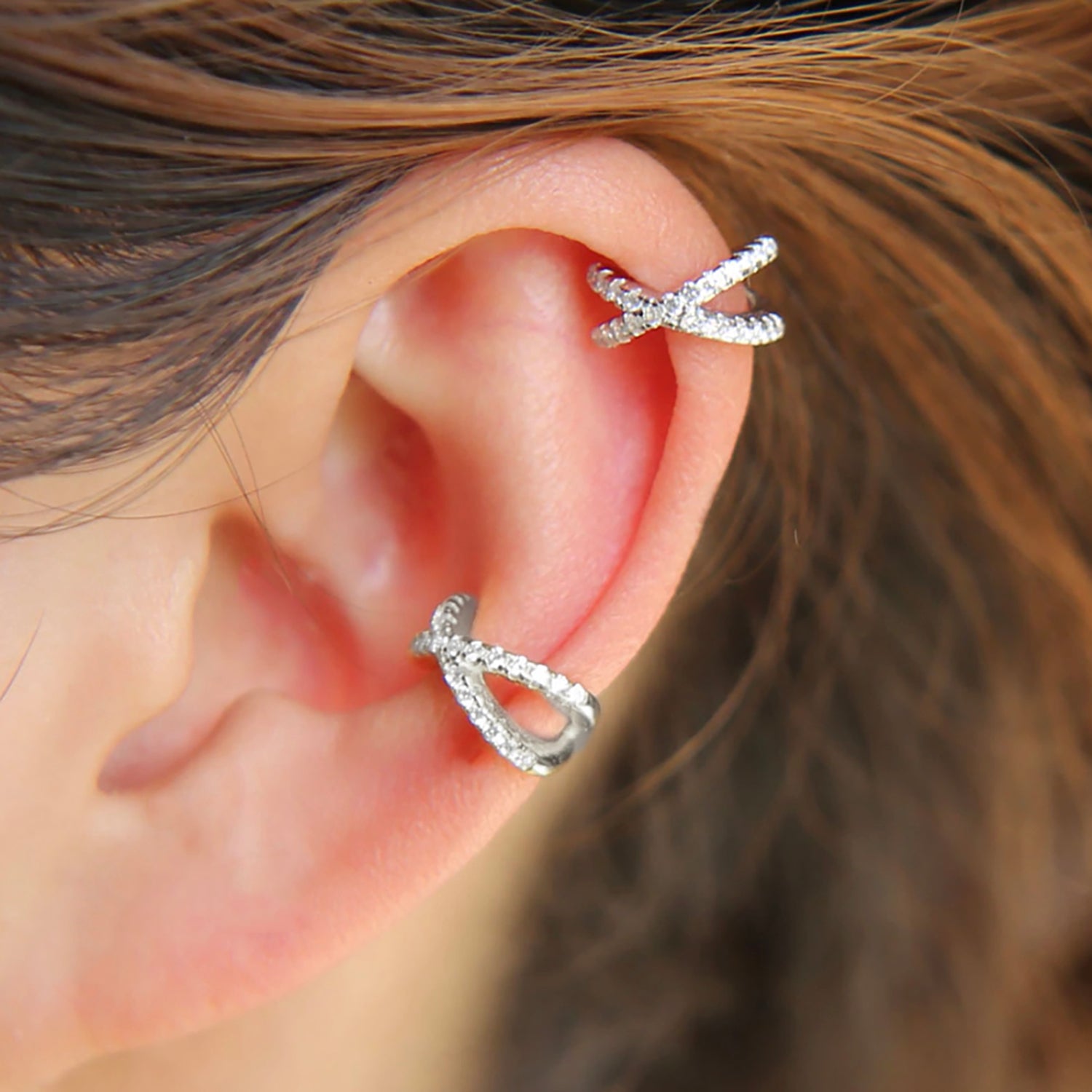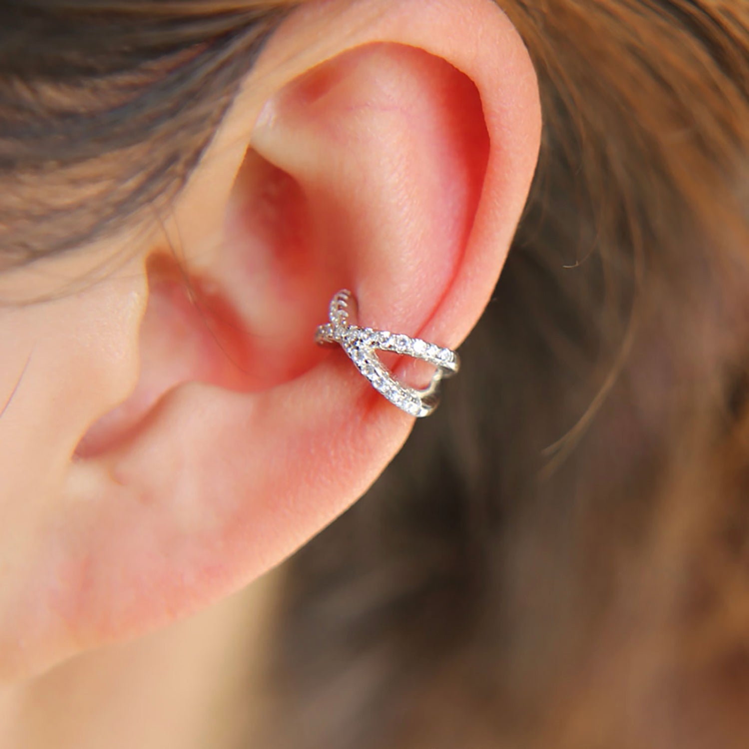 Bibi Crystal Criss Cross Silver Ear Cuff Earring