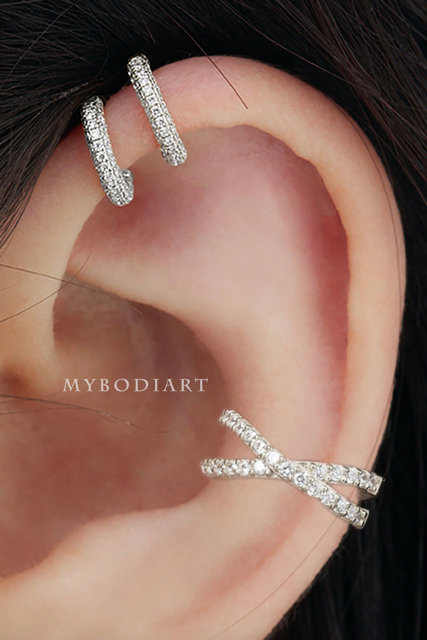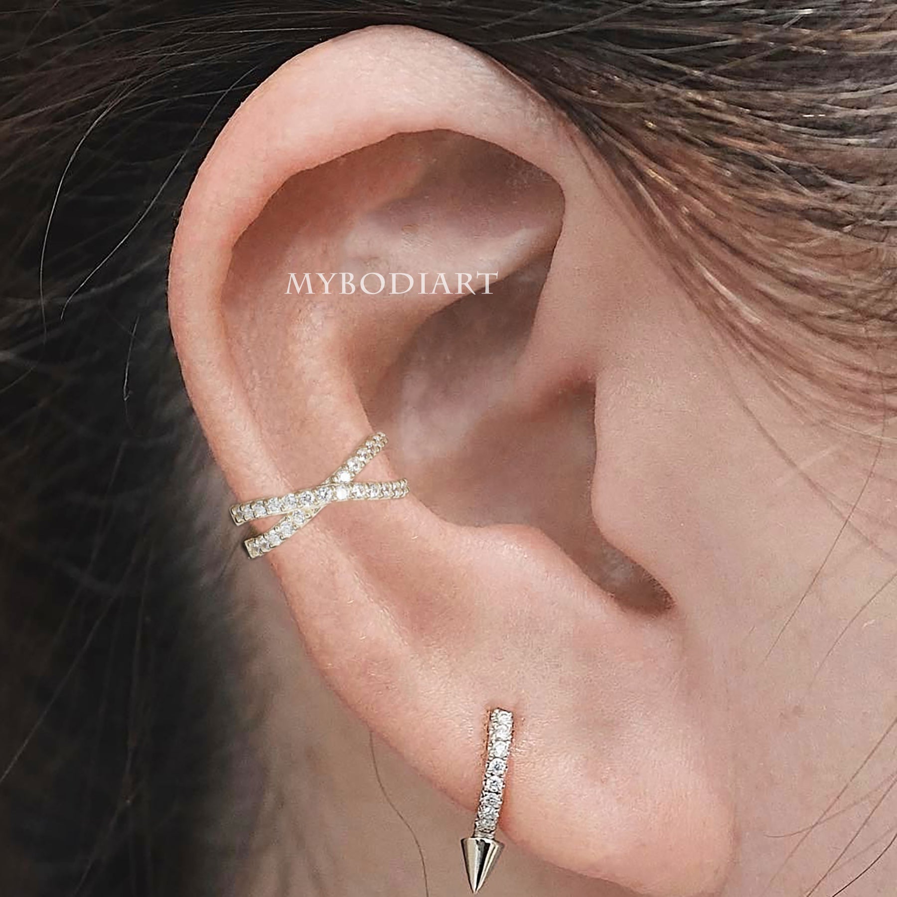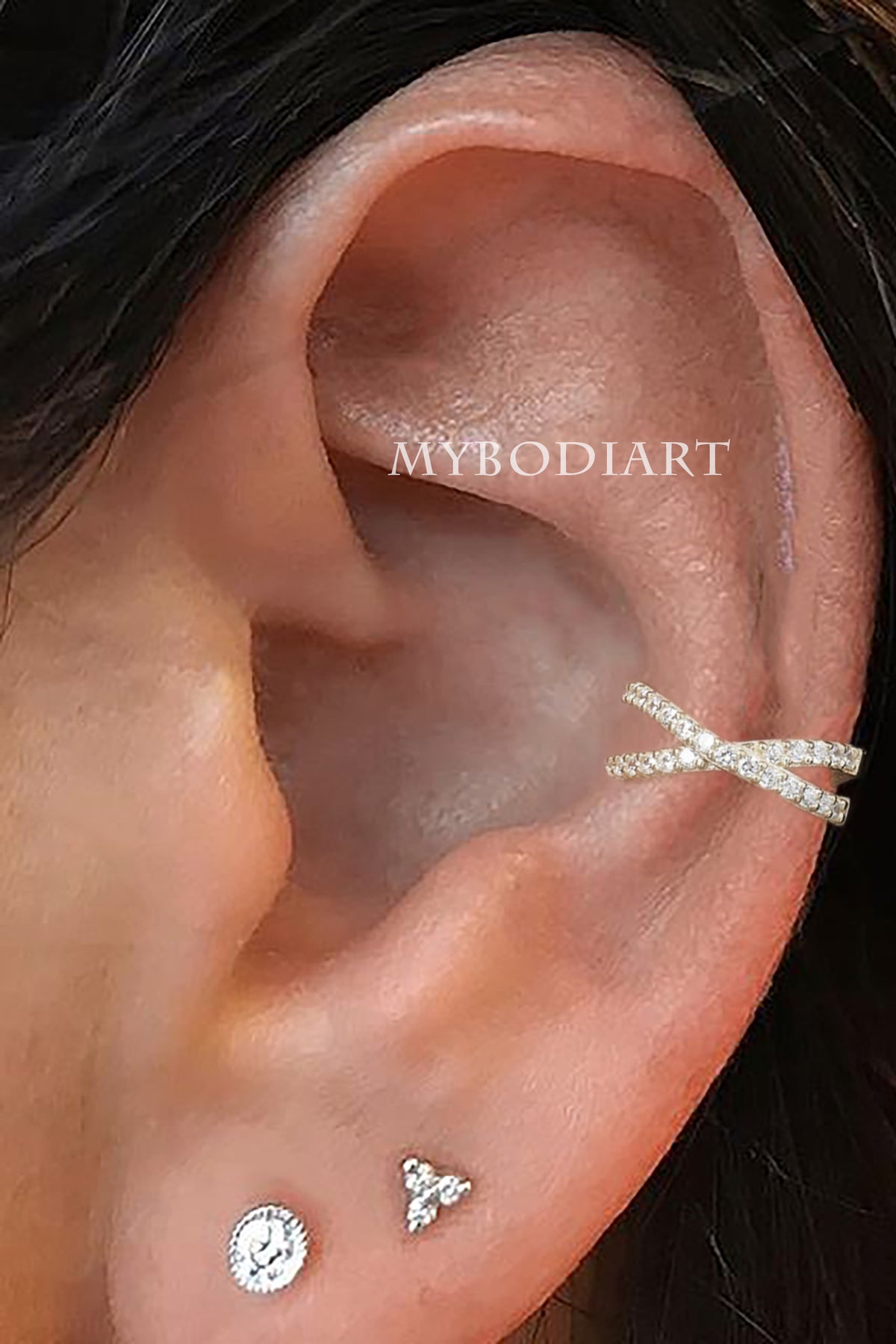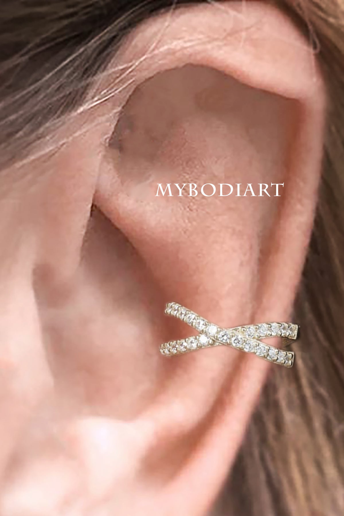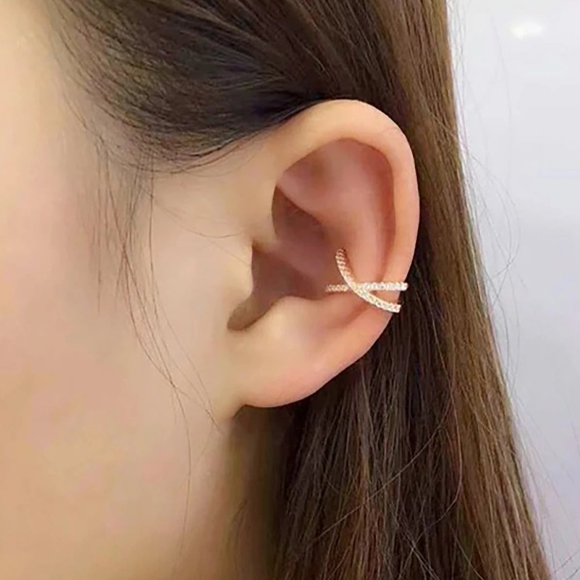 Bibi Crystal Criss Cross Silver Ear Cuff Earring