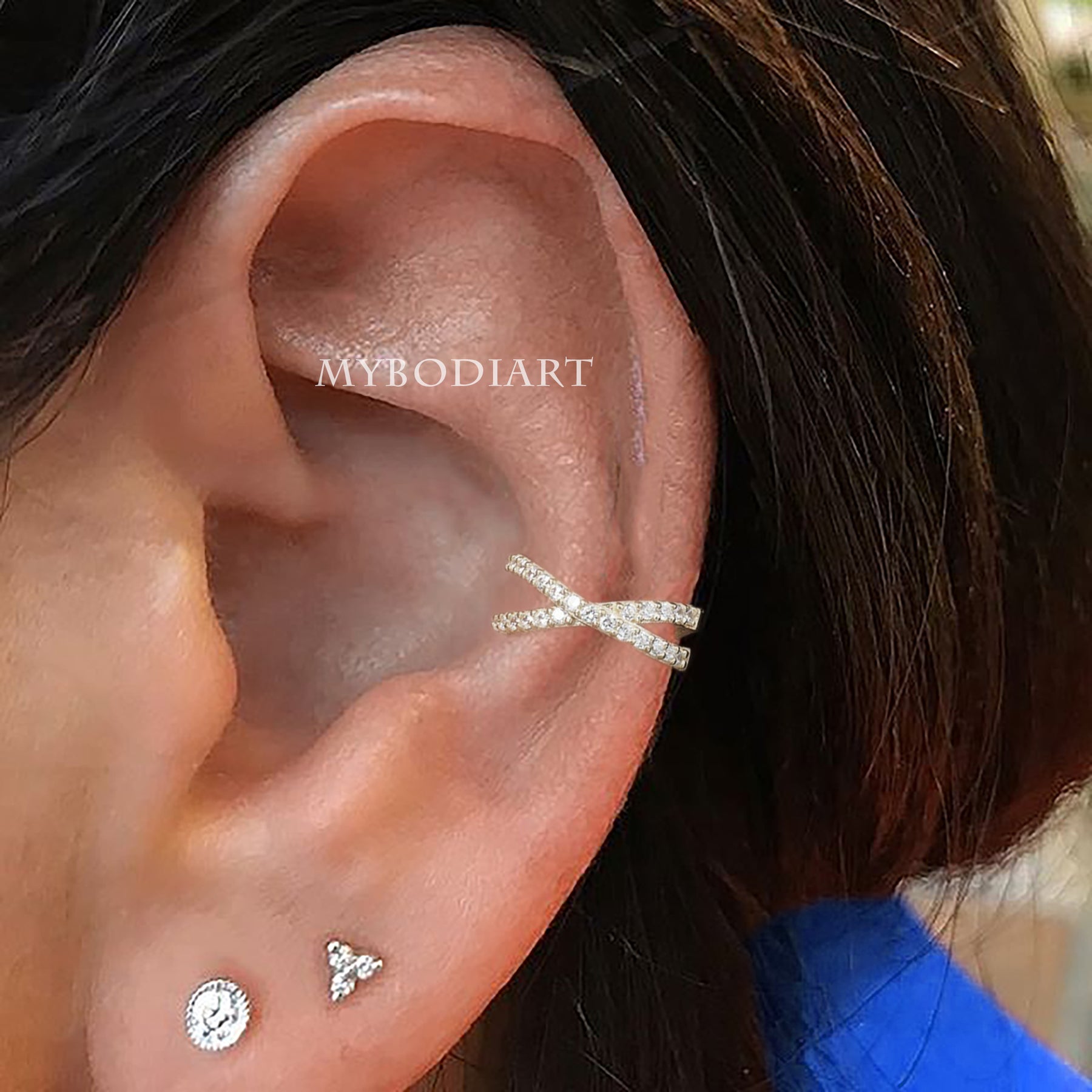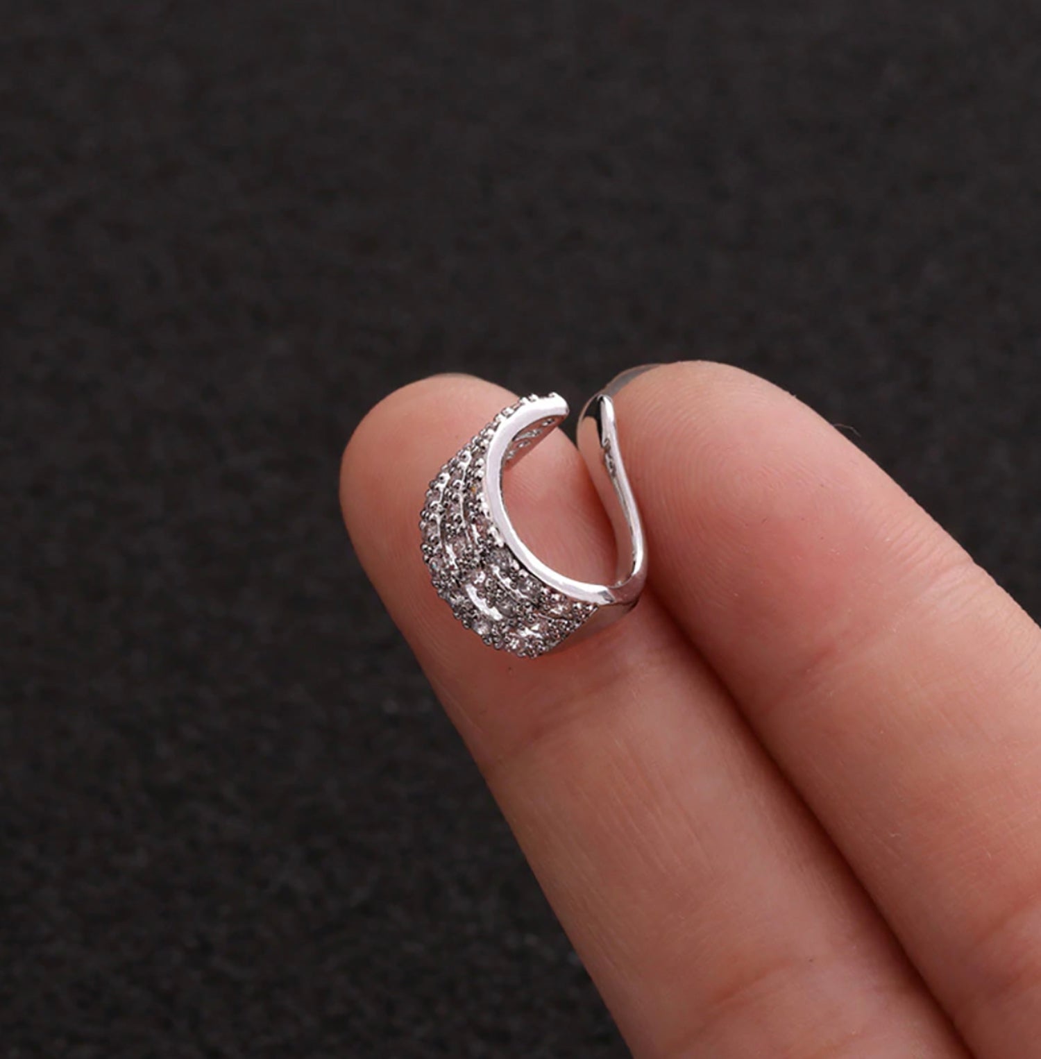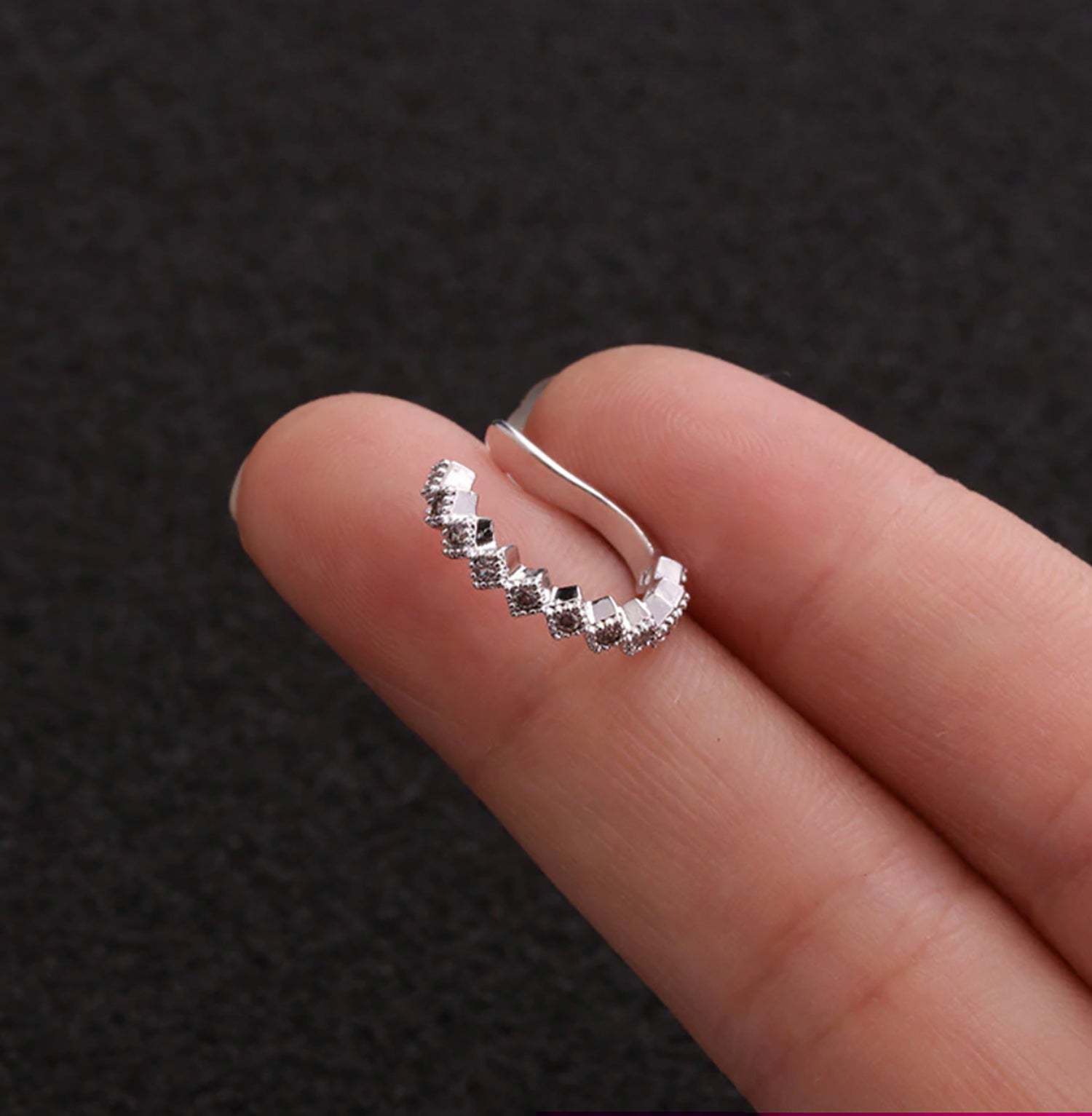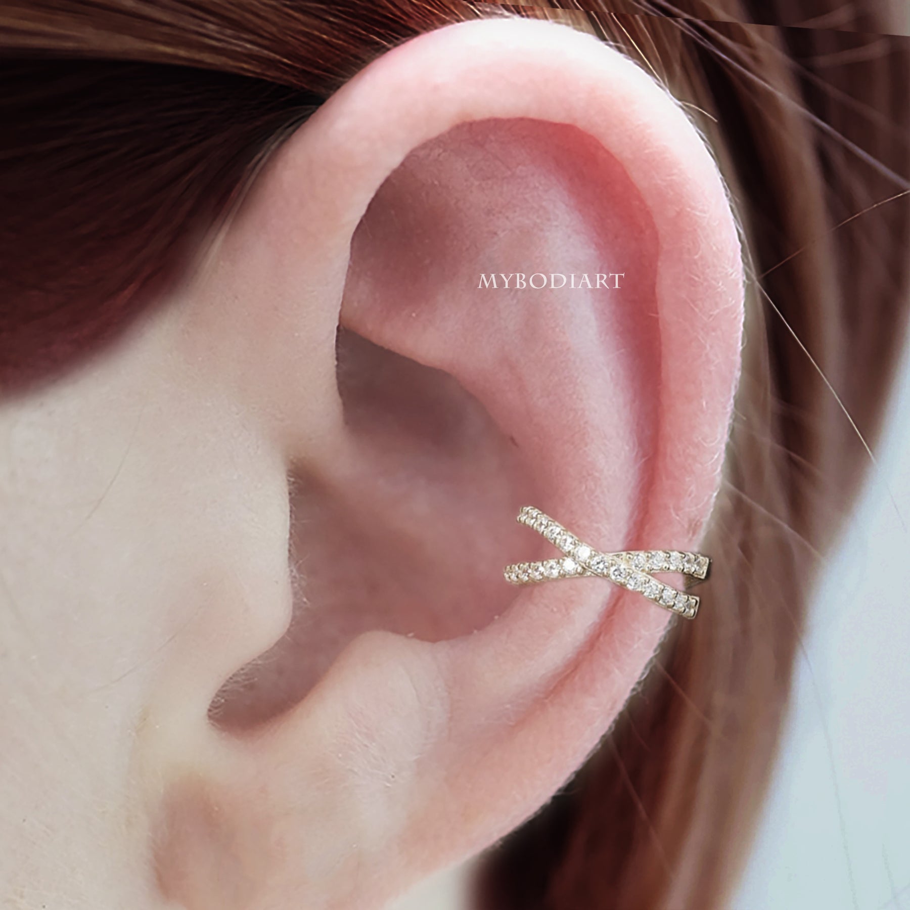 Bibi Crystal Criss Cross Silver Ear Cuff Earring