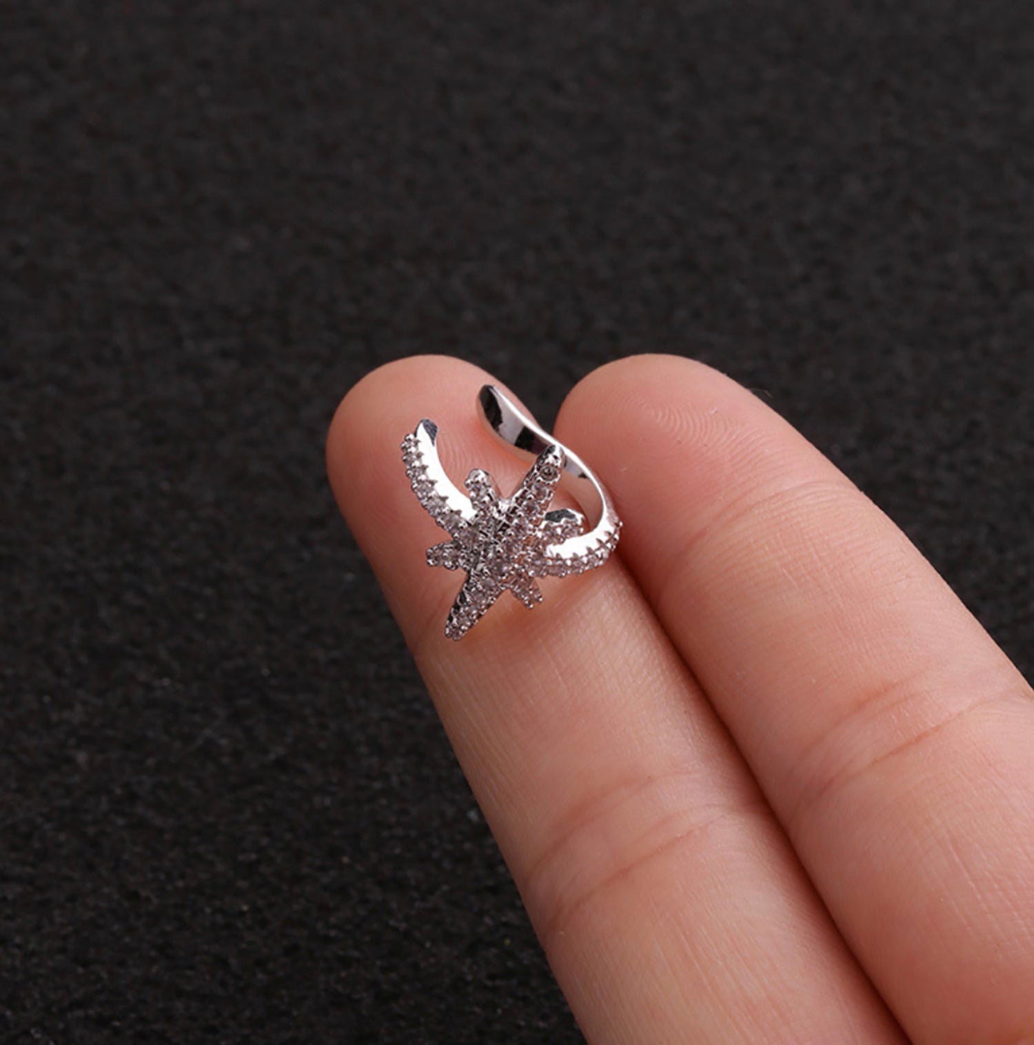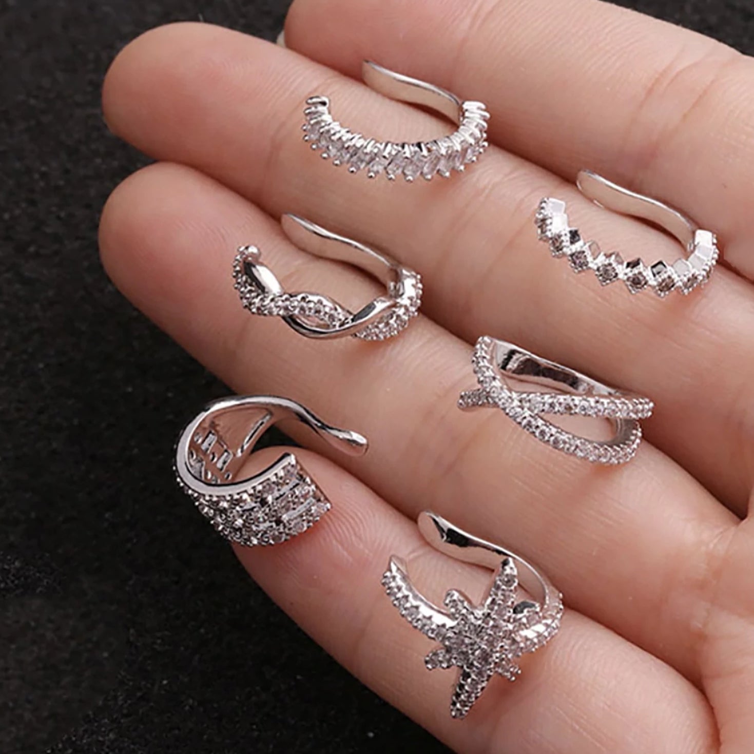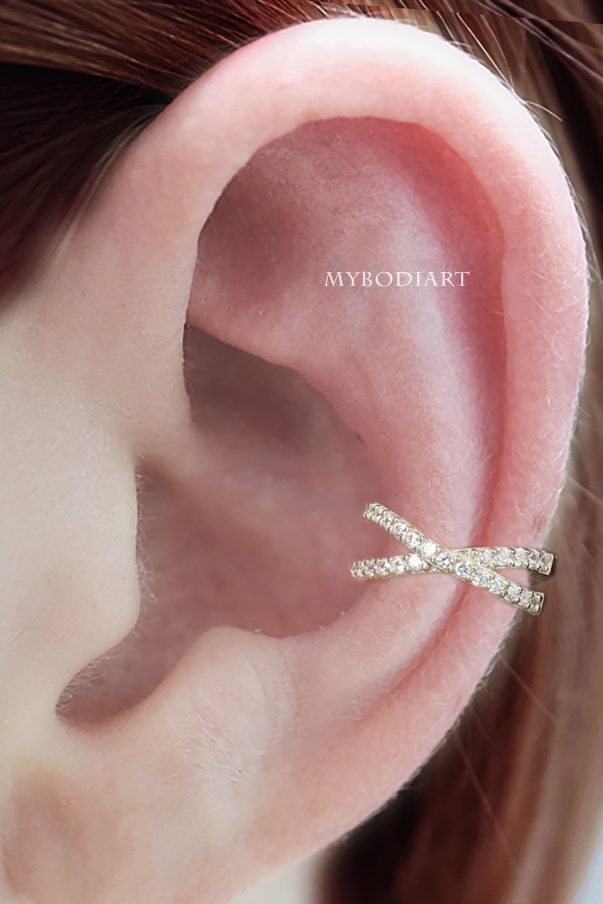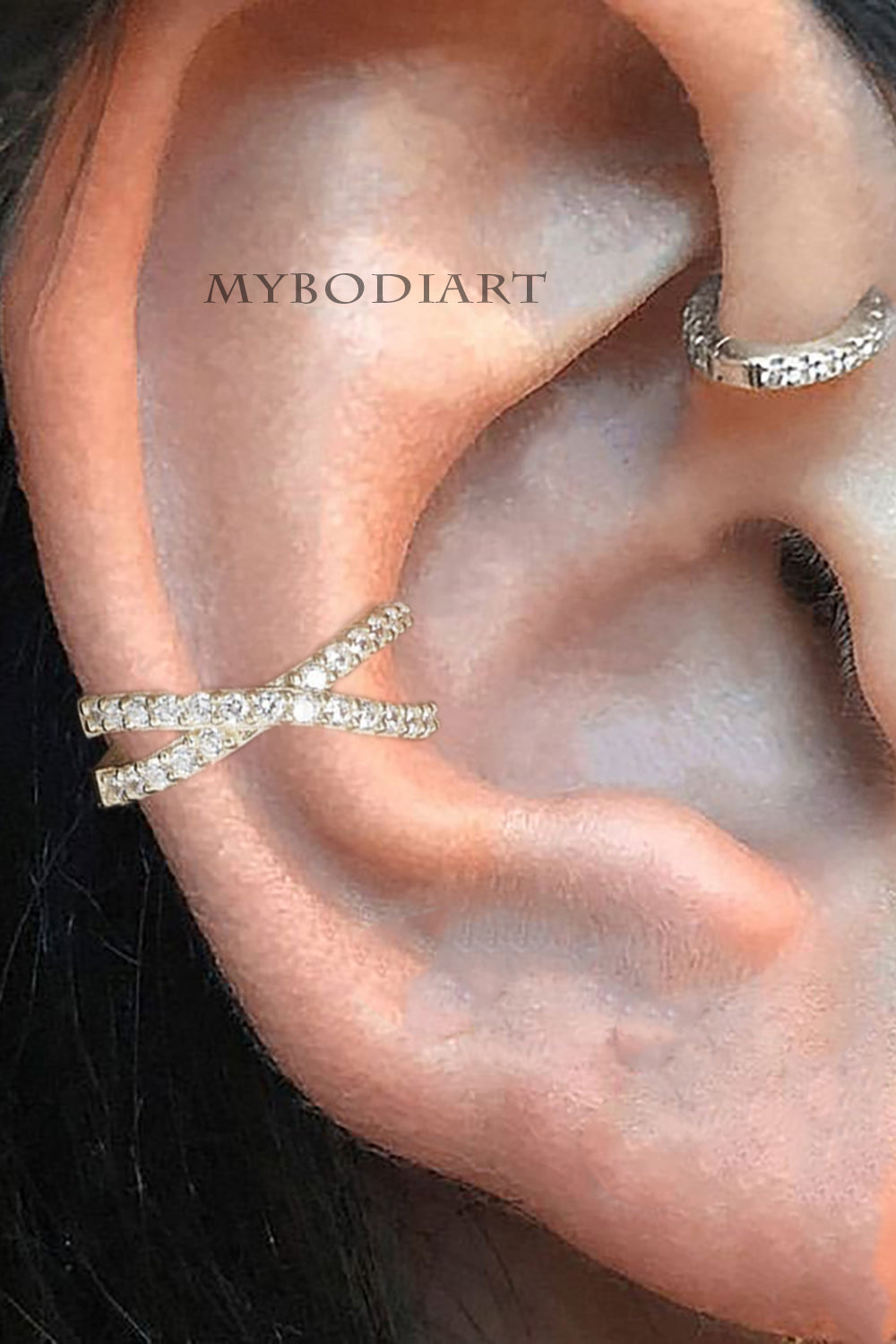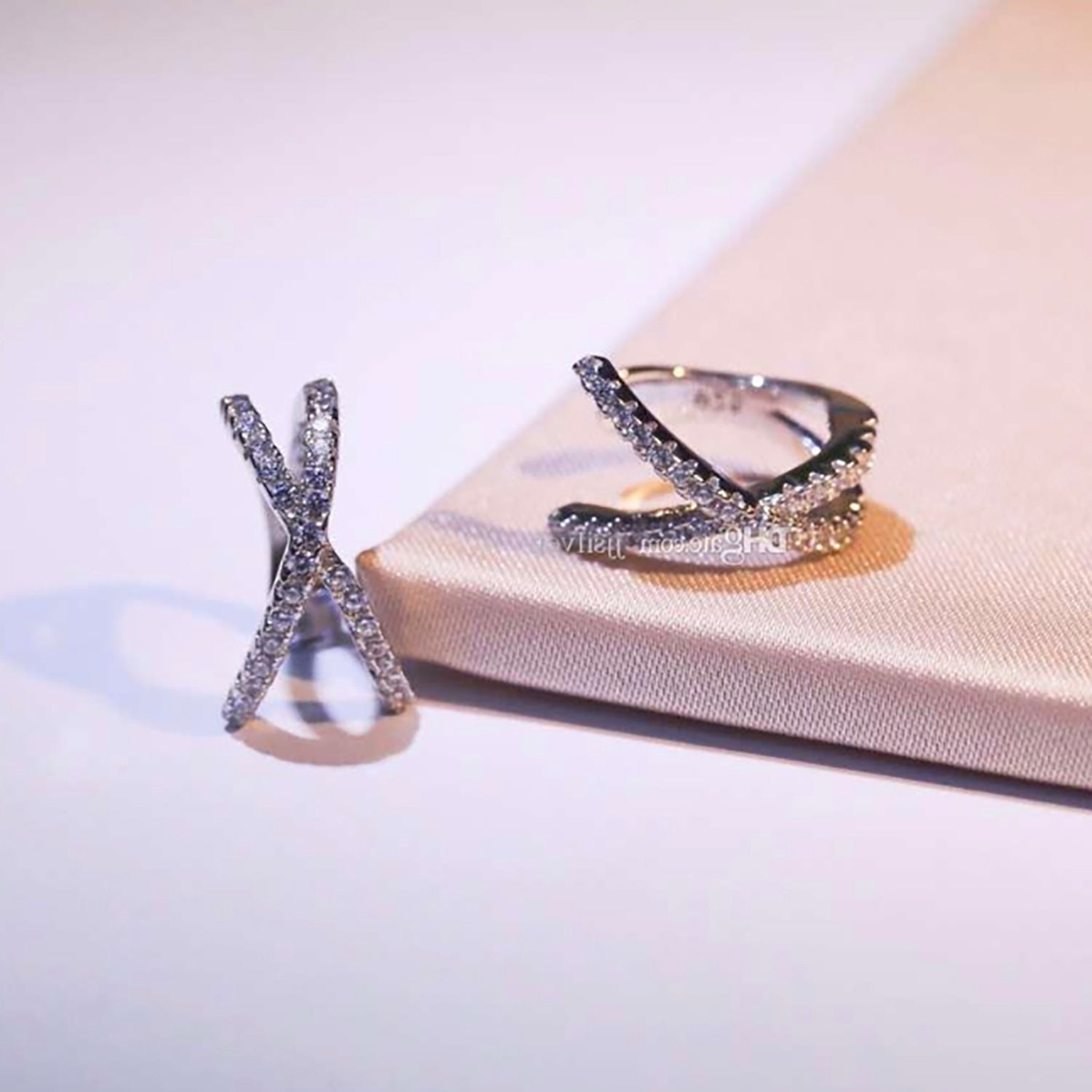 Bibi Crystal Criss Cross Silver Ear Cuff Earring