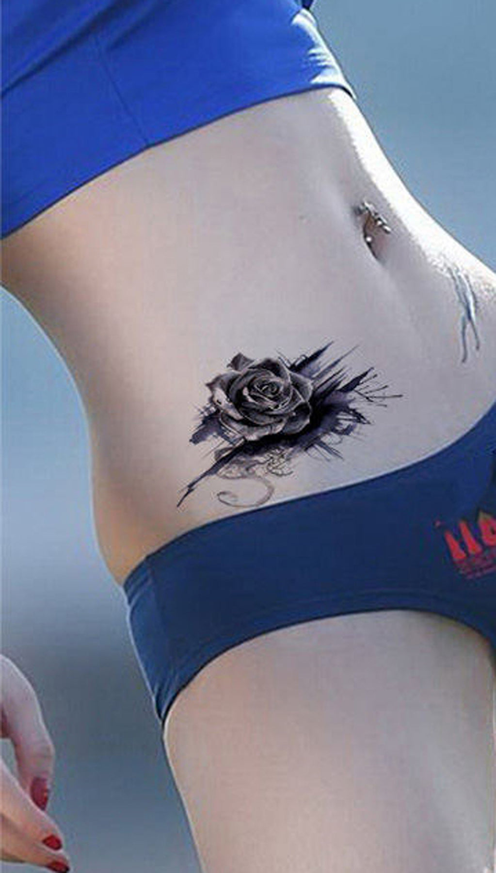 Brooke Cool Watercolor Splat Black Floral Rose Temporary Tattoo