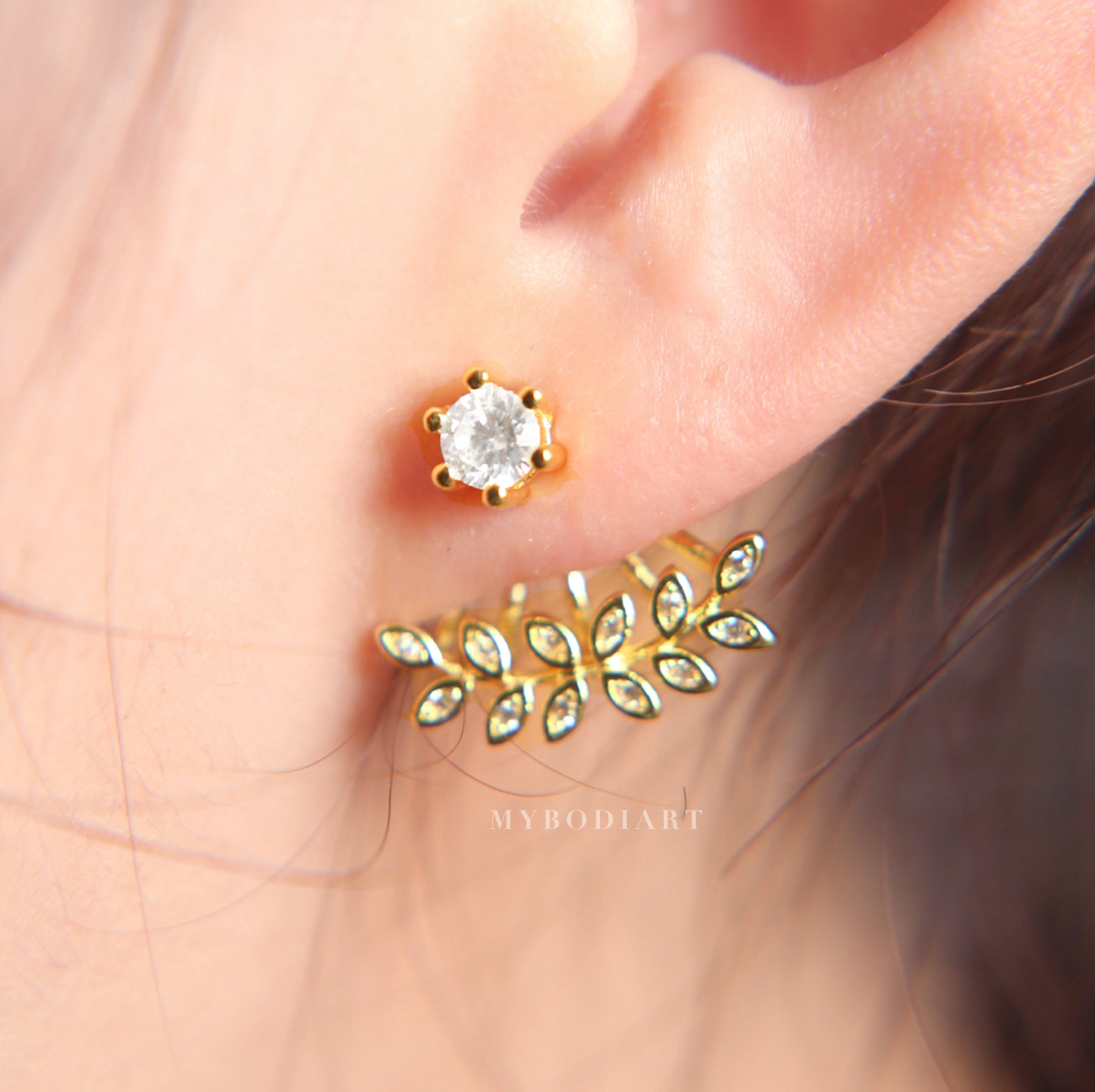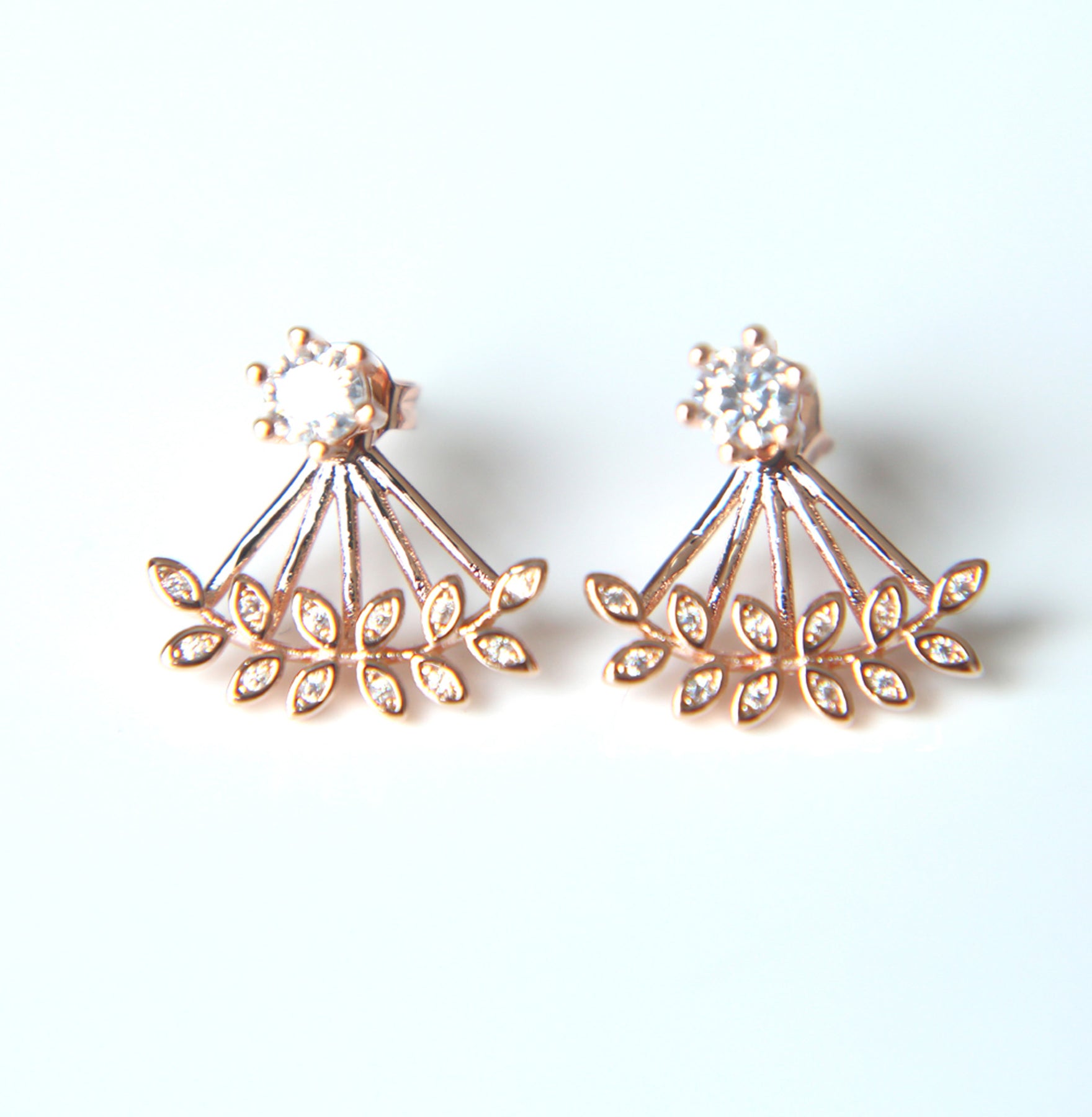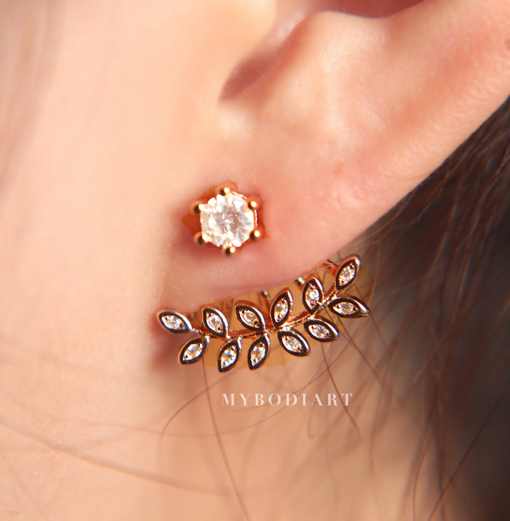 Capella Trendy Cubic Zirconia Crystal Leaf Ear Jacket Stud Earring