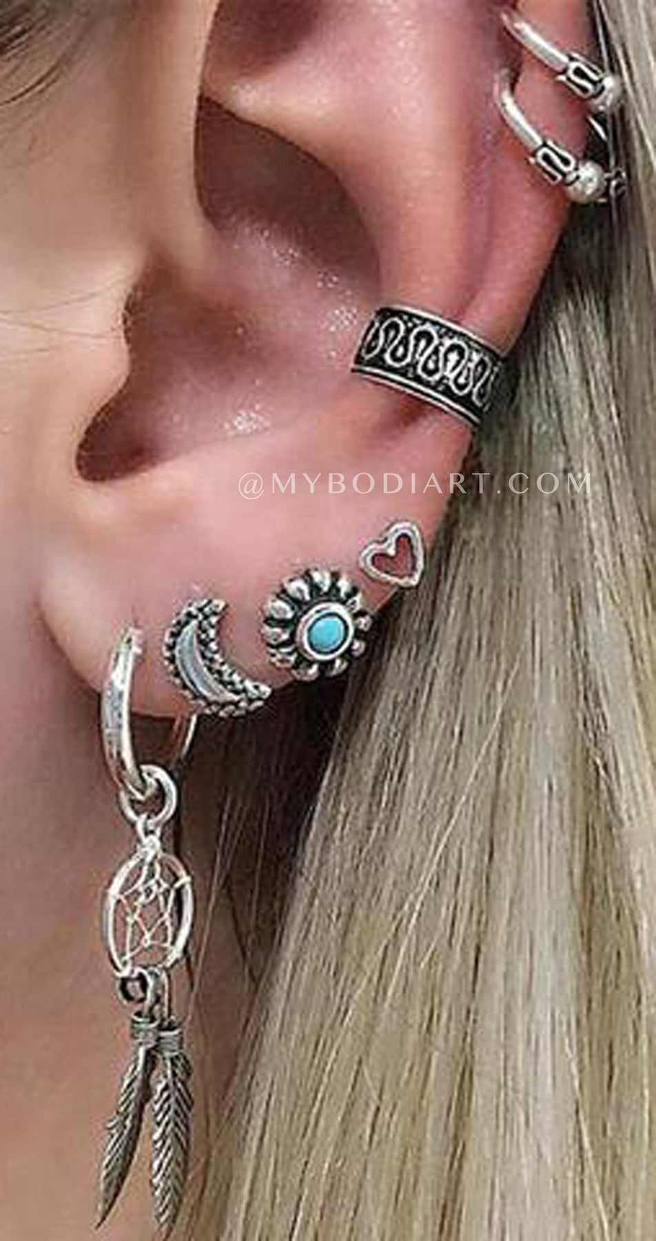 Product Type: 7 Pieces Earring Set (3 Ear Cuffs & 4 Earrings)