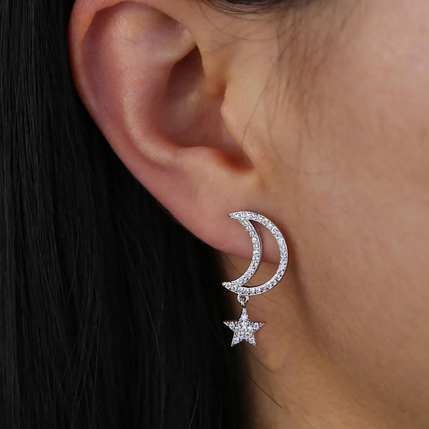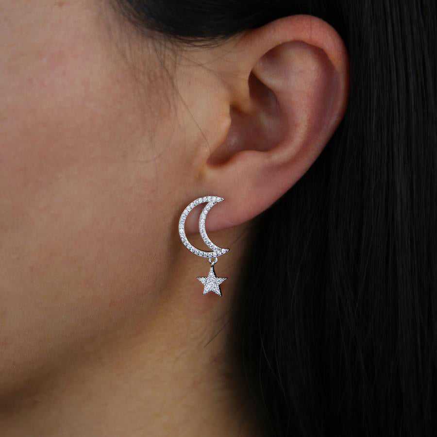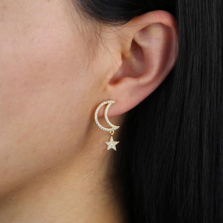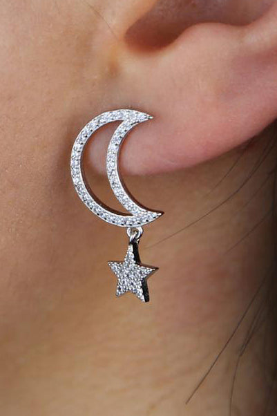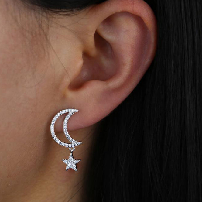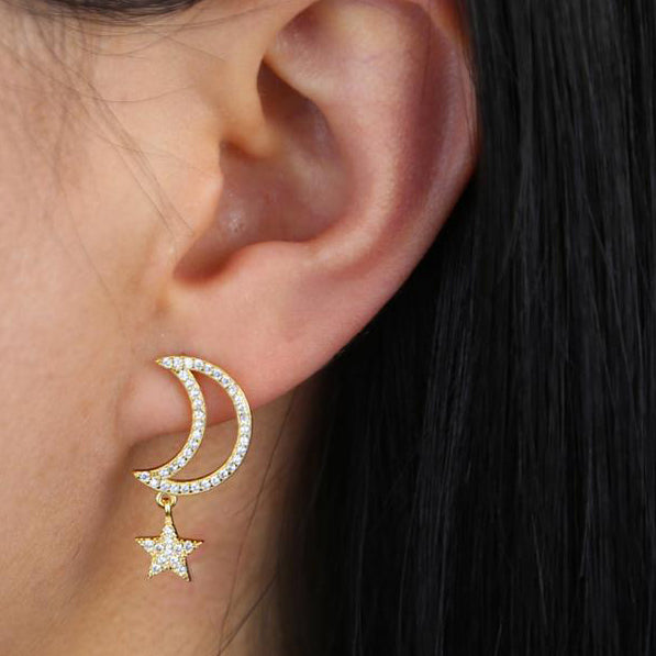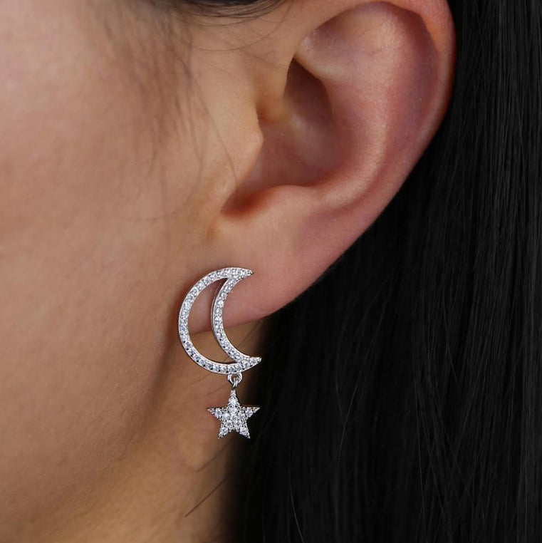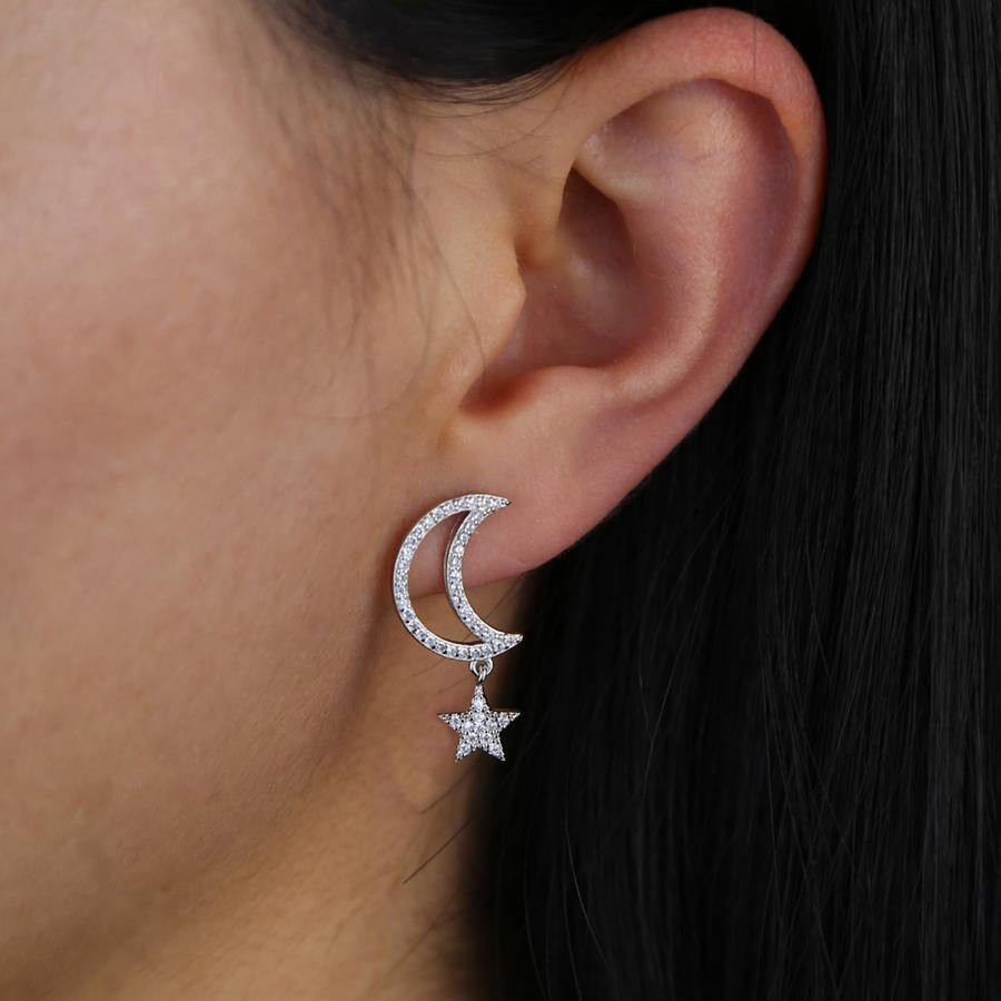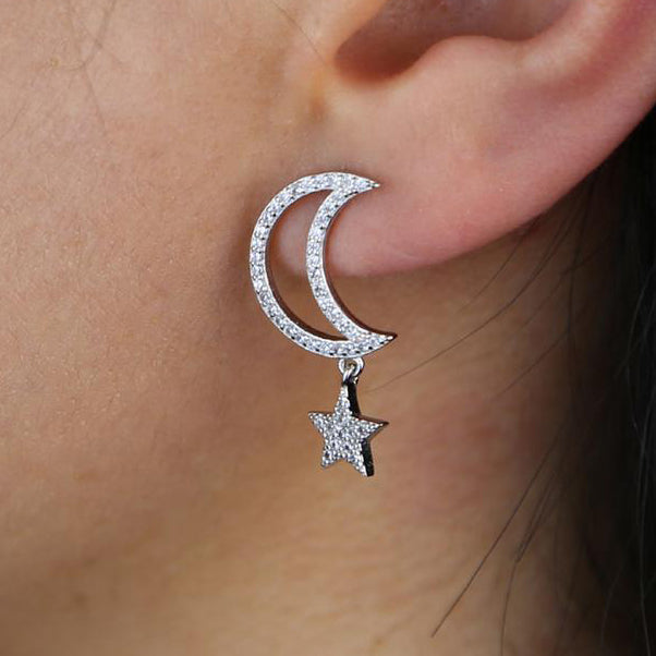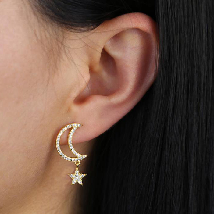 Chara Unique Cute Crystal Celestial Moon Star Dangle Earring Studs