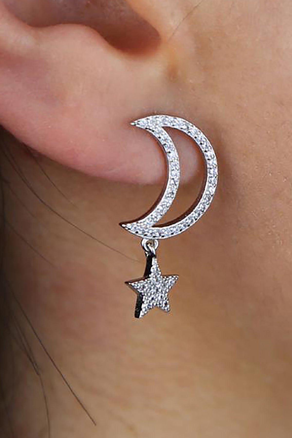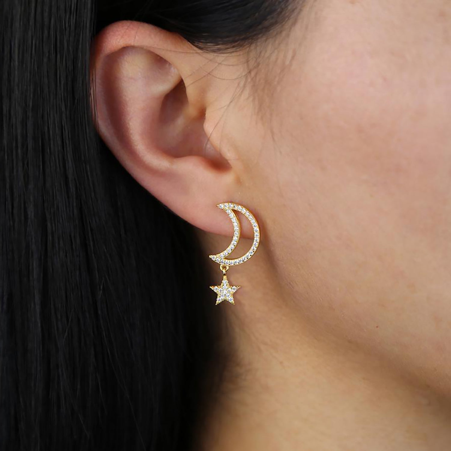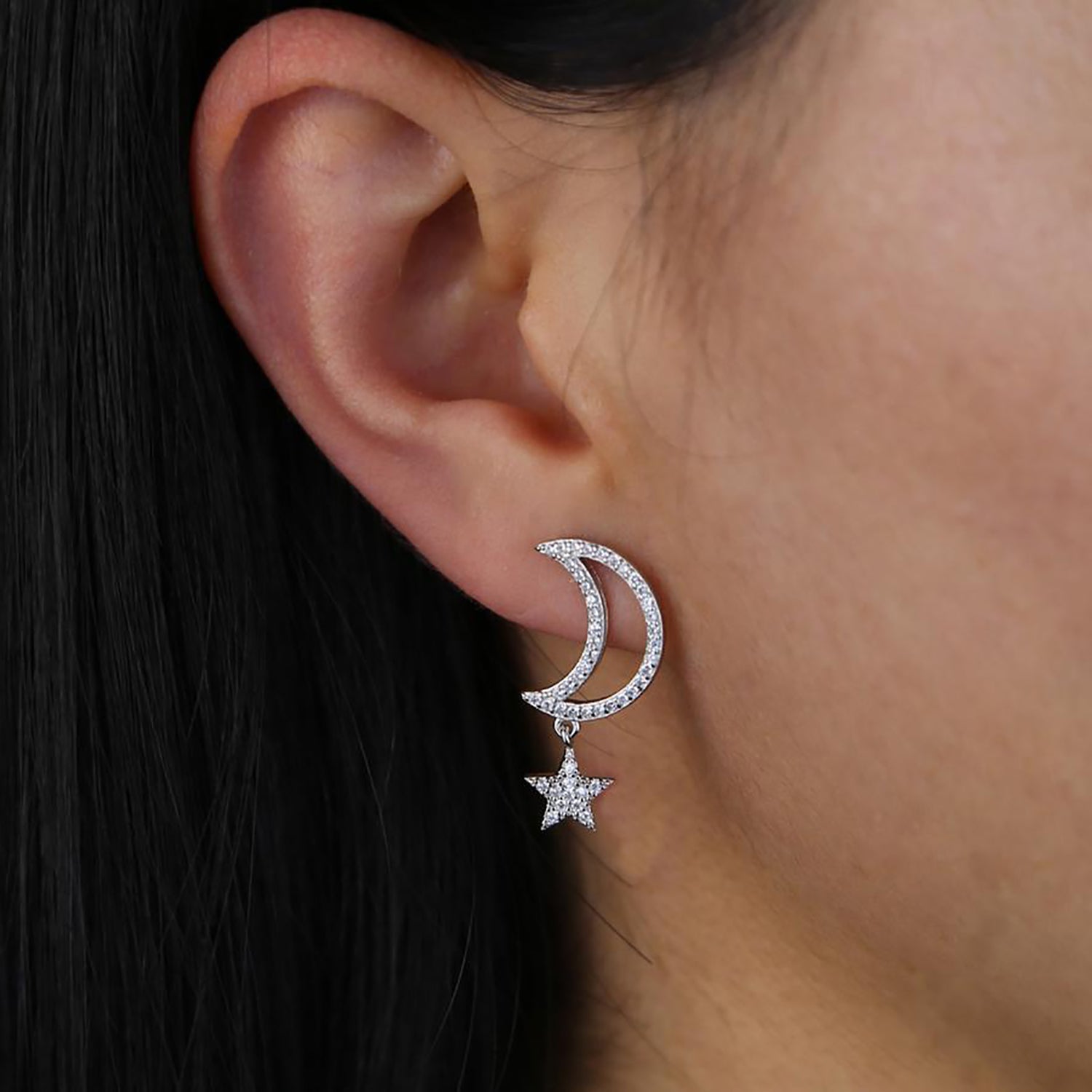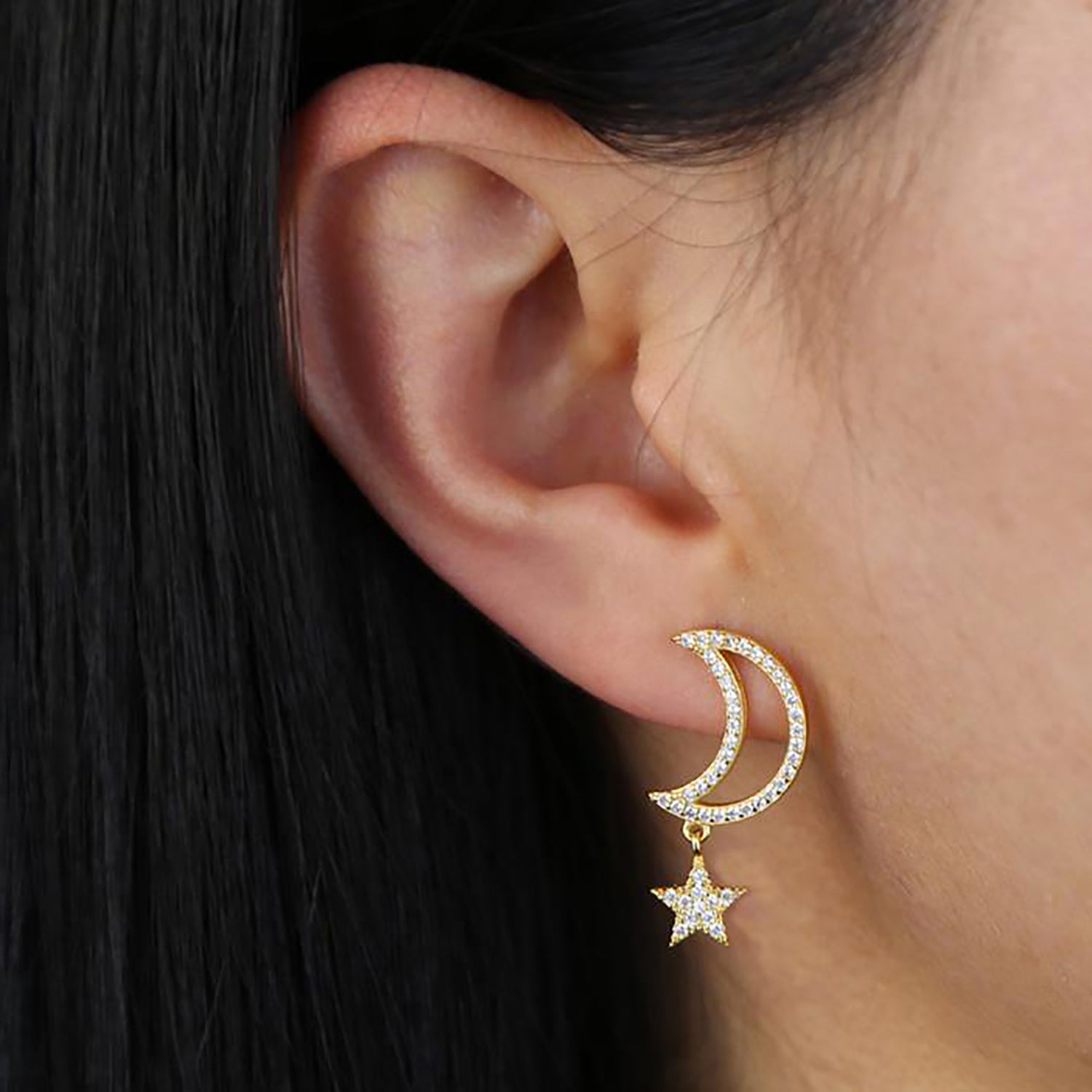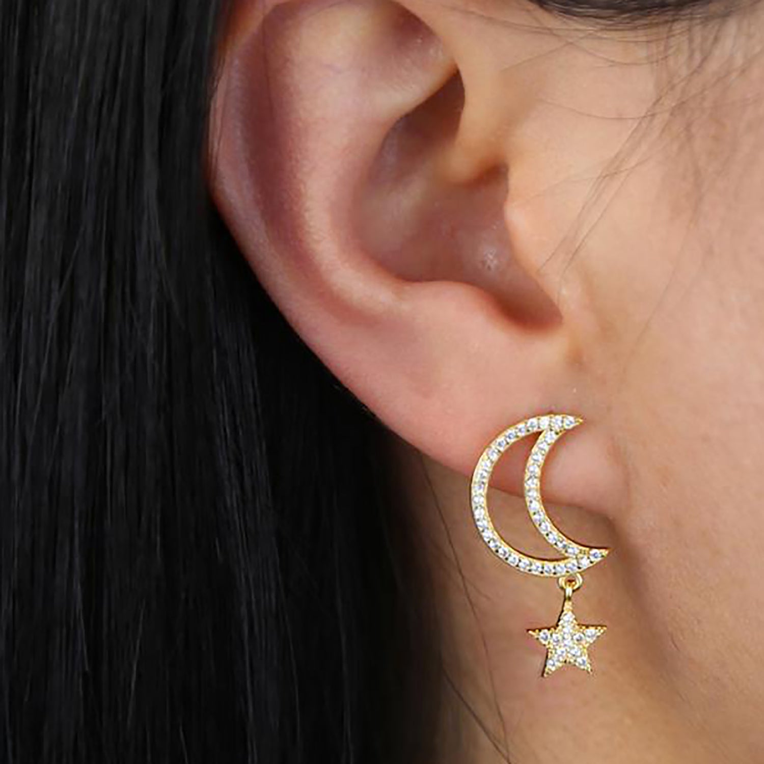 Chara Unique Cute Crystal Celestial Moon Star Dangle Earring Studs