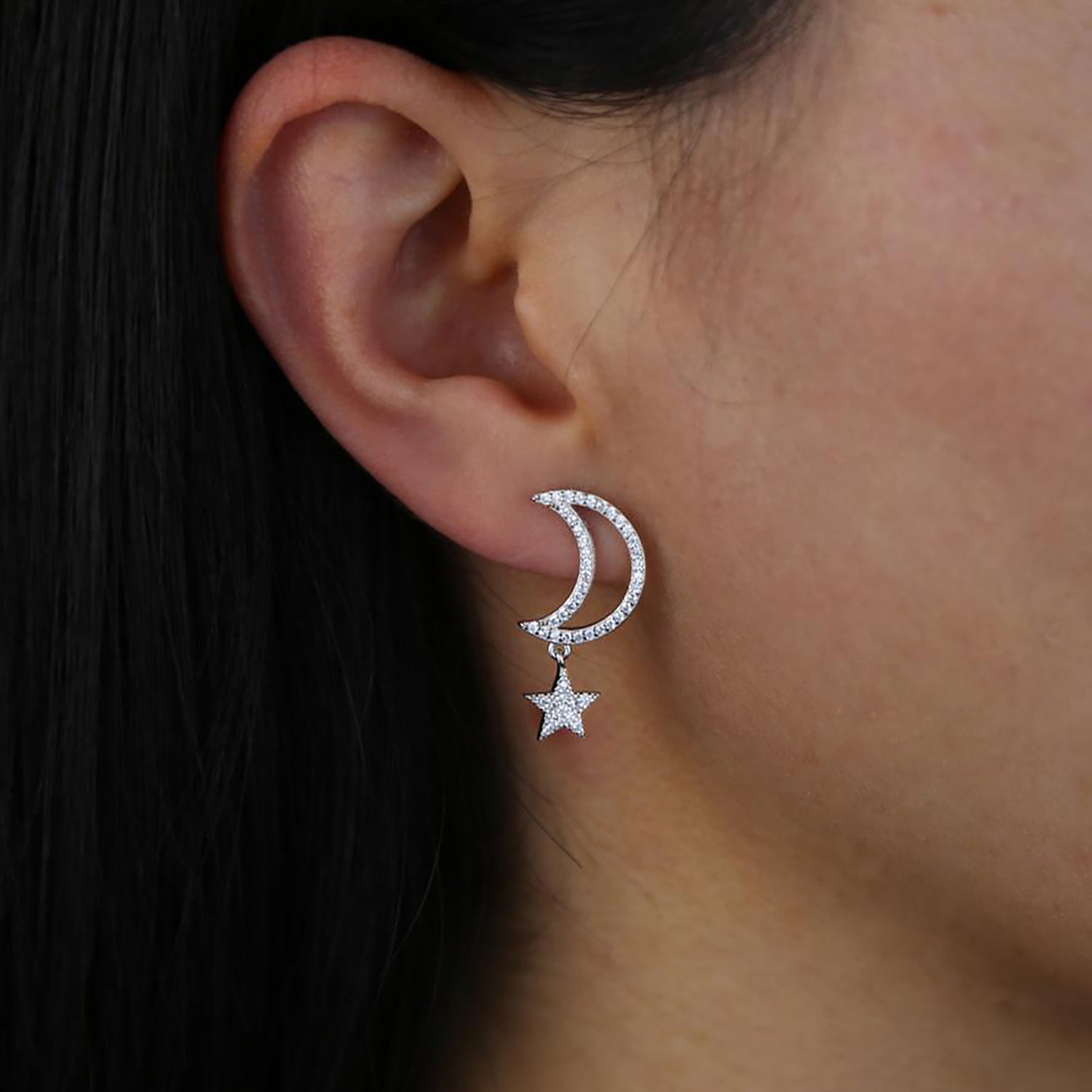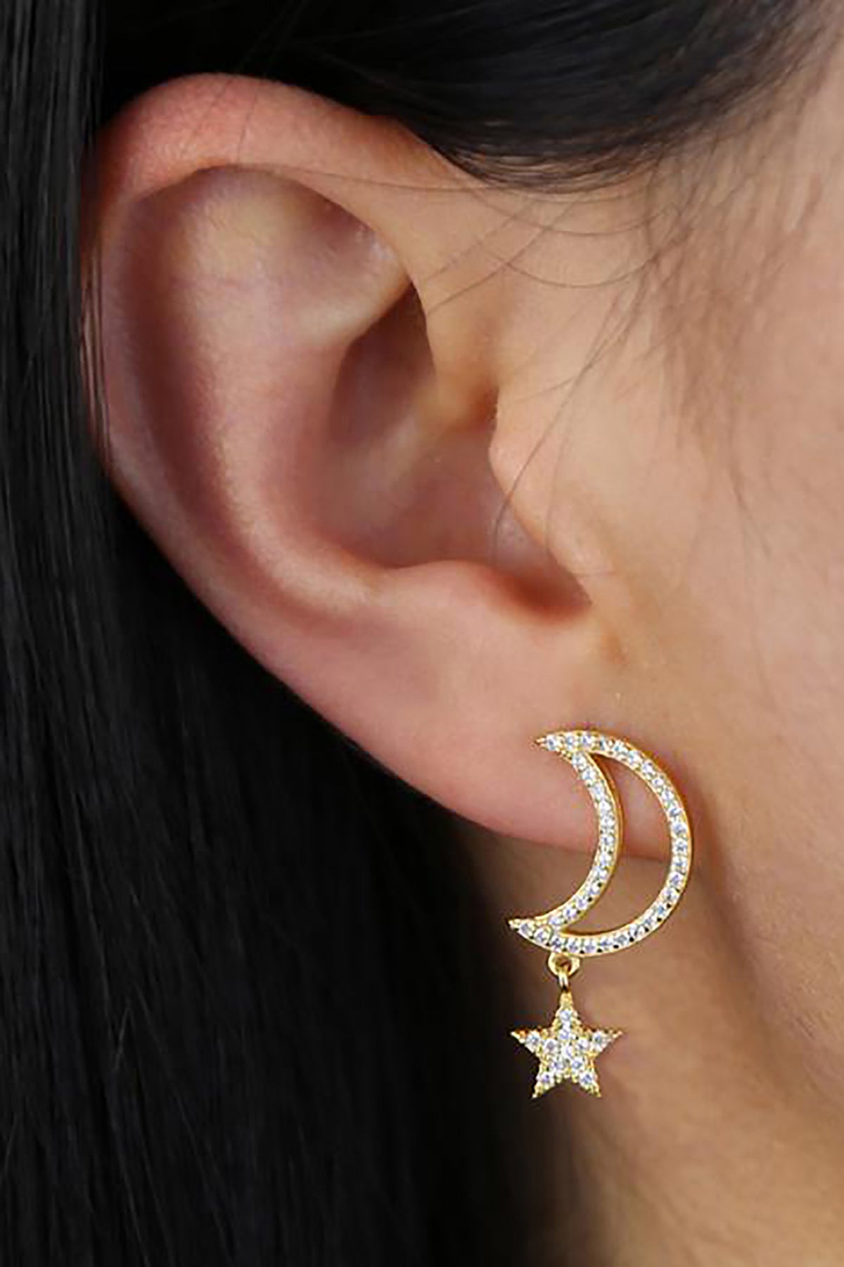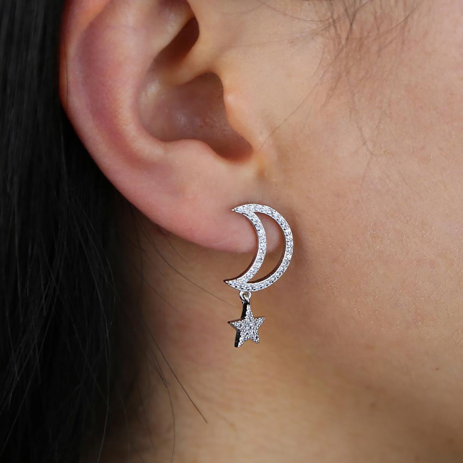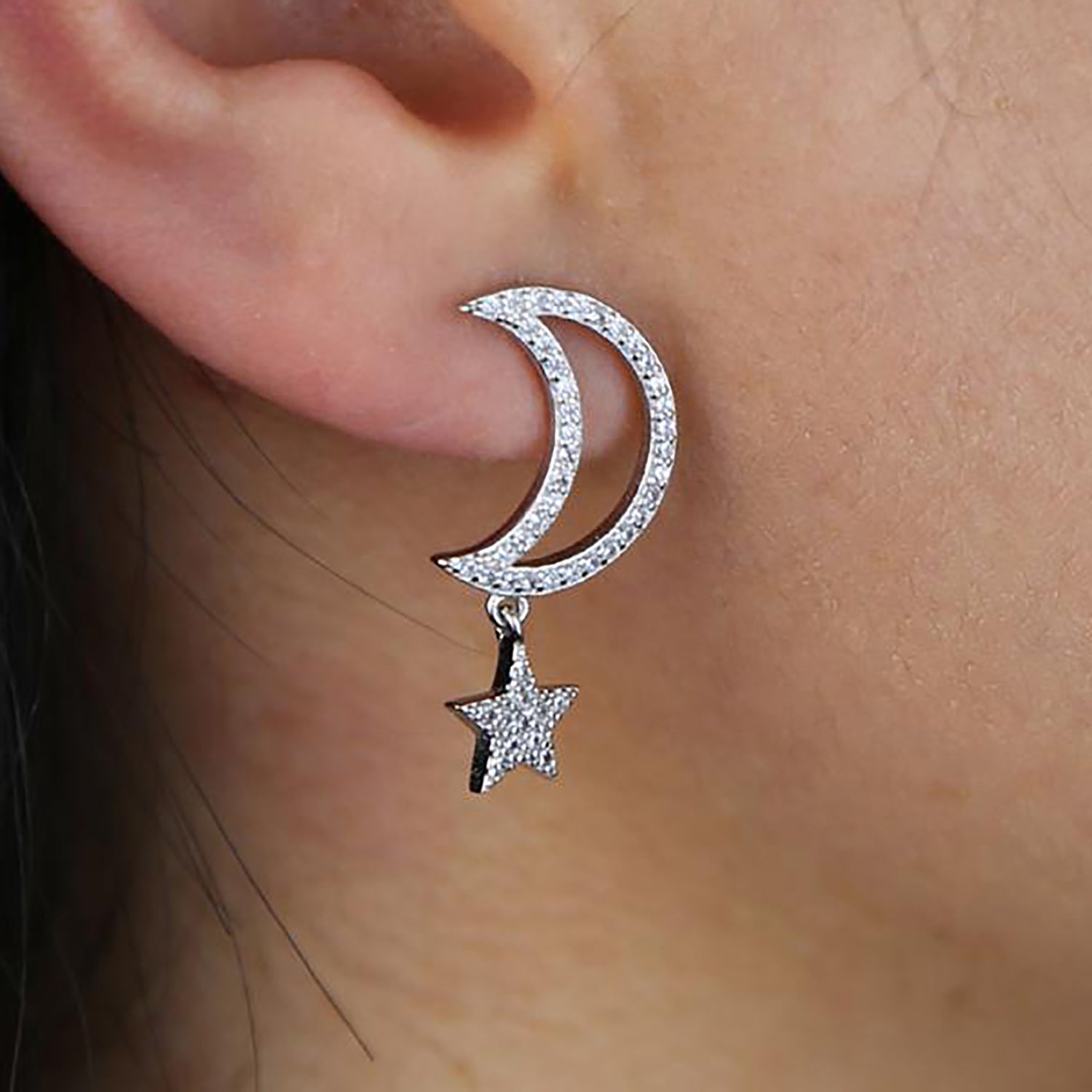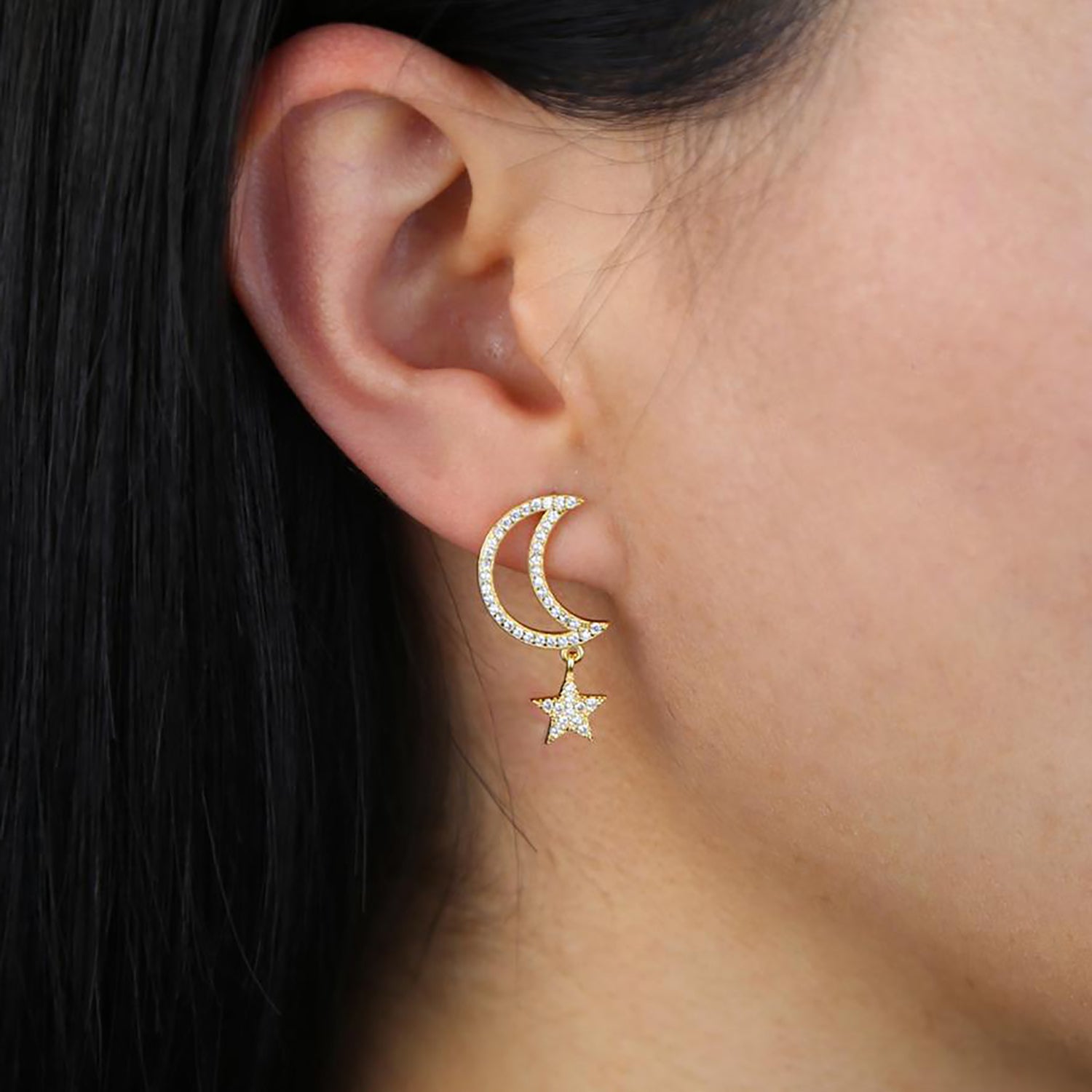 Chara Unique Cute Crystal Celestial Moon Star Dangle Earring Studs