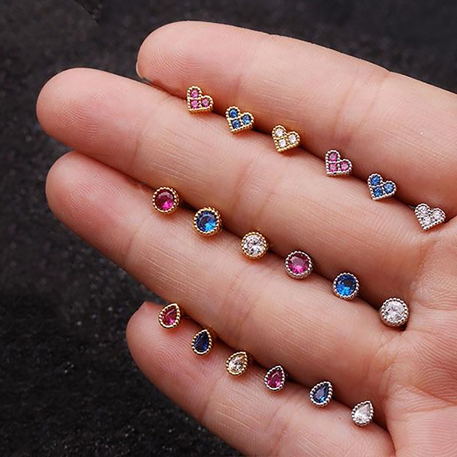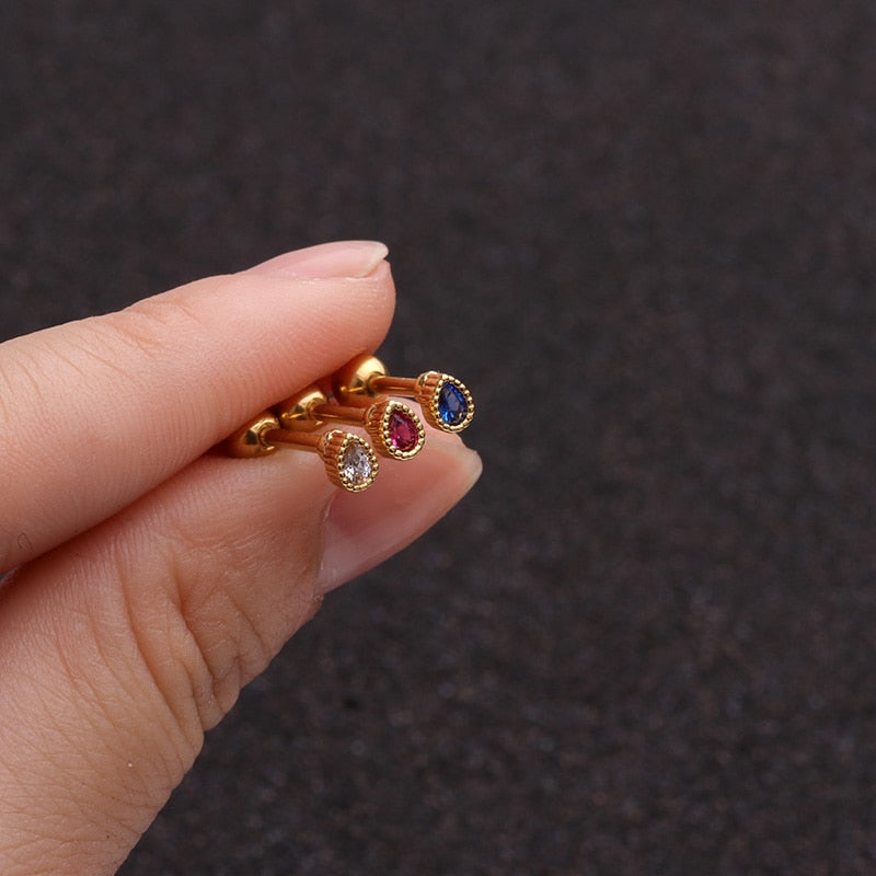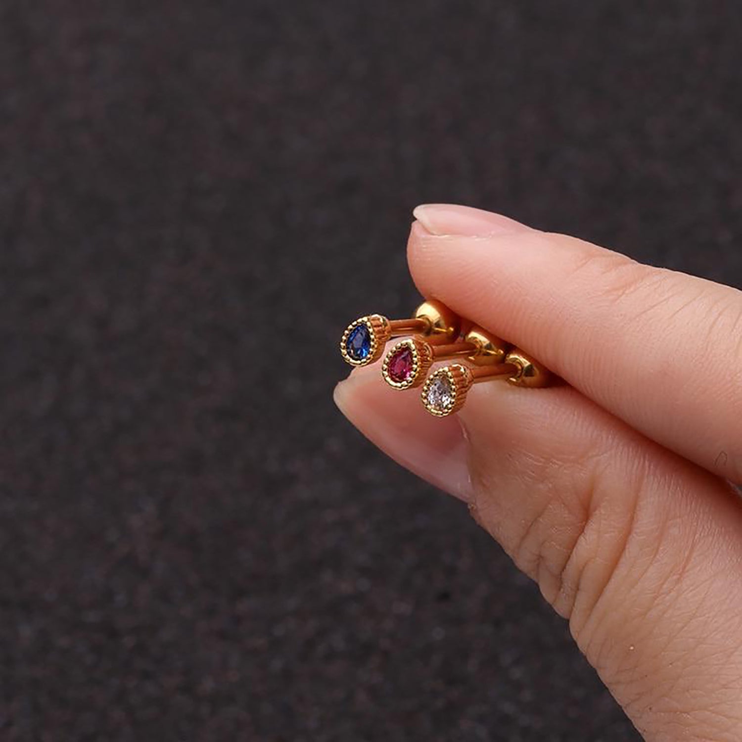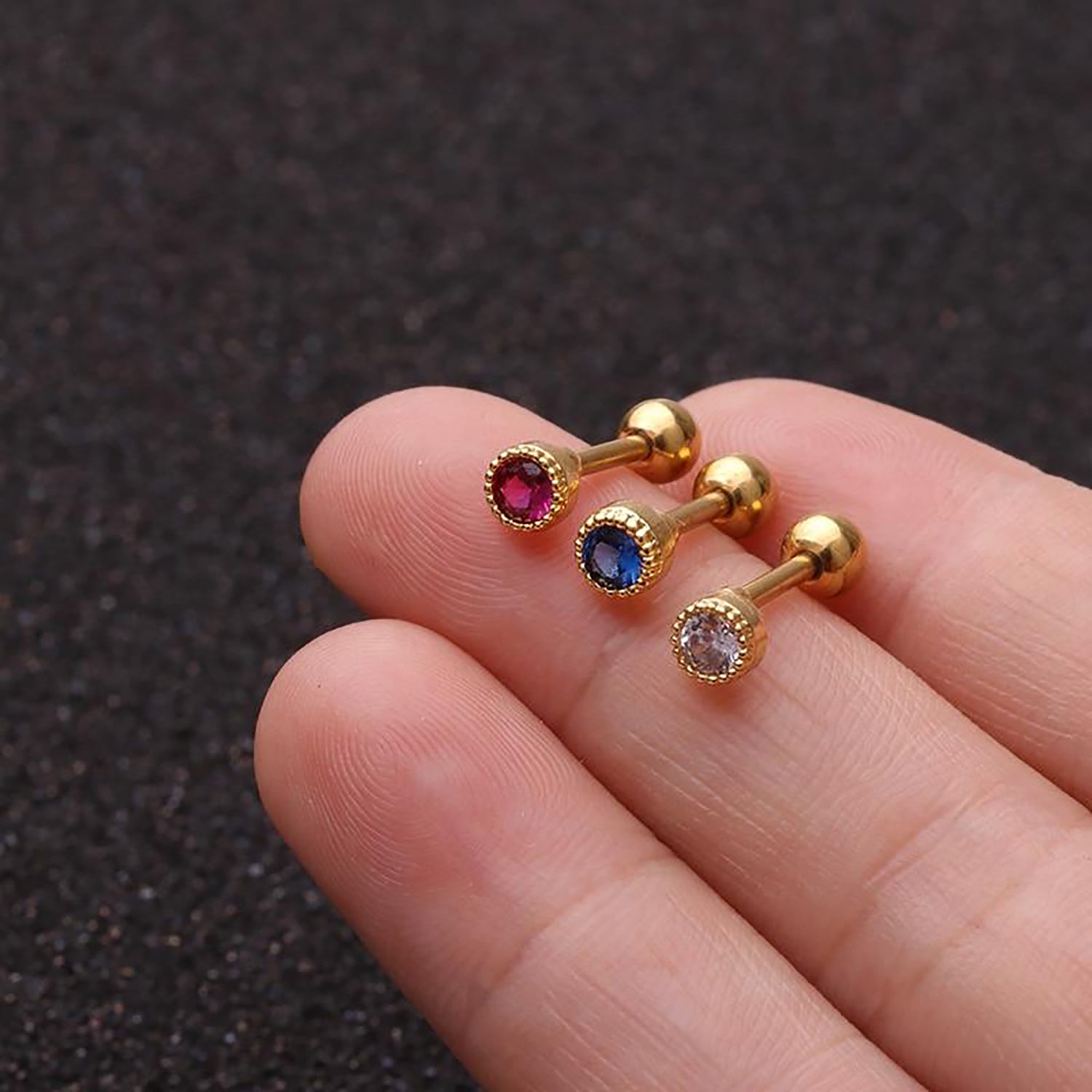 Ciel Cute Small Colorful Crystal Gold Ear Piercing Jewelry Earring Stud Barbell 16G