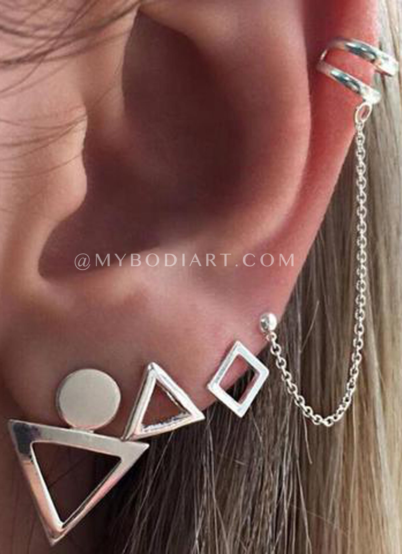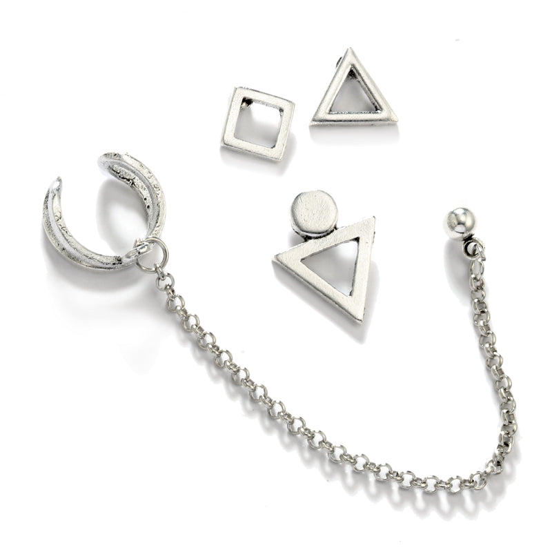 Triangle Geometric Square Earring Set Piercing Cartilage Ear Cuff Chain Minimal