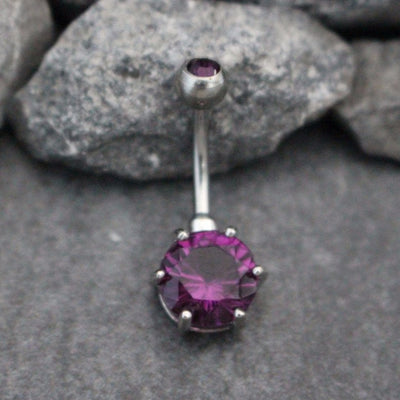 Ultra Shine Purple Gem Crystal Belly Button Ring Stud in Silver