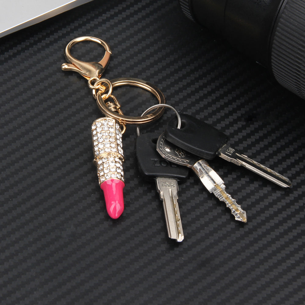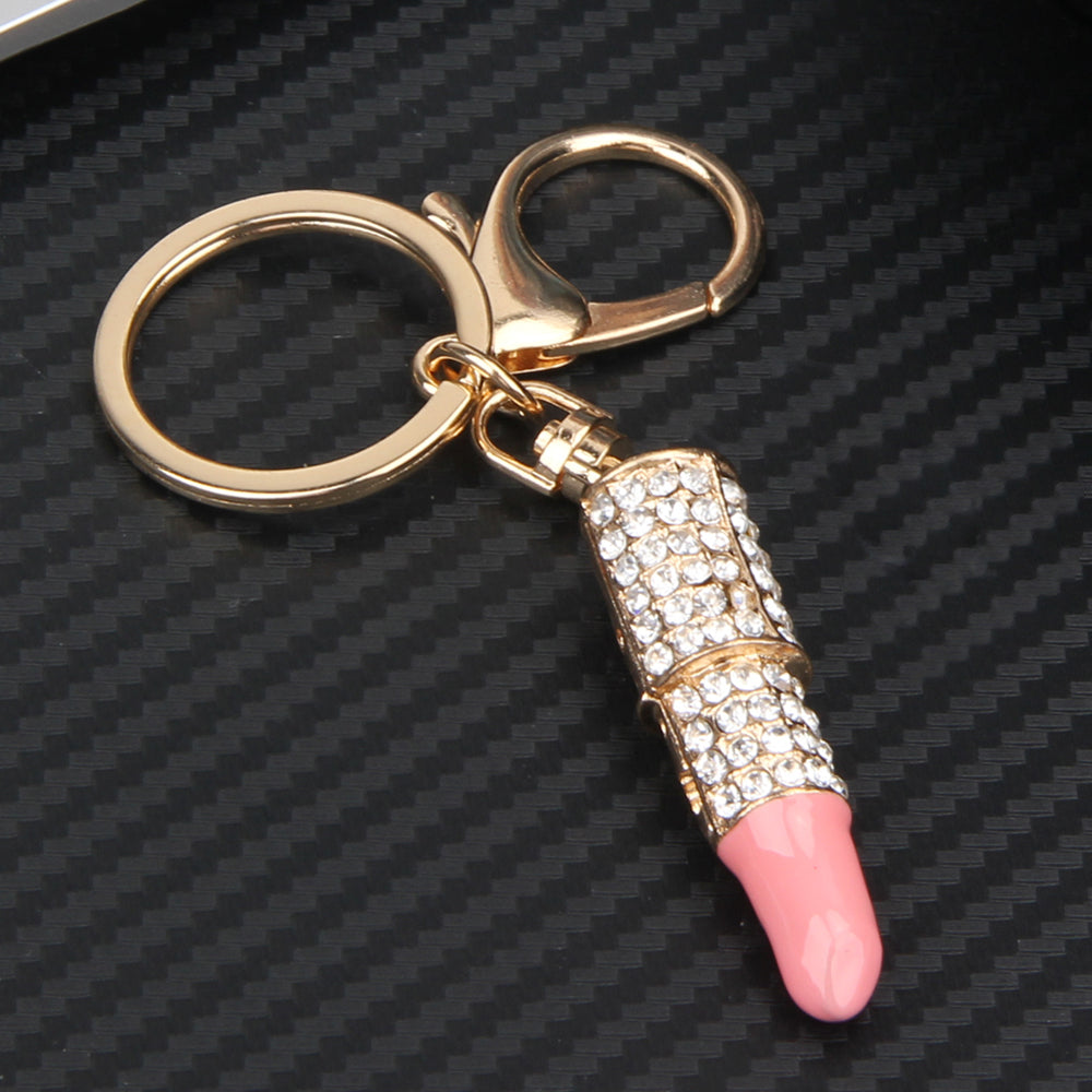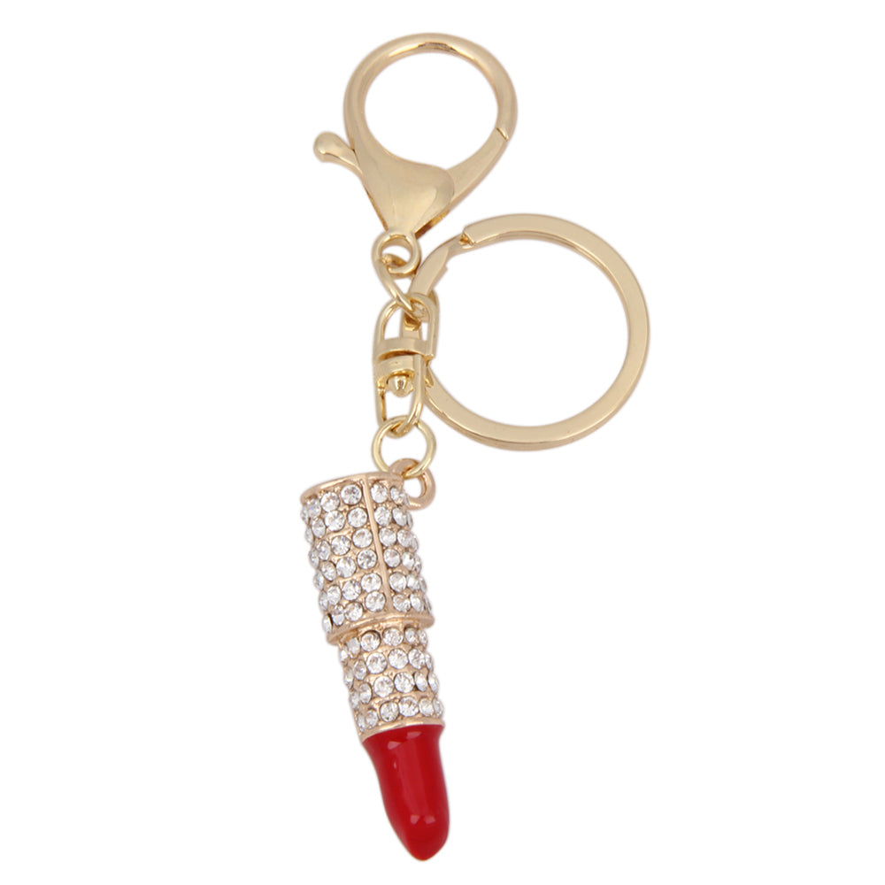 Cute Crystal Lipstick Makeup Charm Keychain Keyring Key Fob Fashion Accessories Jewelry for Purse Bag - www.MyBodiArt.com