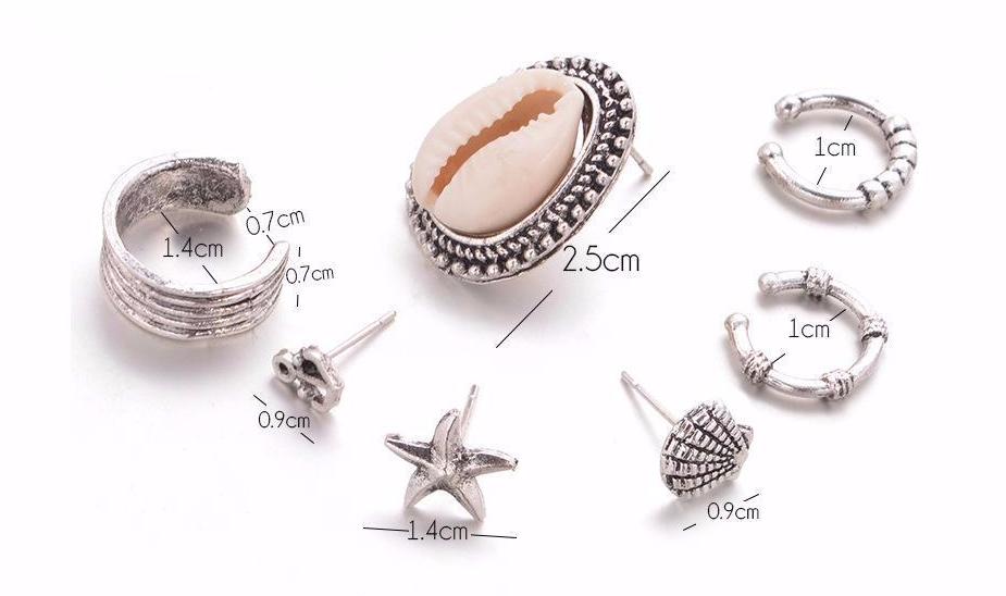 Product Type: 7 Pieces Earring Set (3 Ear Cuffs & 4 Stud Earrings)