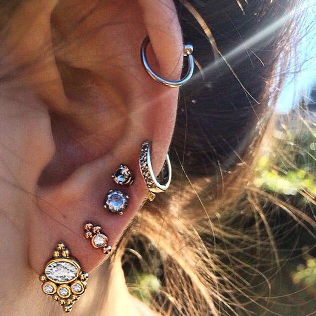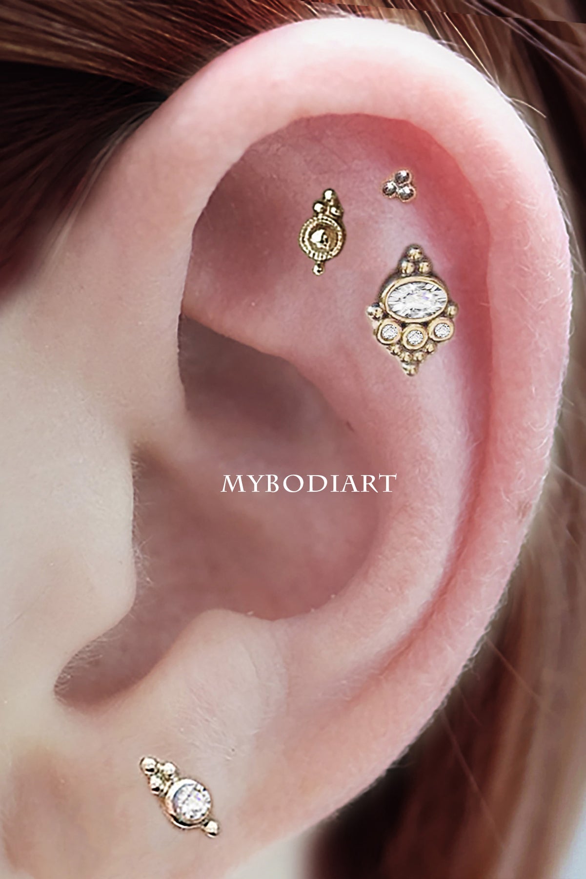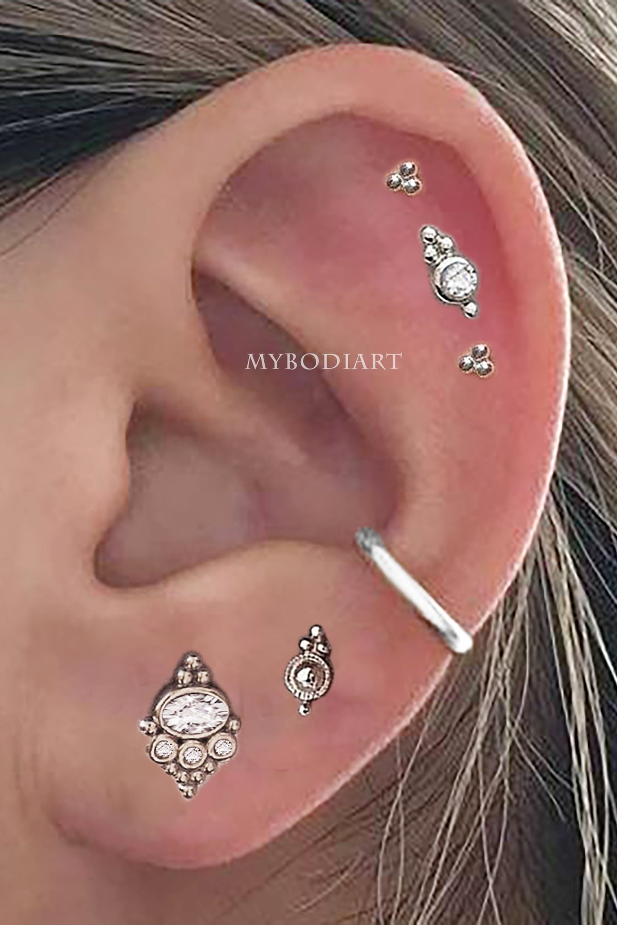 Elowen Tribal Boho Ball Crystal Ear Piercing Jewelry Earring Stud 16G