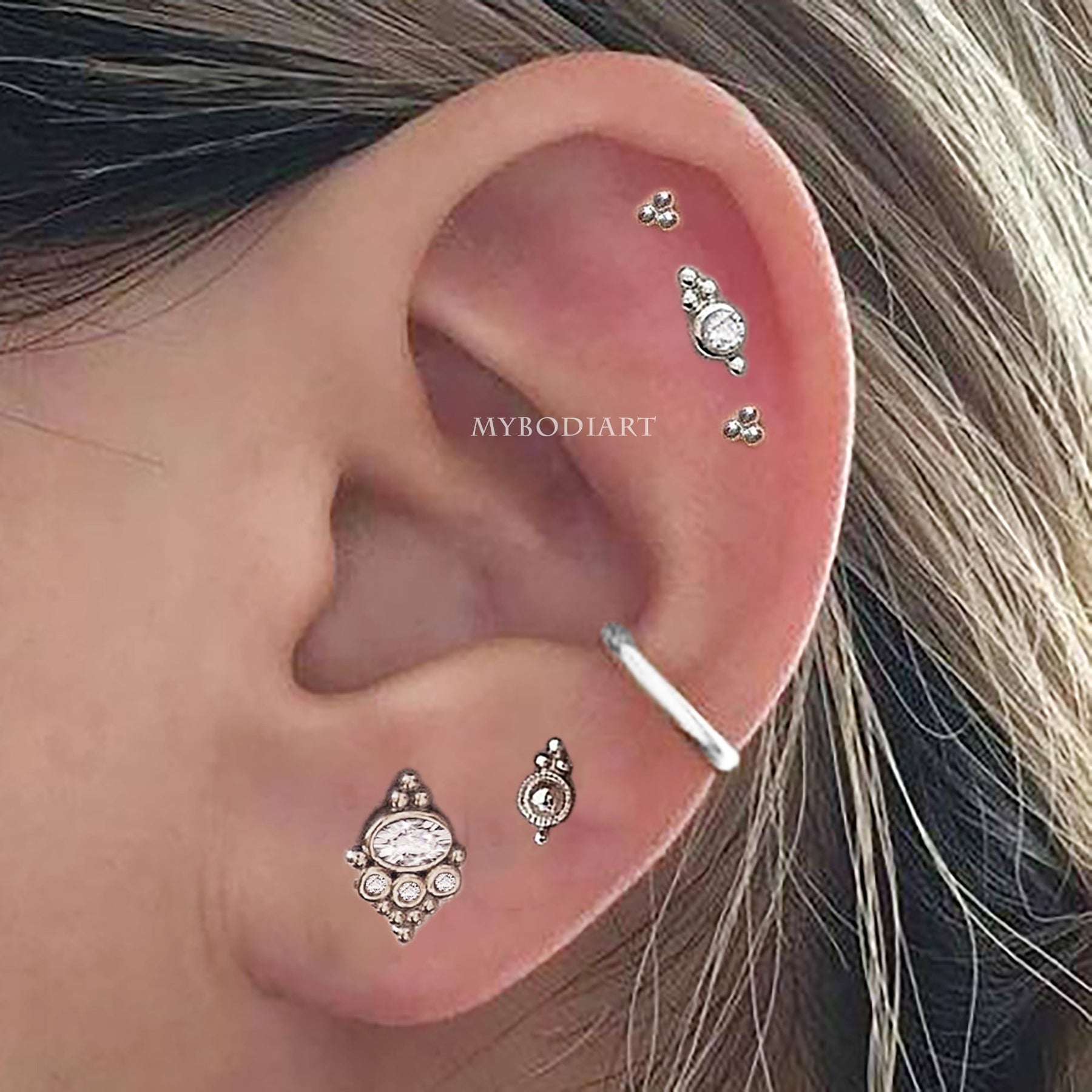 Elowen Tribal Boho Ball Ear Piercing Jewelry Earring Stud 16G