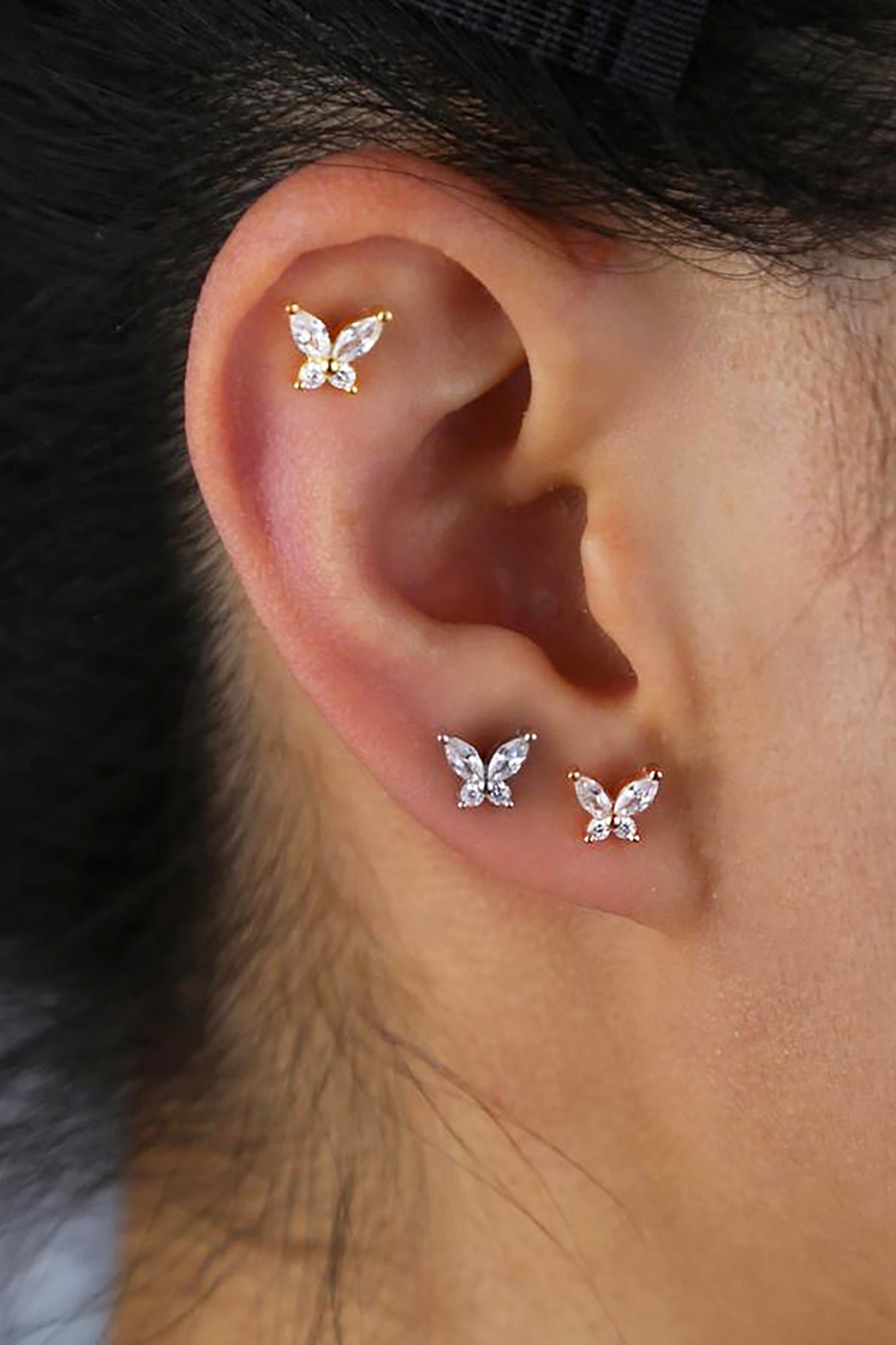 Elsie Cute Crystal Butterfly Ear Piercing Jewelry Earring Studs