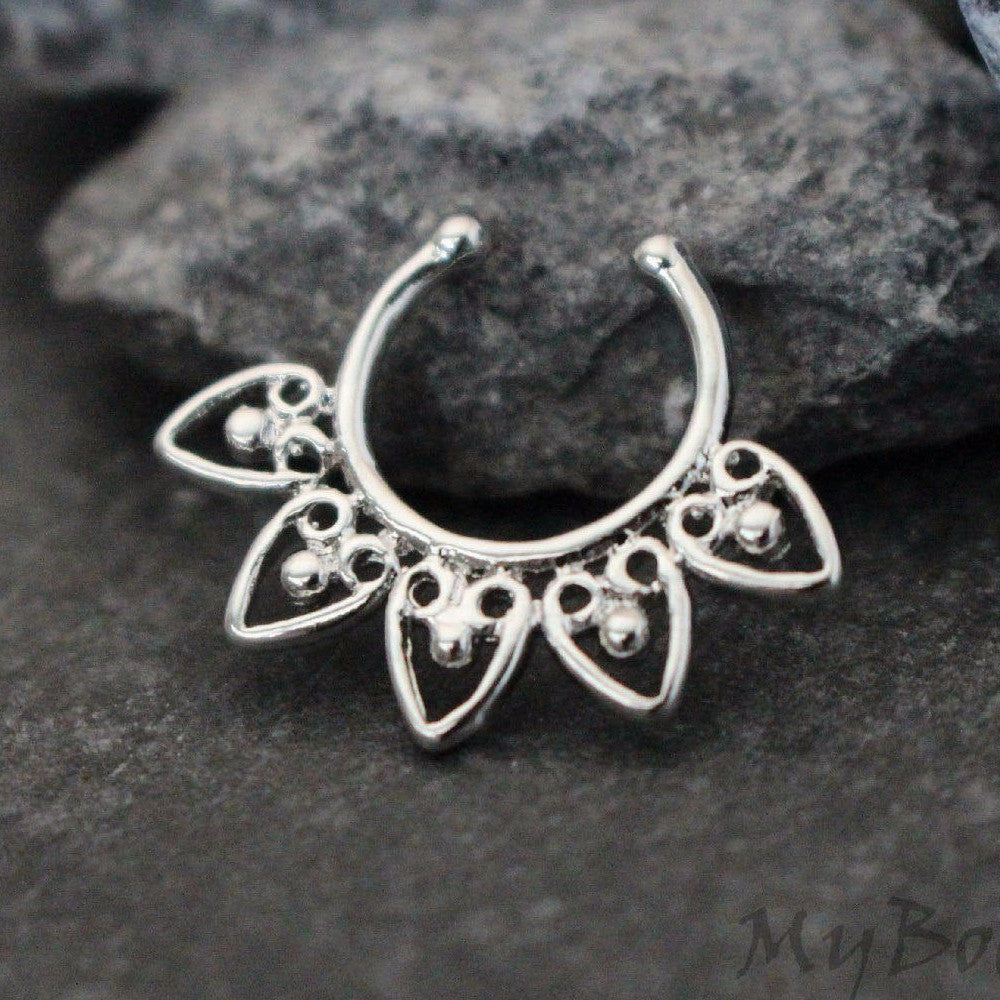 5 Leaf Tribal Fake Septum Ring - Sparkle your way into style this summer with this alluring septum ring ! Hand crafted with only the finest materials, this septum ring will be sure to turn heads!