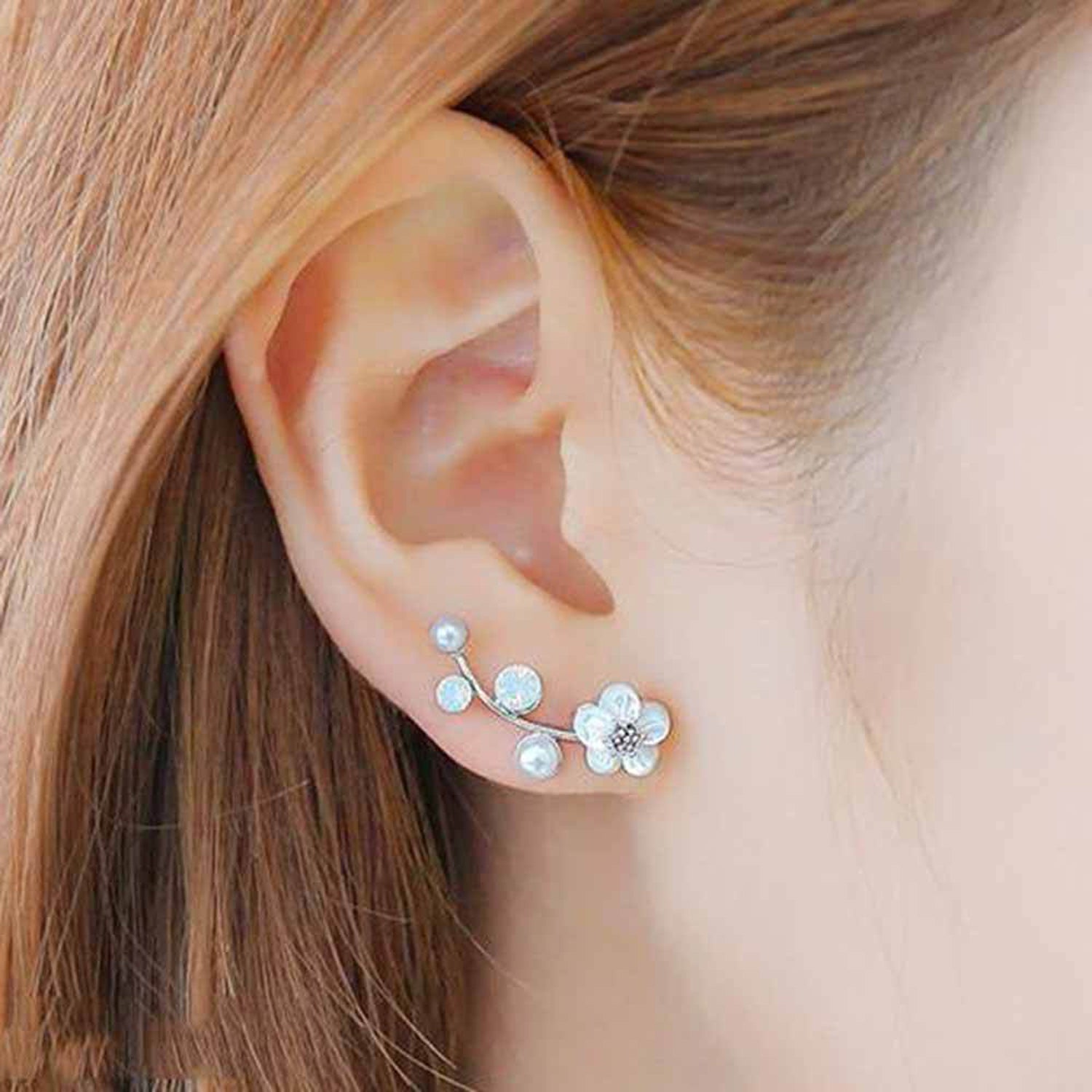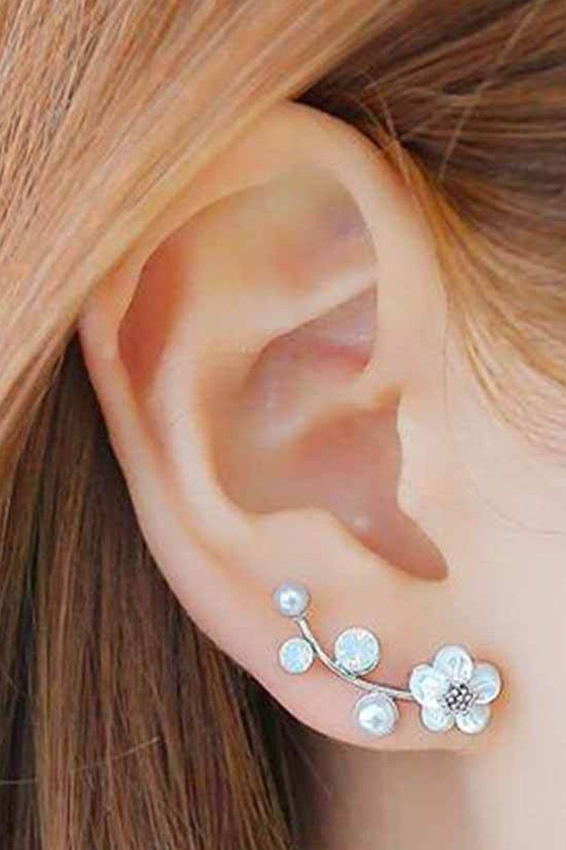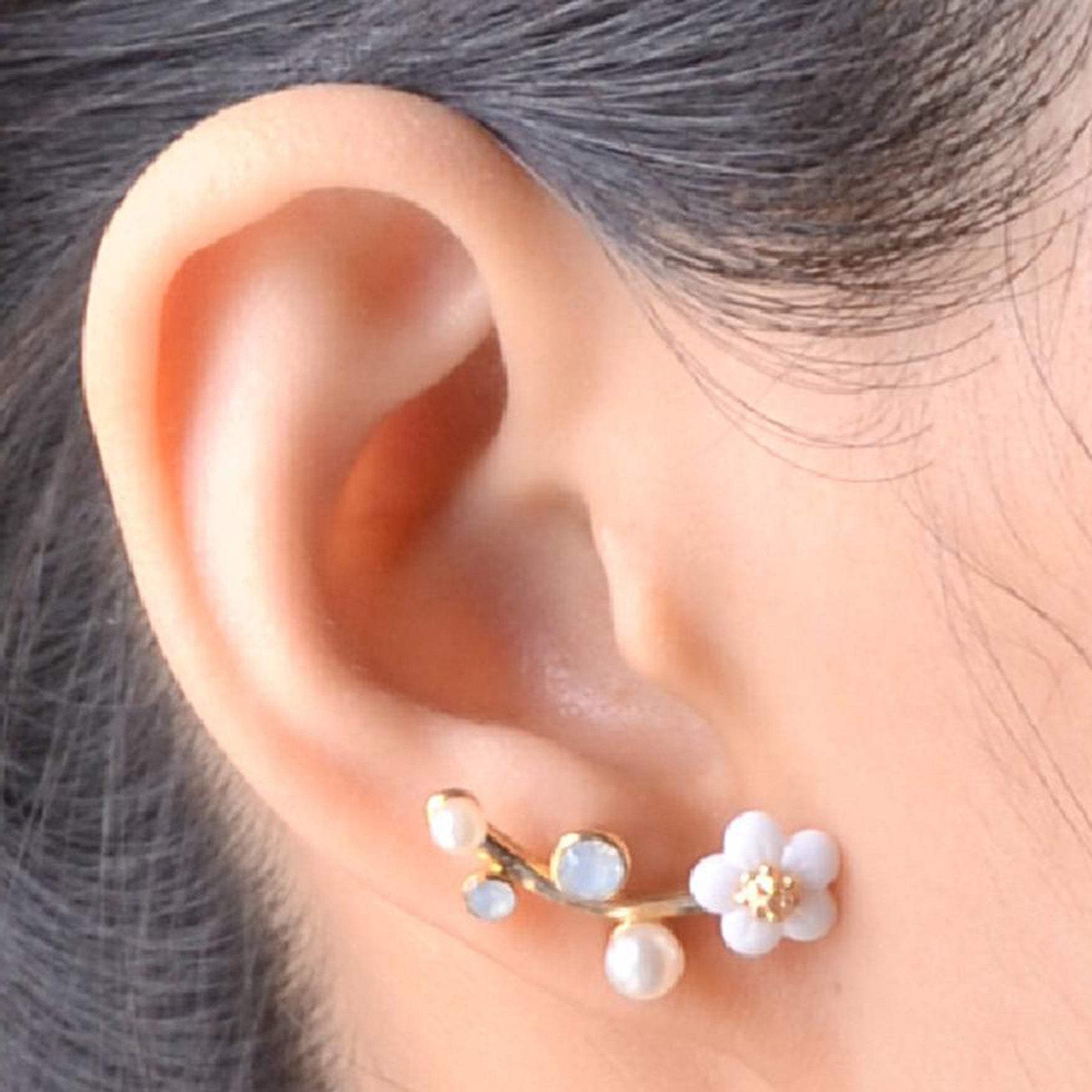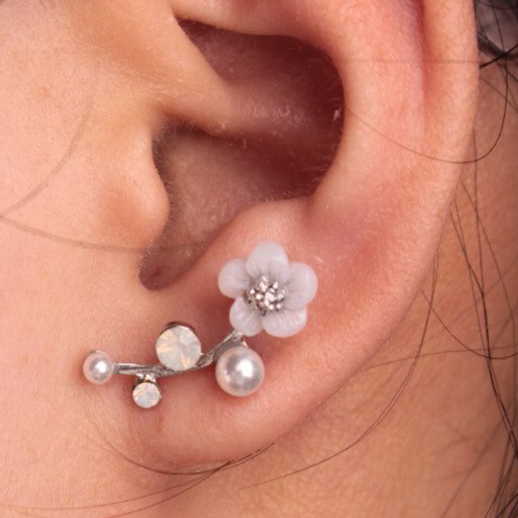 Flores White Flower Pearl Ear Climber Crawler Earring