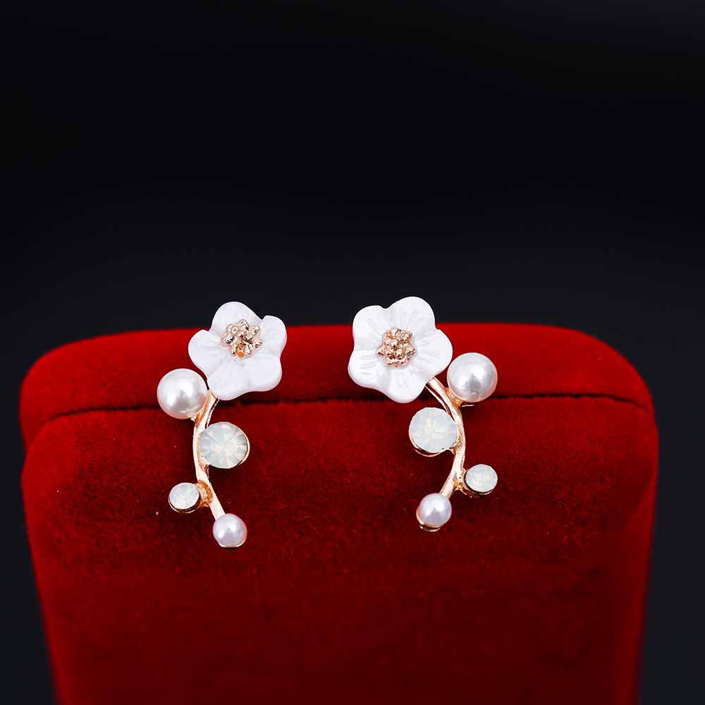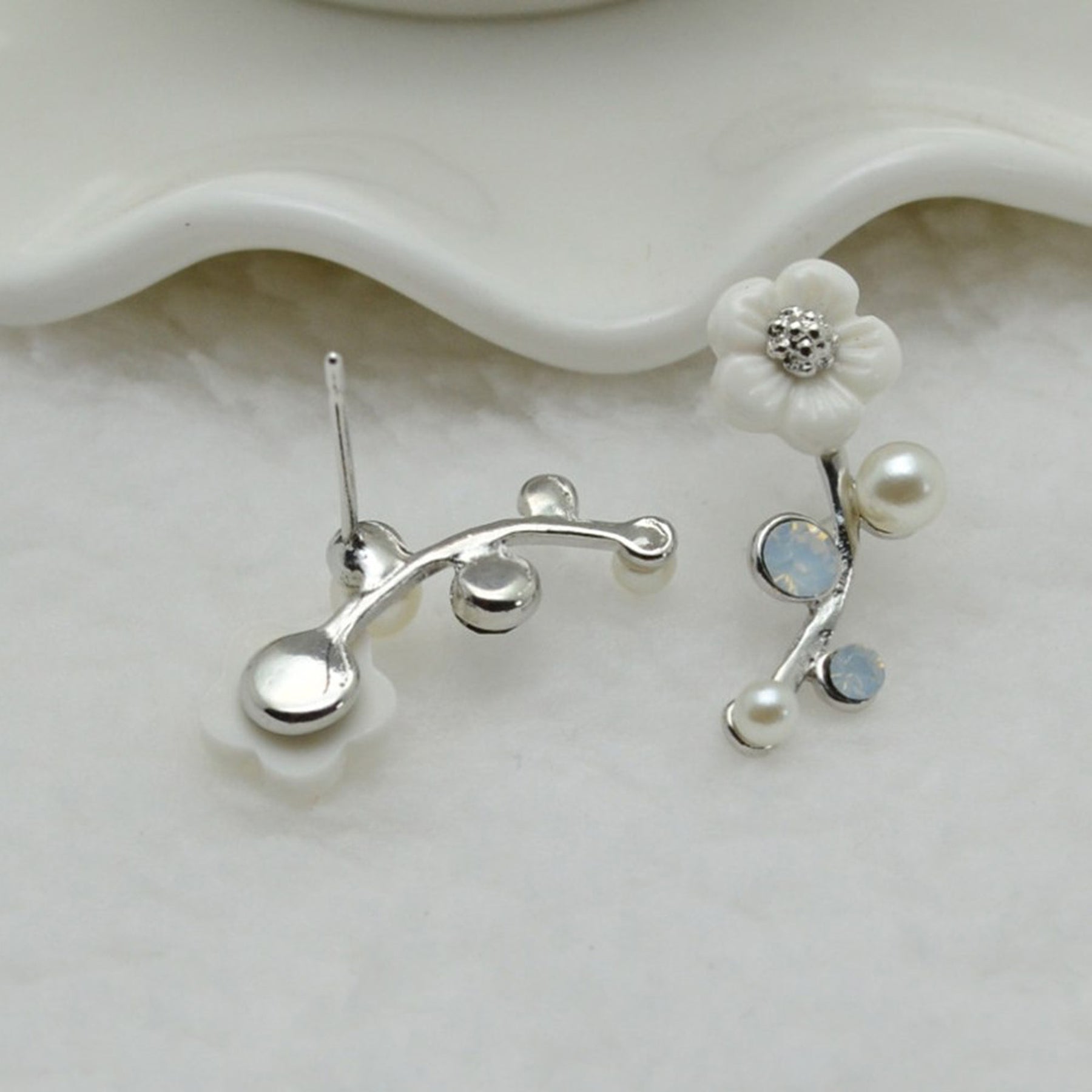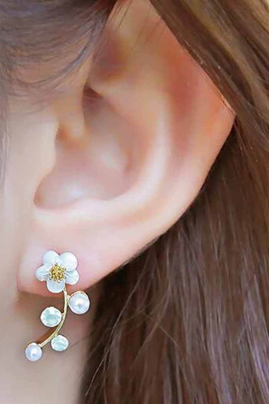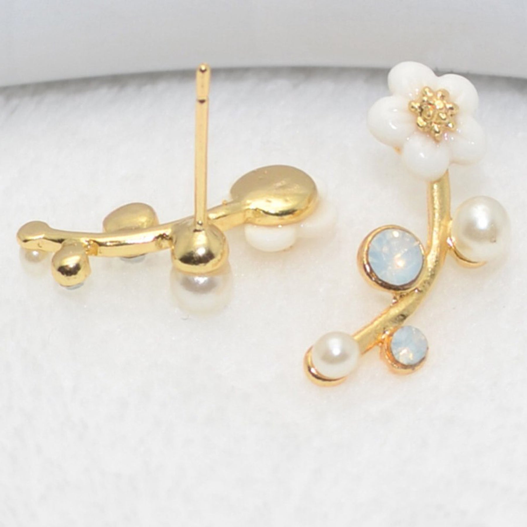 Flores White Flower Pearl Ear Climber Crawler Earring