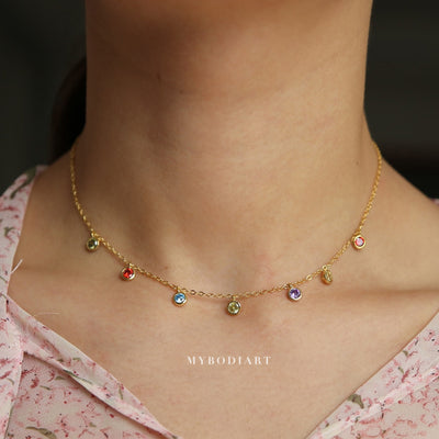 Giggles Rainbow Gemstone Crystal Droplet Pendant Chain Necklace in Gold