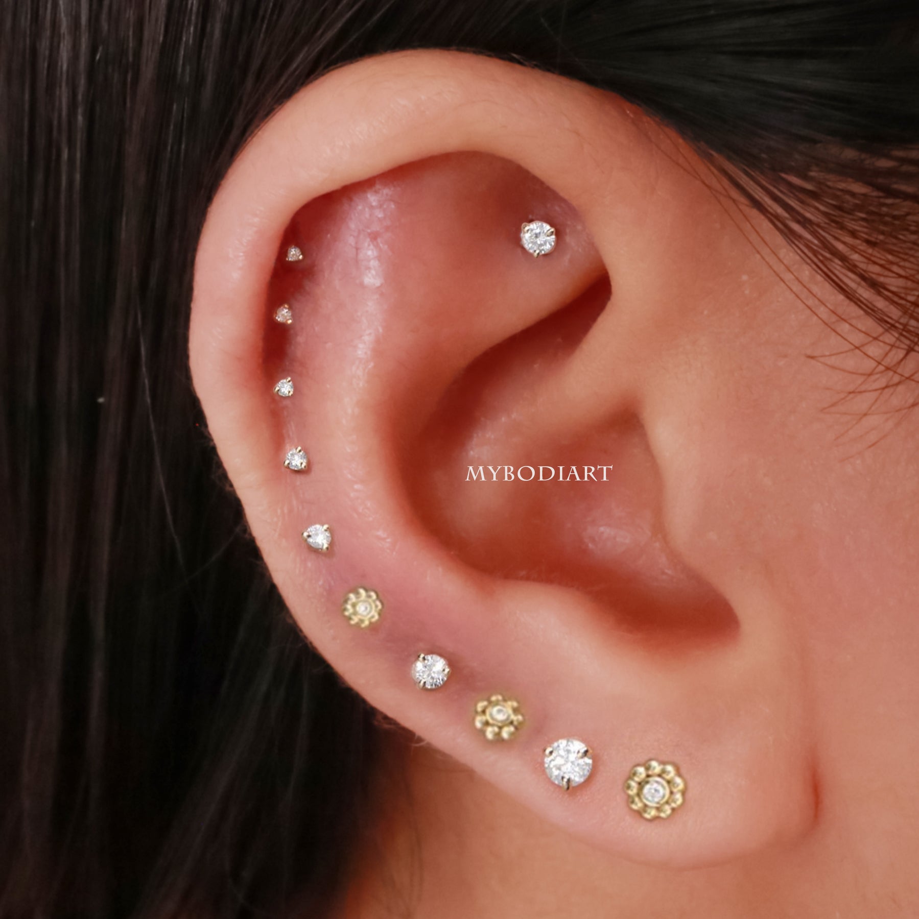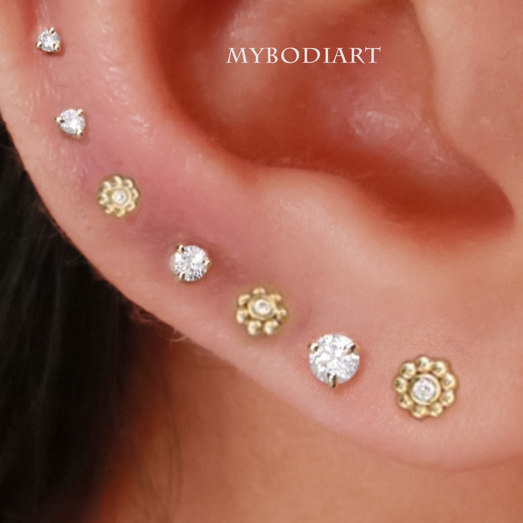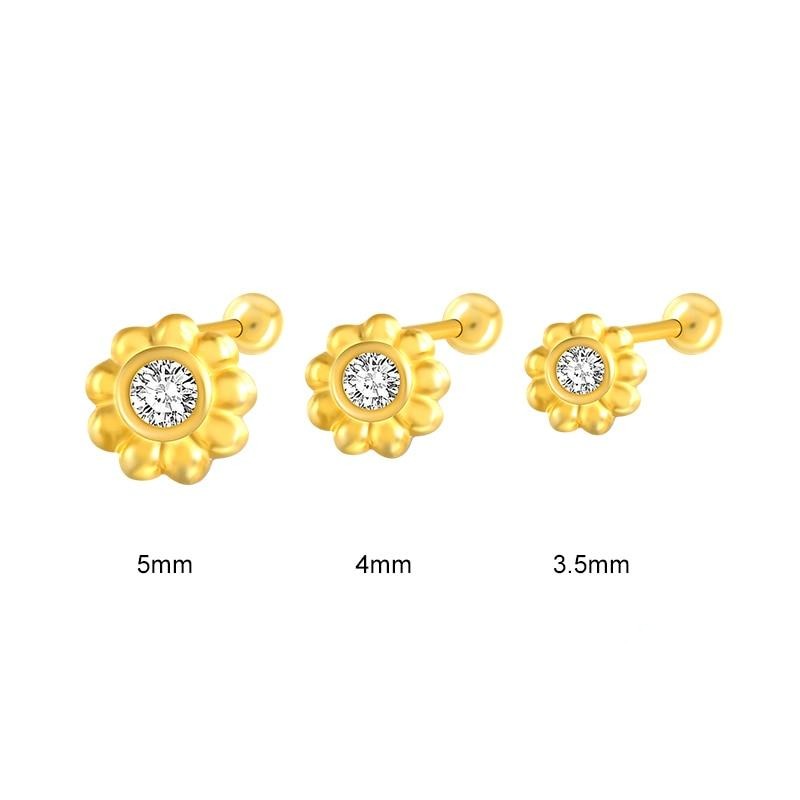 Glory Crystal Sunflower Gold Ear Piercing Earring Stud 16G