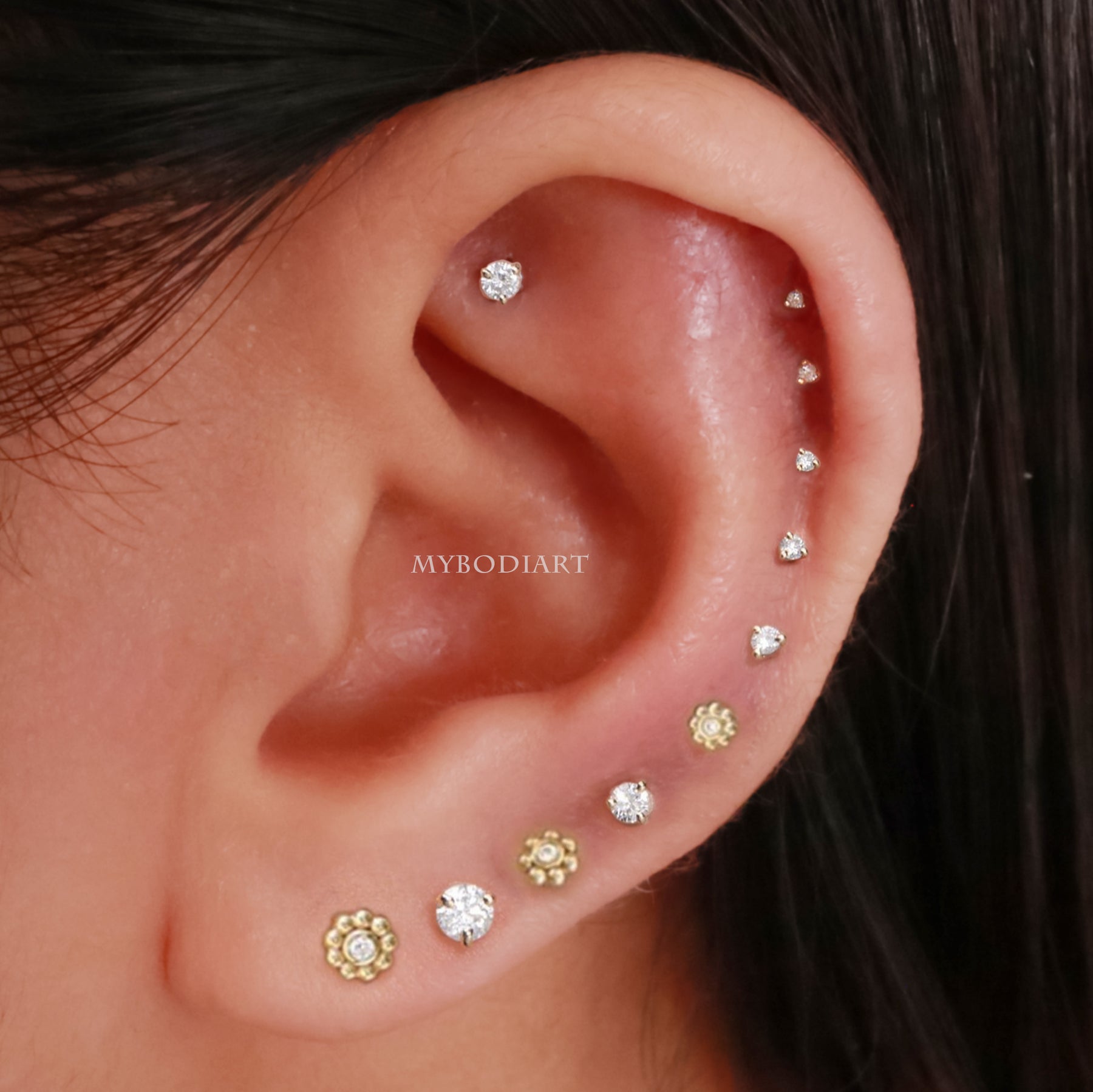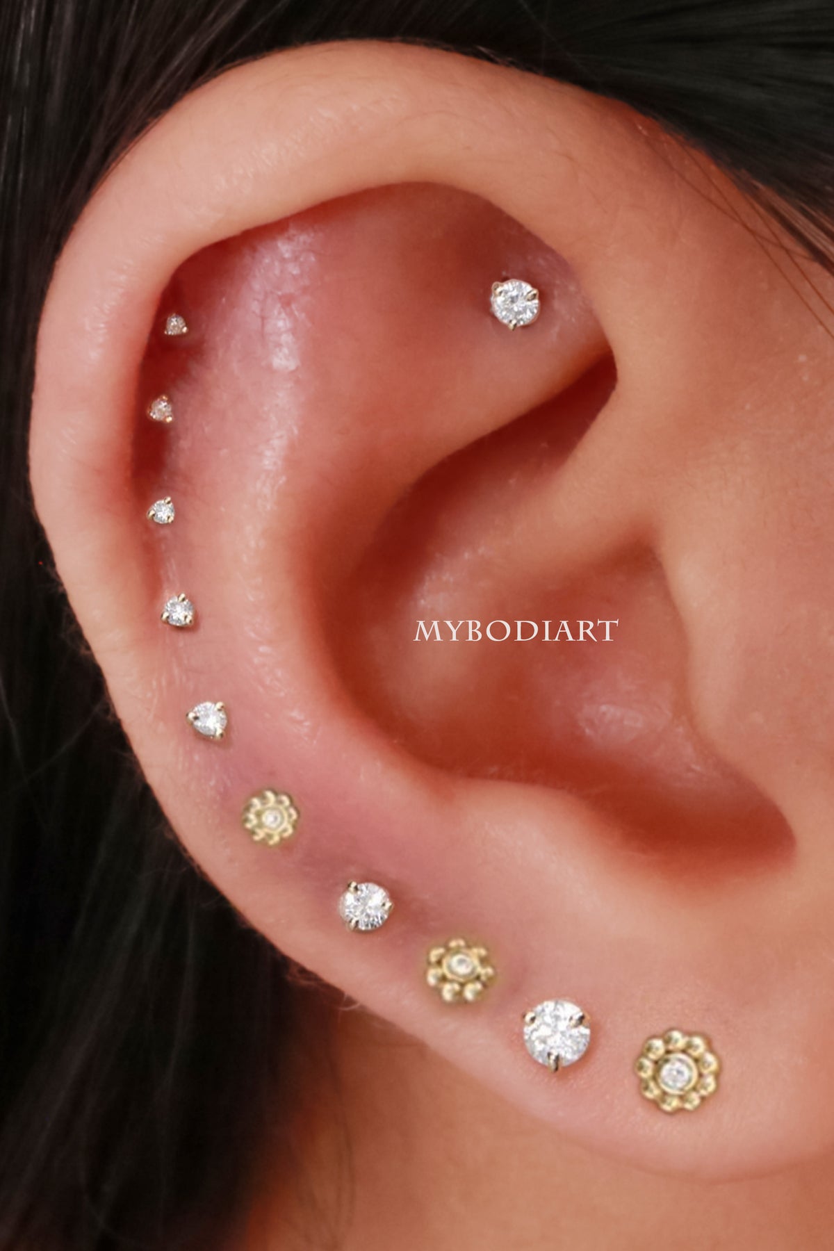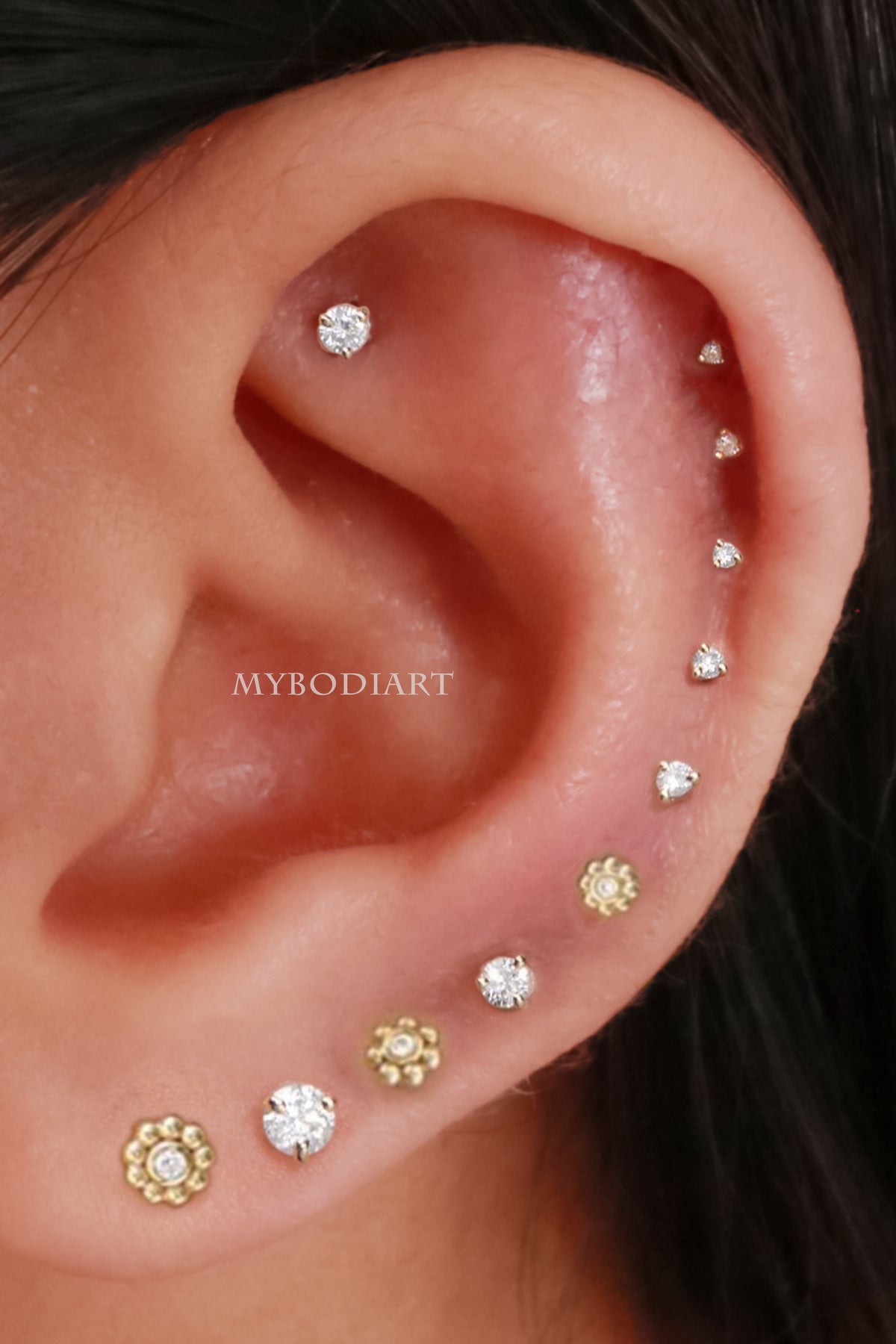 Glory Crystal Sunflower Gold Ear Piercing Earring Stud 16G